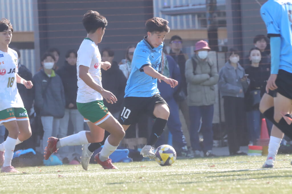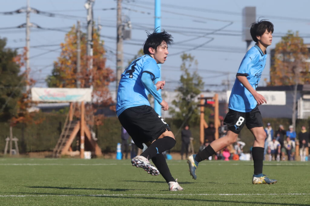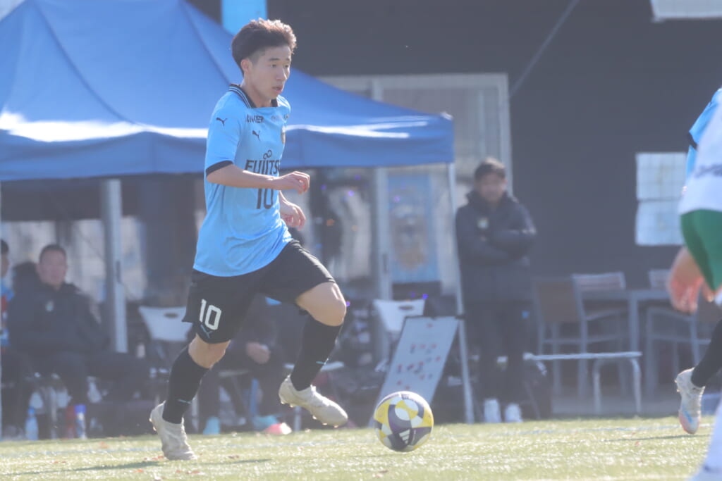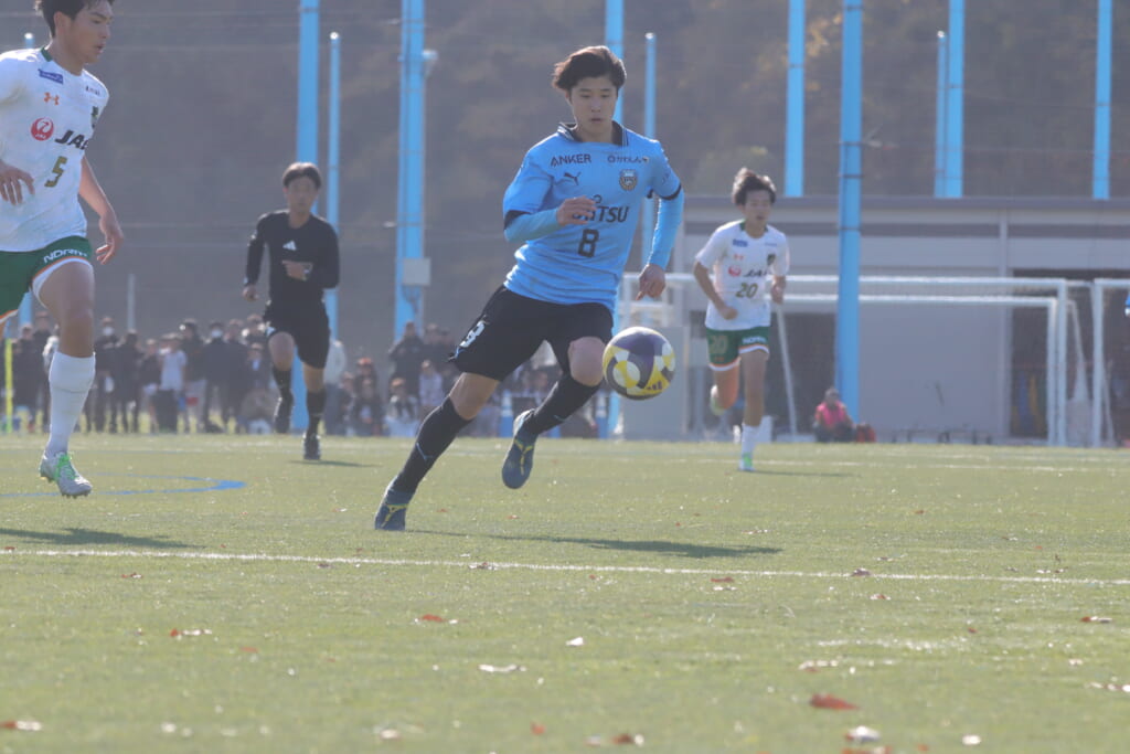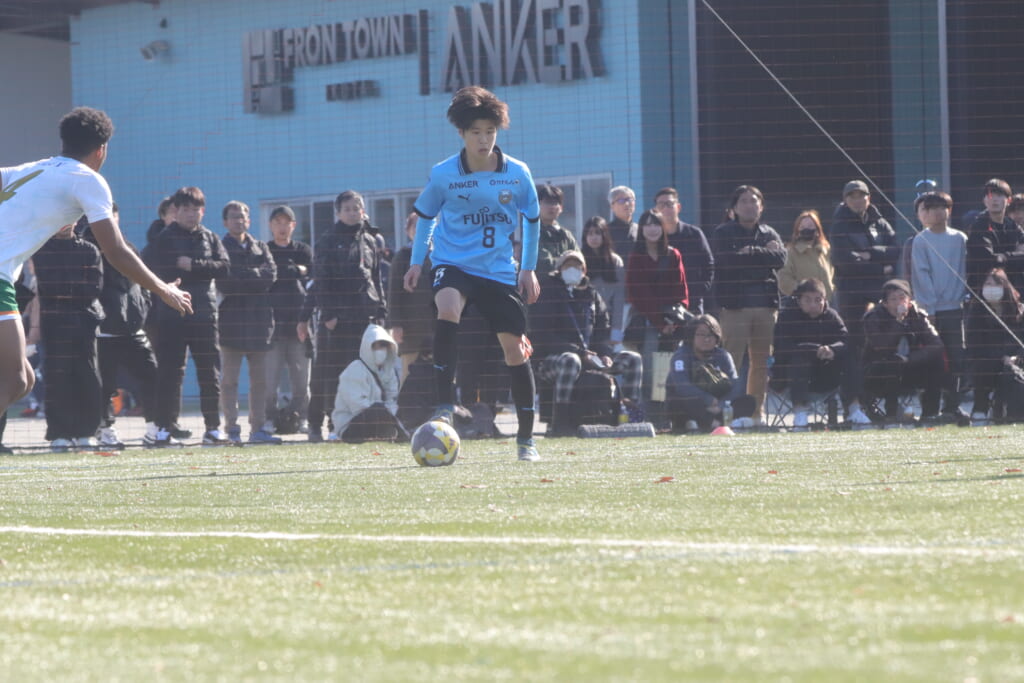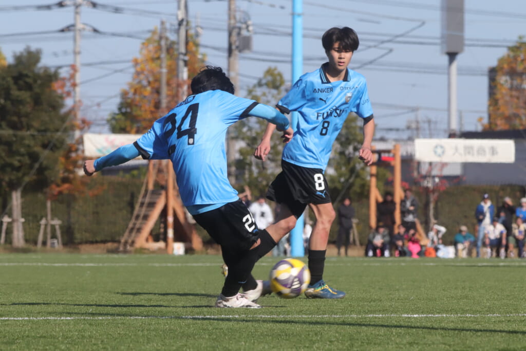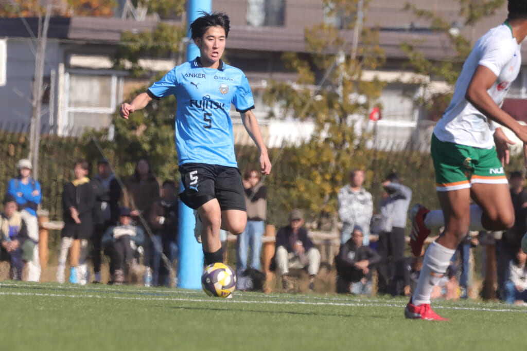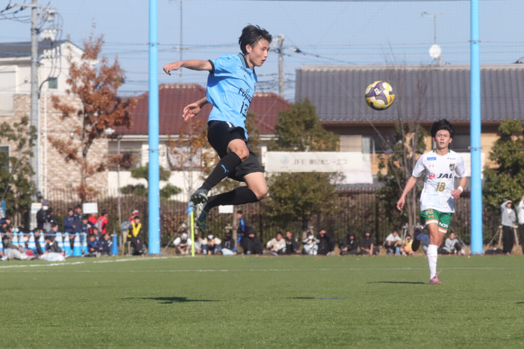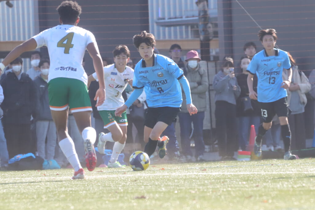 さらにフロンターレは、楠田、藤田に小川尋斗が間で受けながら、ボールを動かす時間をつくり、11分には、小川尋斗のパスに抜け出した柏村が右クロスを上げるも青森山田はクリア。