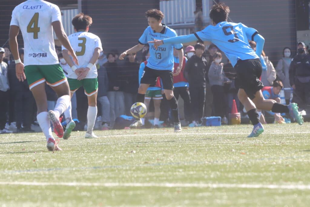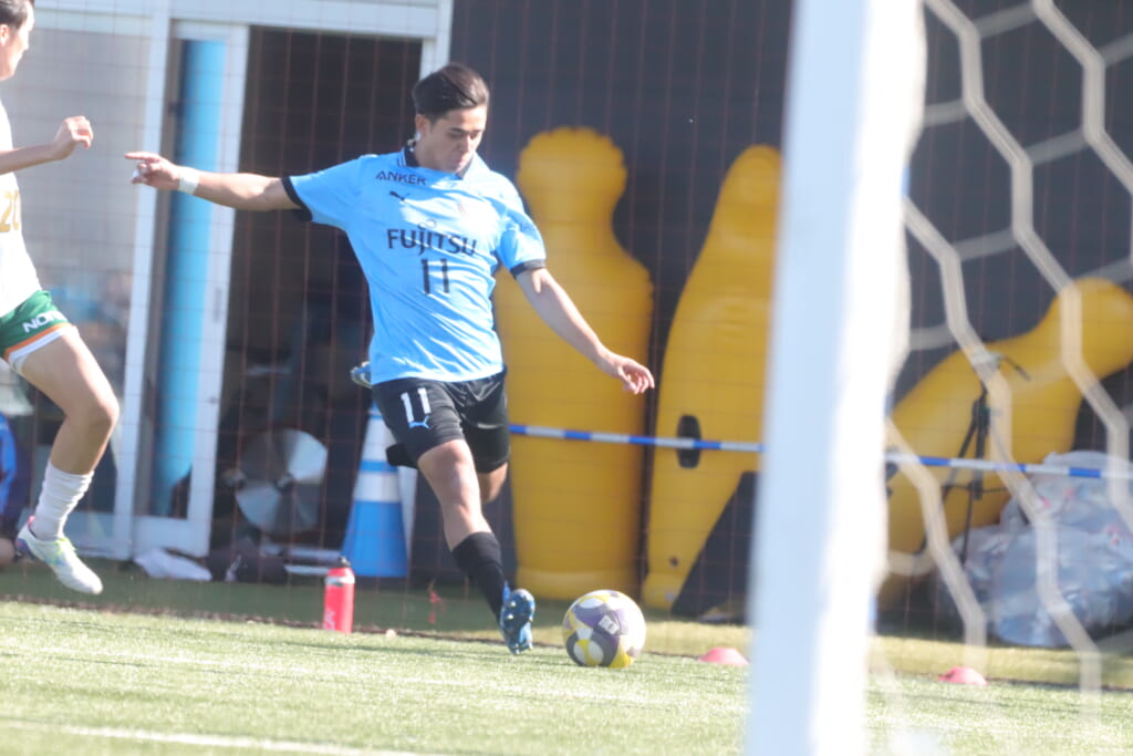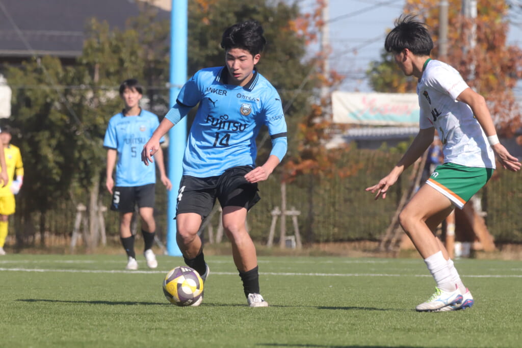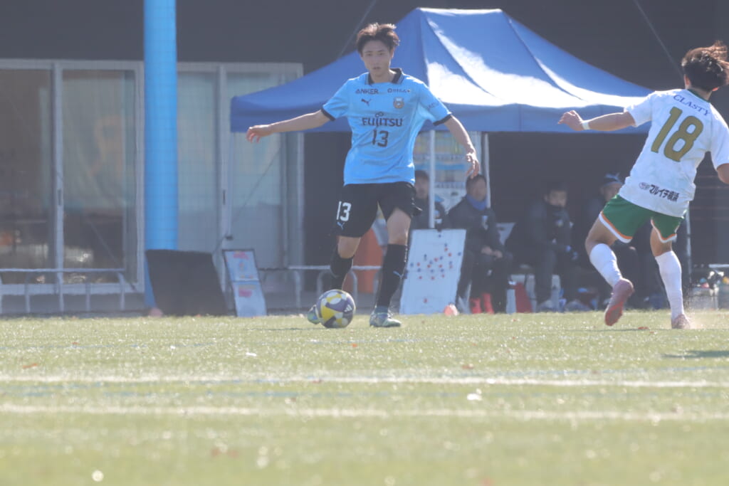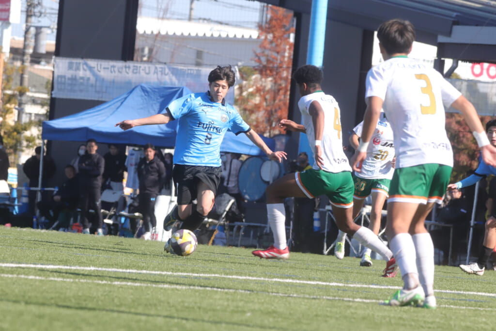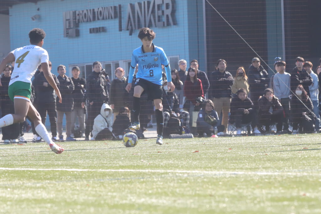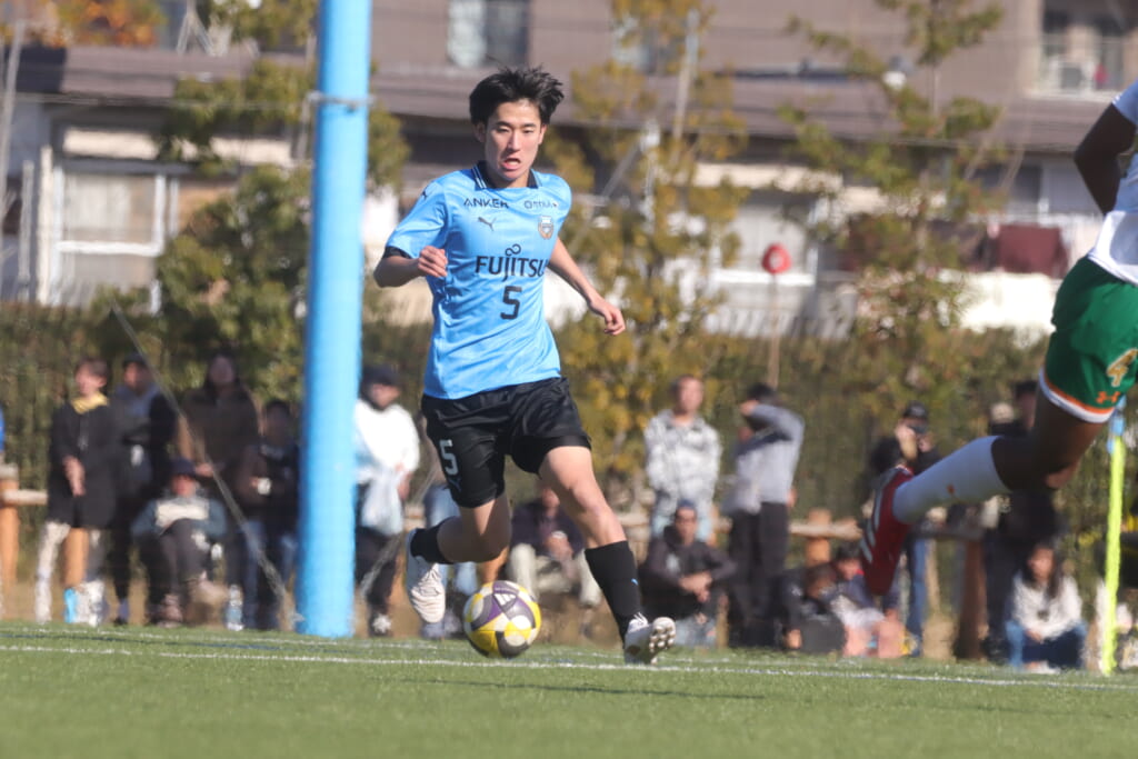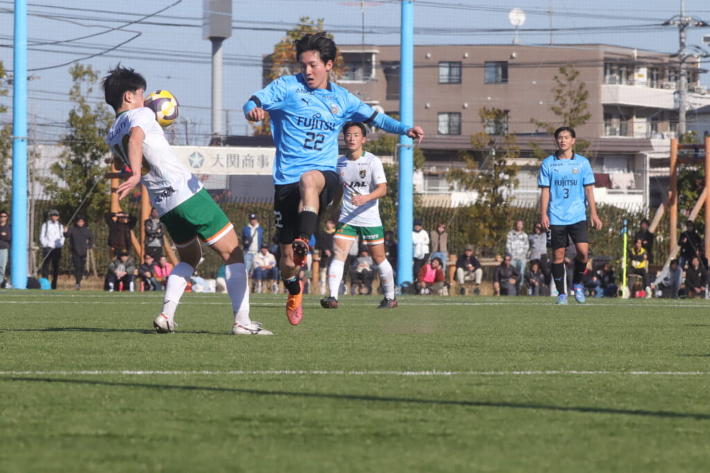 さらにフロンターレは、楠田、藤田に小川尋斗が間で受けながら、ボールを動かす時間をつくり、11分には、小川尋斗のパスに抜け出した柏村が右クロスを上げるも青森山田はクリア。