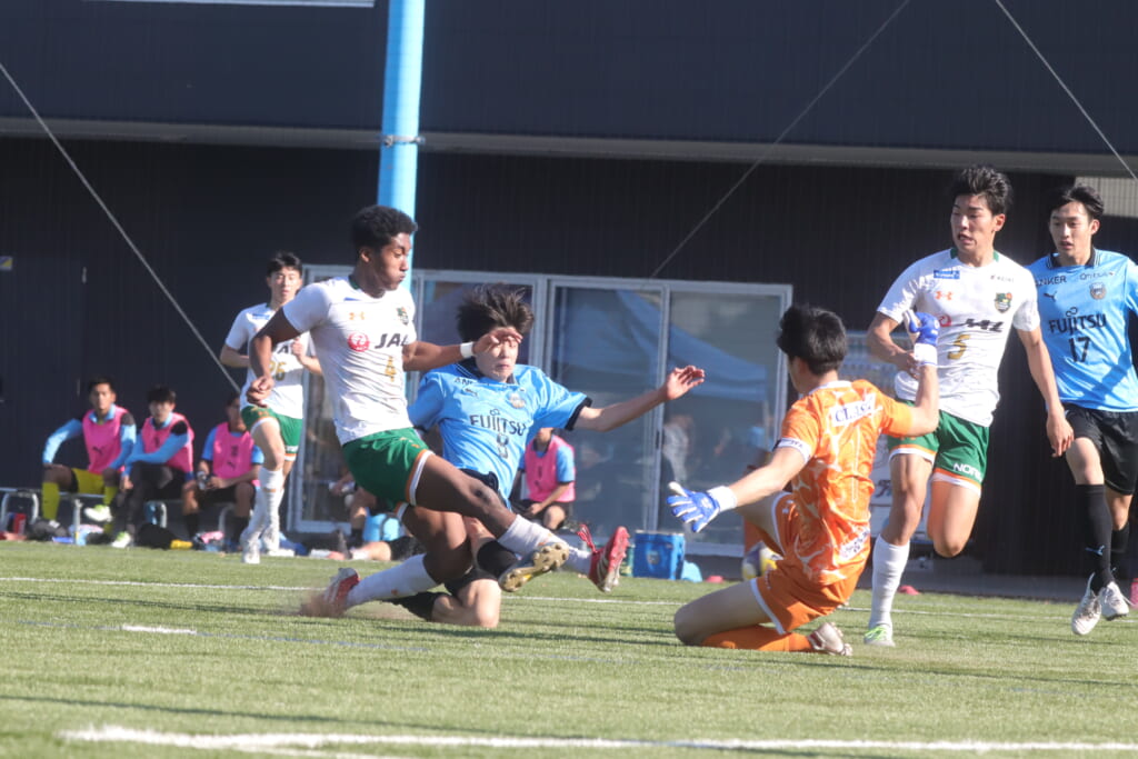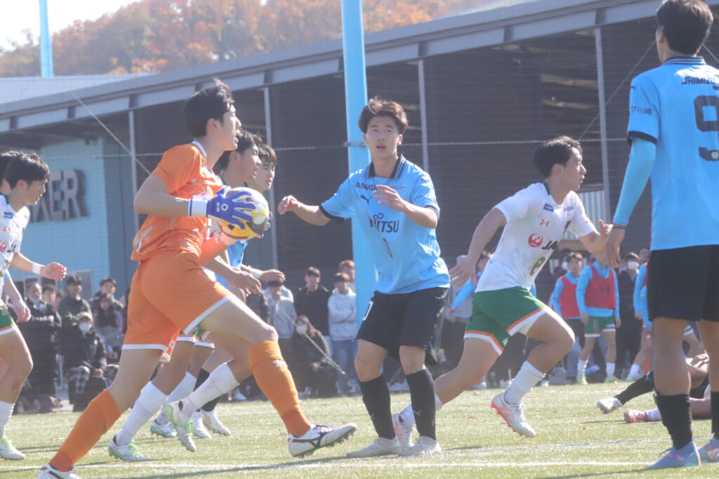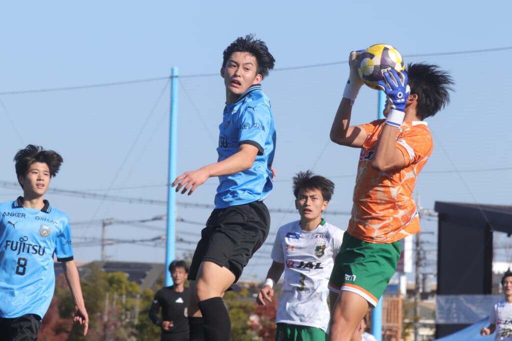 しかし、藤田が体を入れ、最後は松澤がクリア。フロンターレも集中して、青森山田の攻撃に対応していきます。