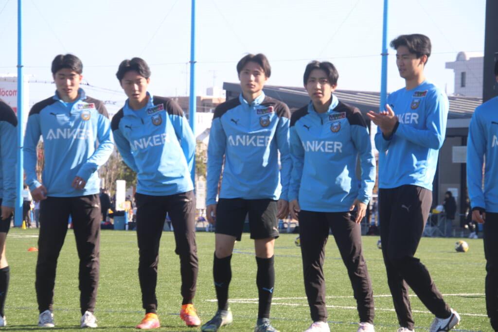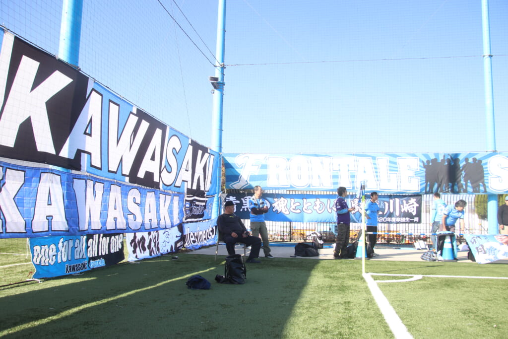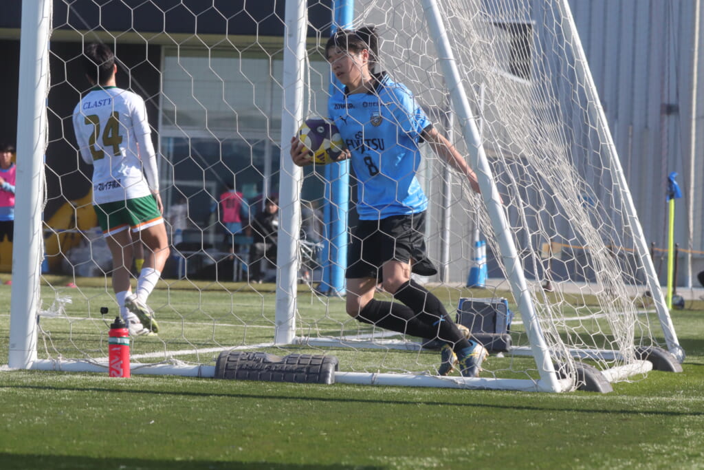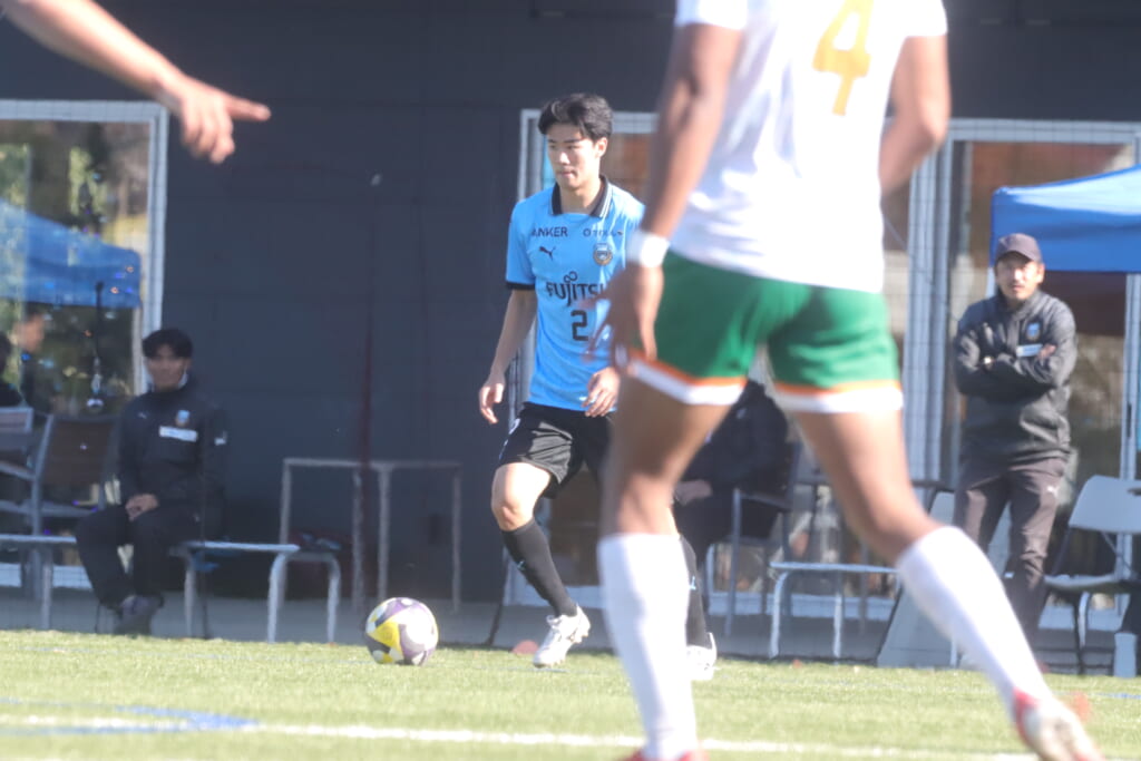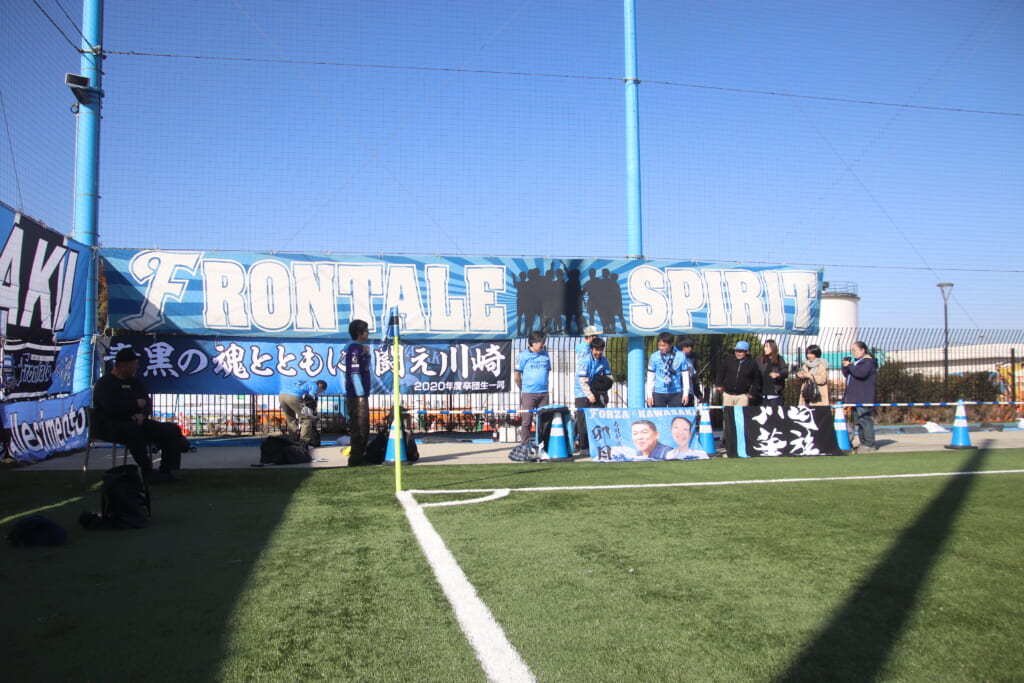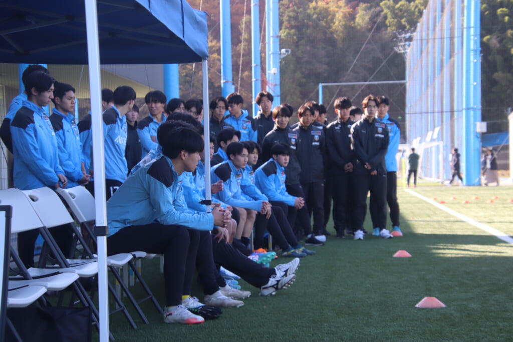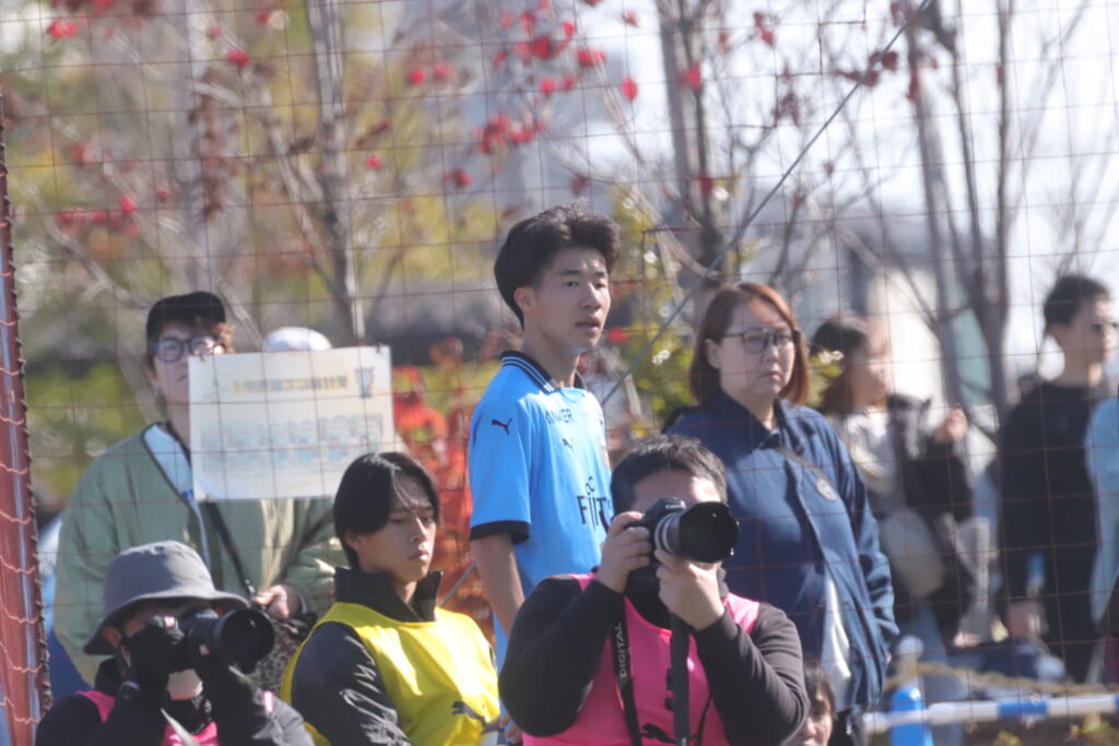 青空の広がった好天のAnker フロンタウン生田。両チームの選手の家族らはもちろんのこと、この日Uvance とどろきスタジアム by Fujitsuでトップチームのホーム最終戦を控えたフロンターレサポーターや、多くのサッカーファン、サッカー少年らの姿も。ピッチ脇に設けられた観戦者向けのスペースだけではなく、ネット越しからも多くの人々が見守る。熱を帯びた雰囲気の中、キックオフの時を迎えました。