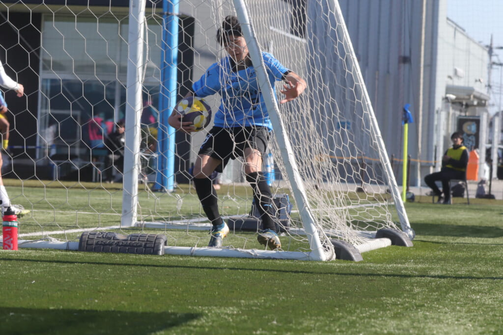 さらにフロンターレは、松澤の正確なボールに、柏村が右サイド、高い位置へ。青森山田の対応に遭うも、小田が粘り強く寄せていき、自分たちのボールにしていくと、19分には、藤田や楠田、小田や小川尋斗、関もかかわって組み立て。最後は小川尋斗の縦パスに、新堀がエリア外正面右へ。ここで青森山田はファール。