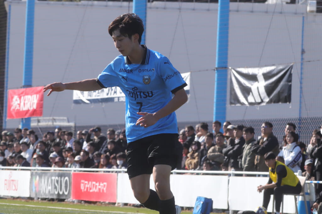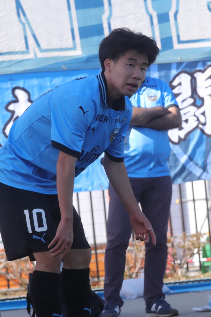 フロンターレの先発:1松澤成音 13柏村涼太 5楠田遥希 3藤田明日翔 2関德晴(c) 14小川尋斗 31小田脩人 10平塚隼人 7廣瀬寧生 8新堀翔 9恩田裕太郎