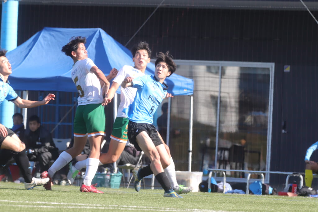 青森山田はさらに福井が対角線に右サイドへ正確なフィード。しかし、小川尋斗が対応し、青森山田のファールに。