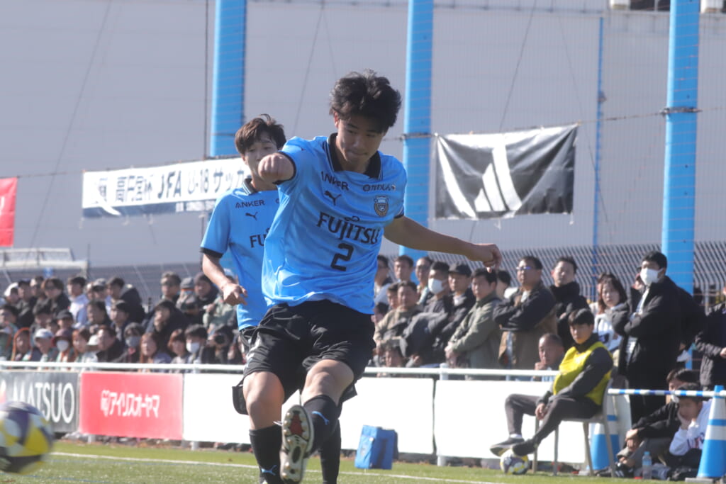 さらにフロンターレは、うまく右サイドへ展開。間で受けた小川尋斗のパスに、関がエリア外左へ。ここで青森山田はファール。