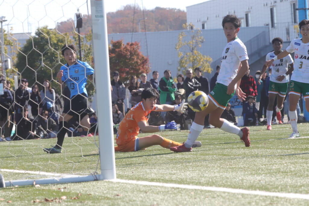 しかし、青森山田は大場がしっかりセーブするなどして、チャンスはつくらせず。