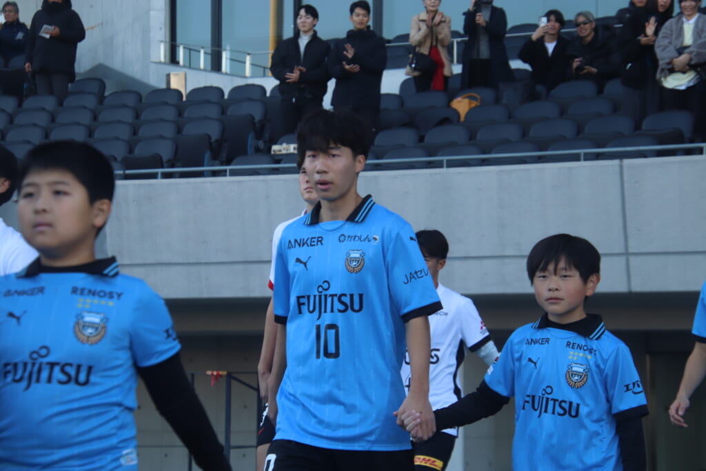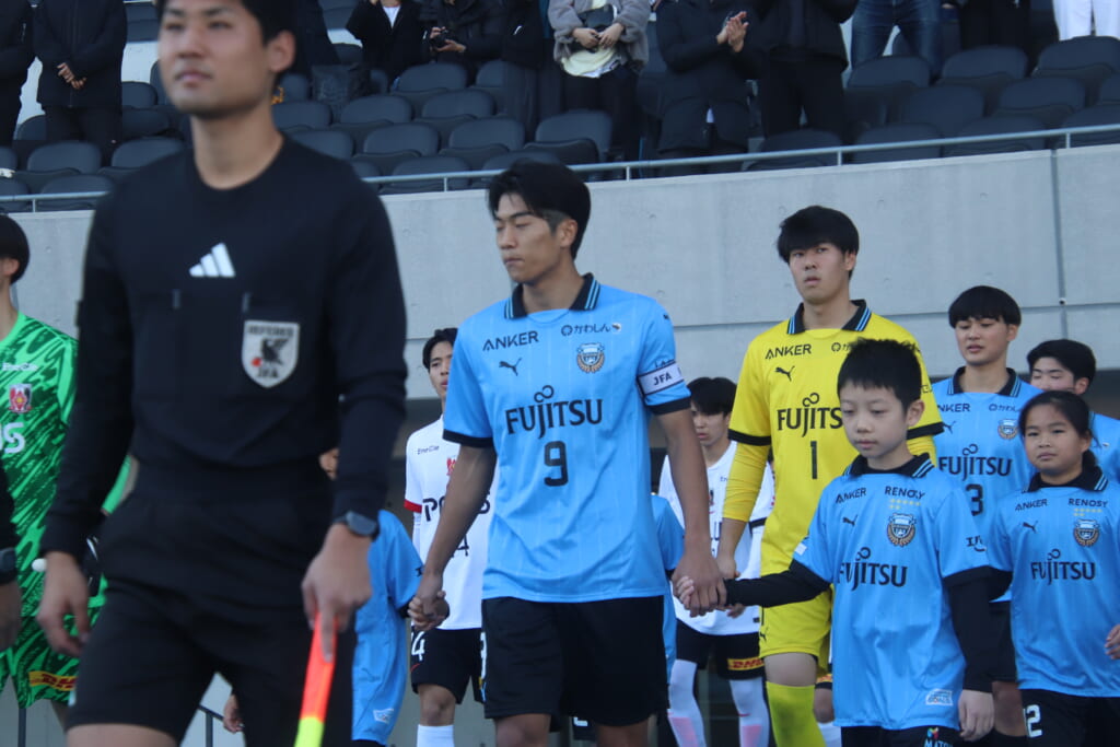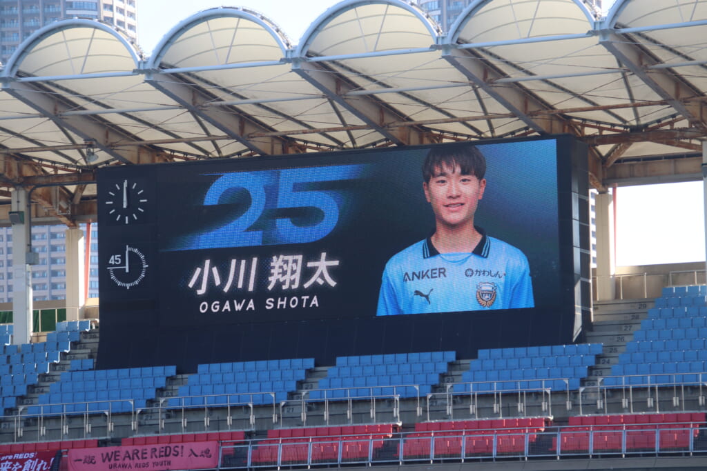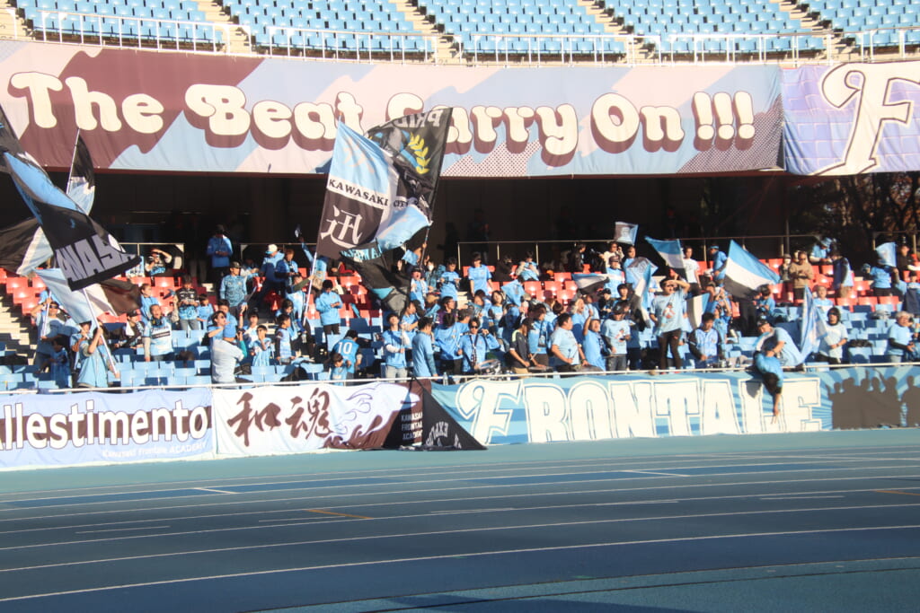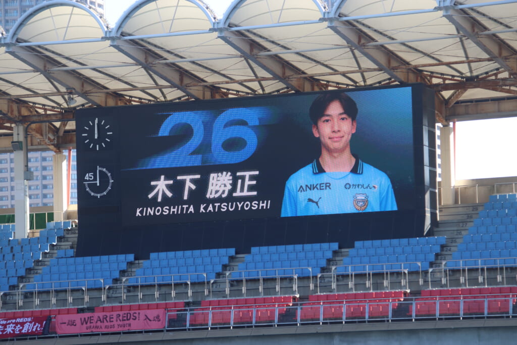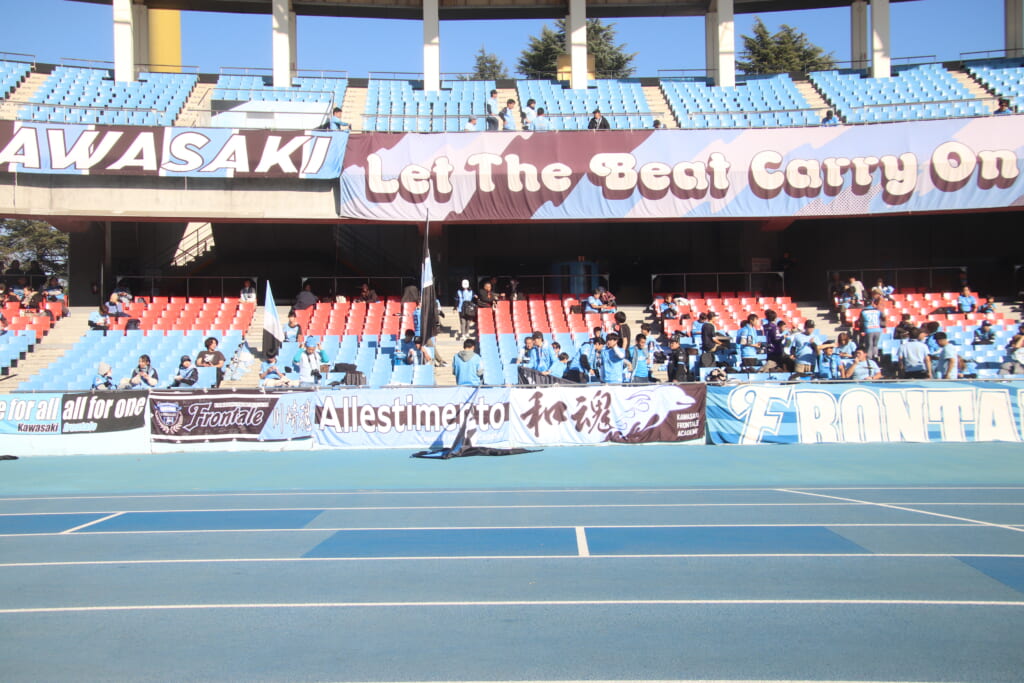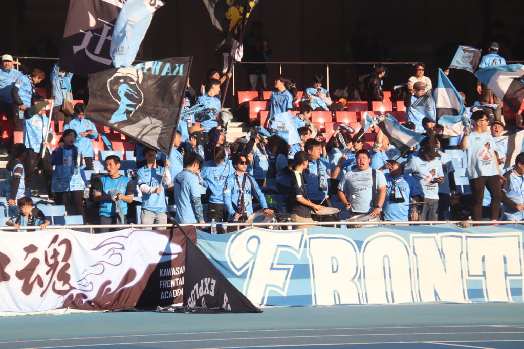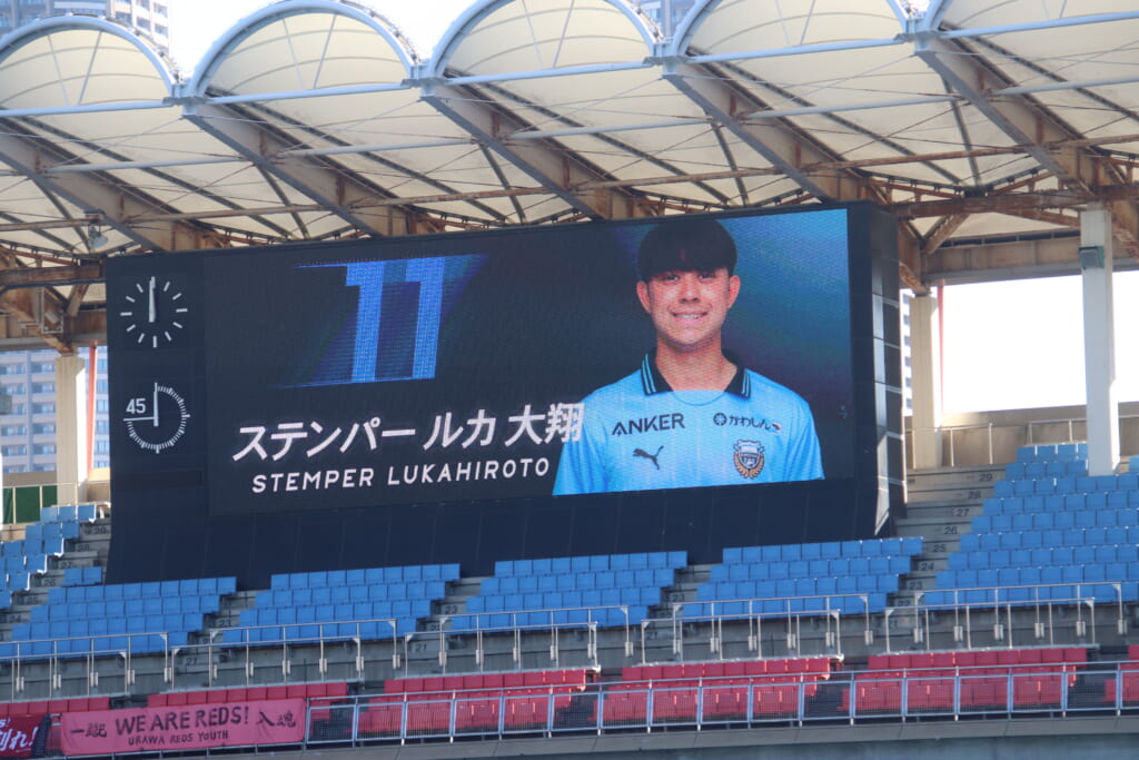 メインスタンドにも多くの人々が集い、フロンターレのサポーターらが幕を掲出し、チャントを歌えば、熱心なレッズのアカデミーのサポーターたちもゴール裏で旗を振り、選手たちを励ます。それぞれのチームへの期待のこもった雰囲気の中、キックオフの時を迎えました。