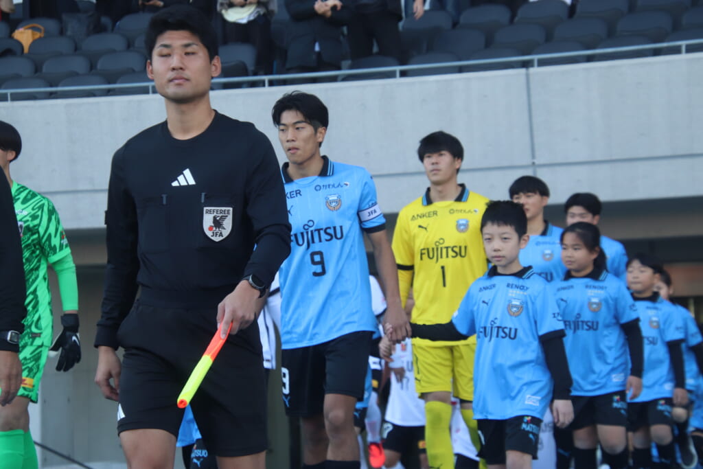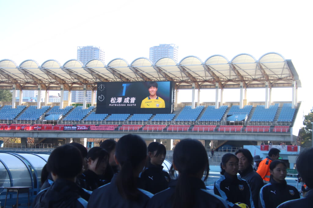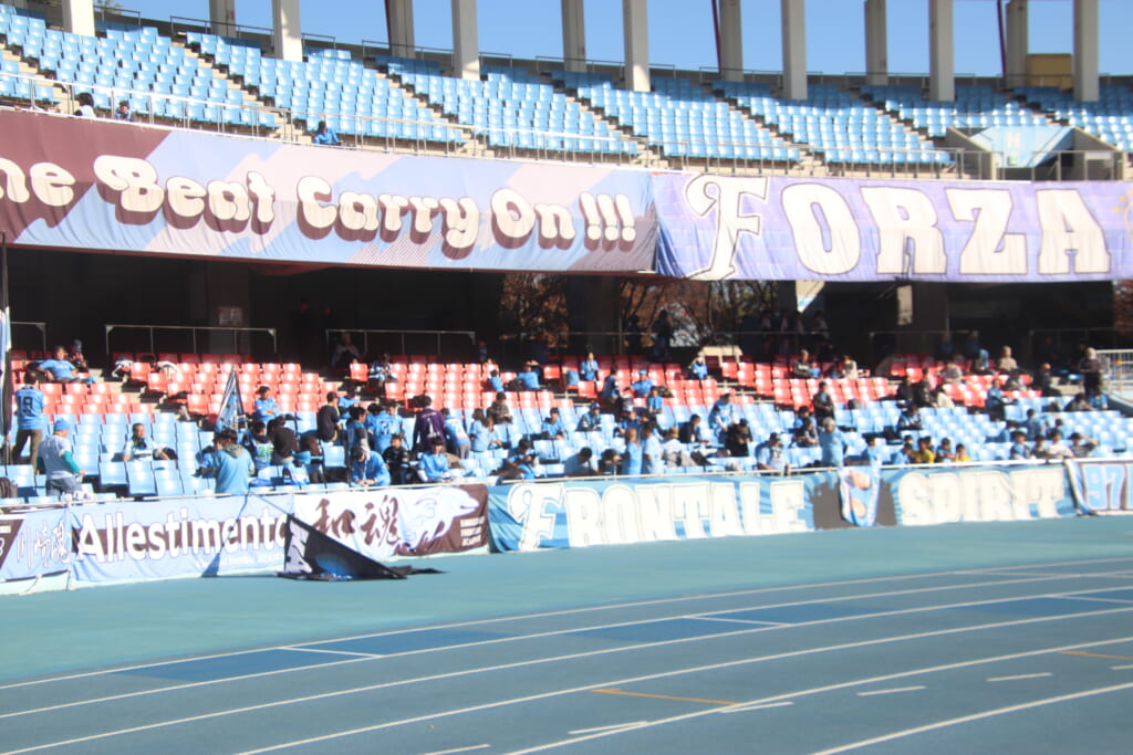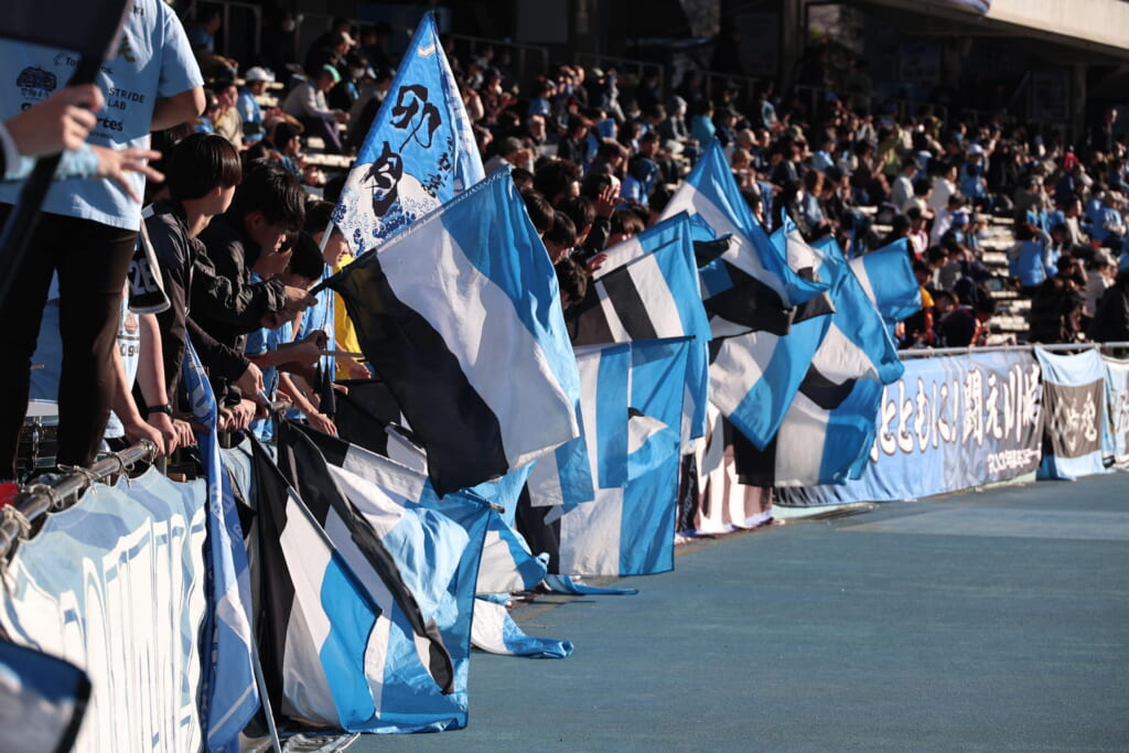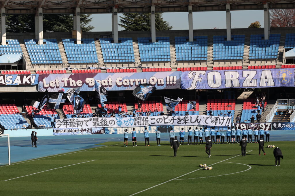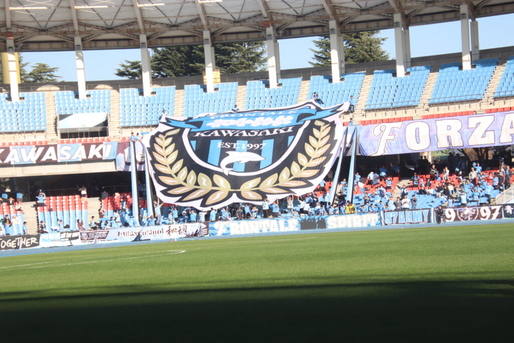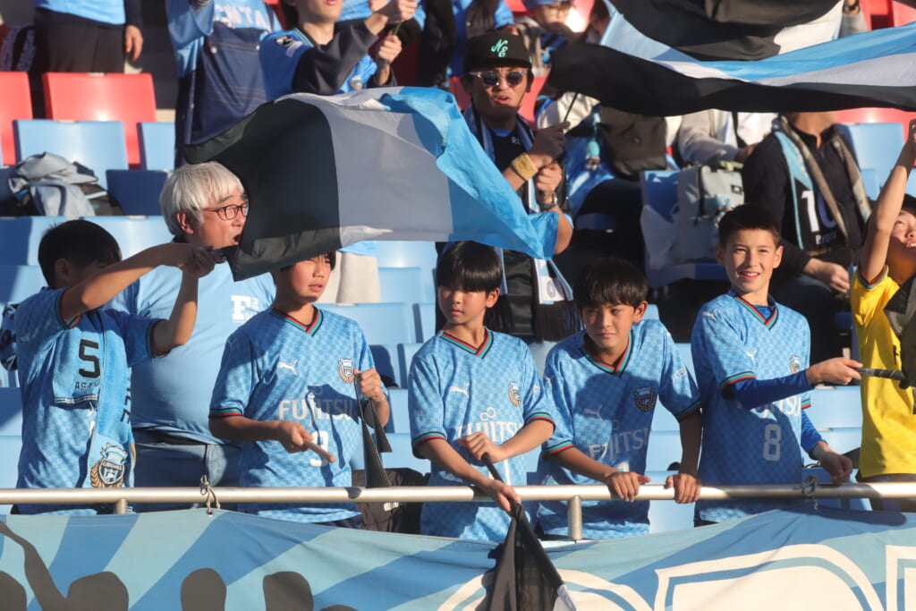 メインスタンドにも多くの人々が集い、フロンターレのサポーターらが幕を掲出し、チャントを歌えば、熱心なレッズのアカデミーのサポーターたちもゴール裏で旗を振り、選手たちを励ます。それぞれのチームへの期待のこもった雰囲気の中、キックオフの時を迎えました。