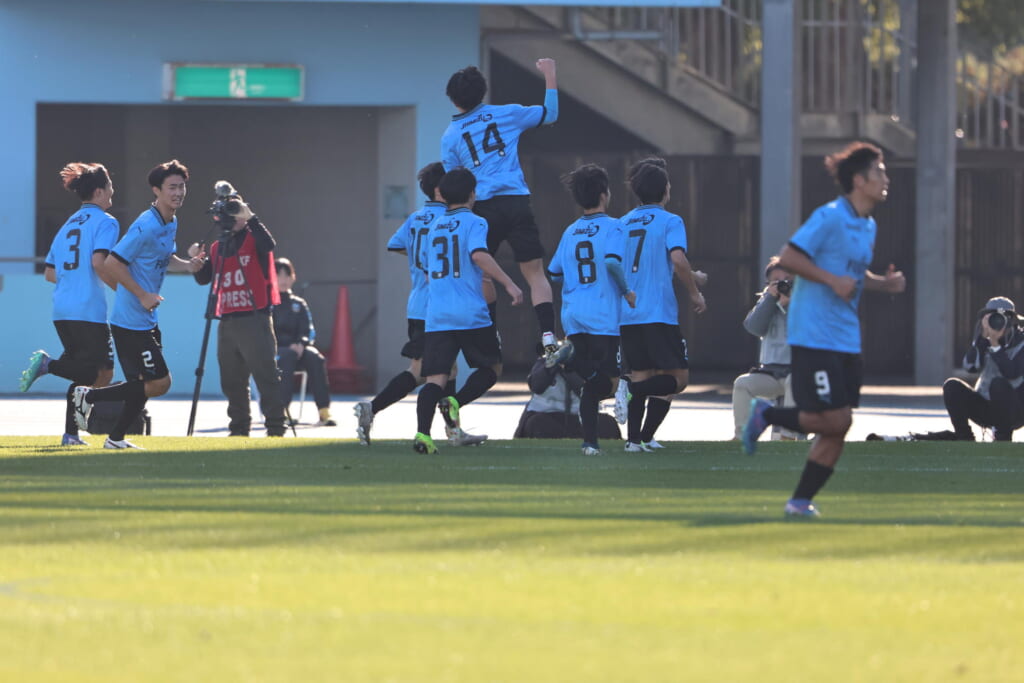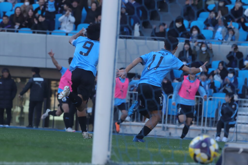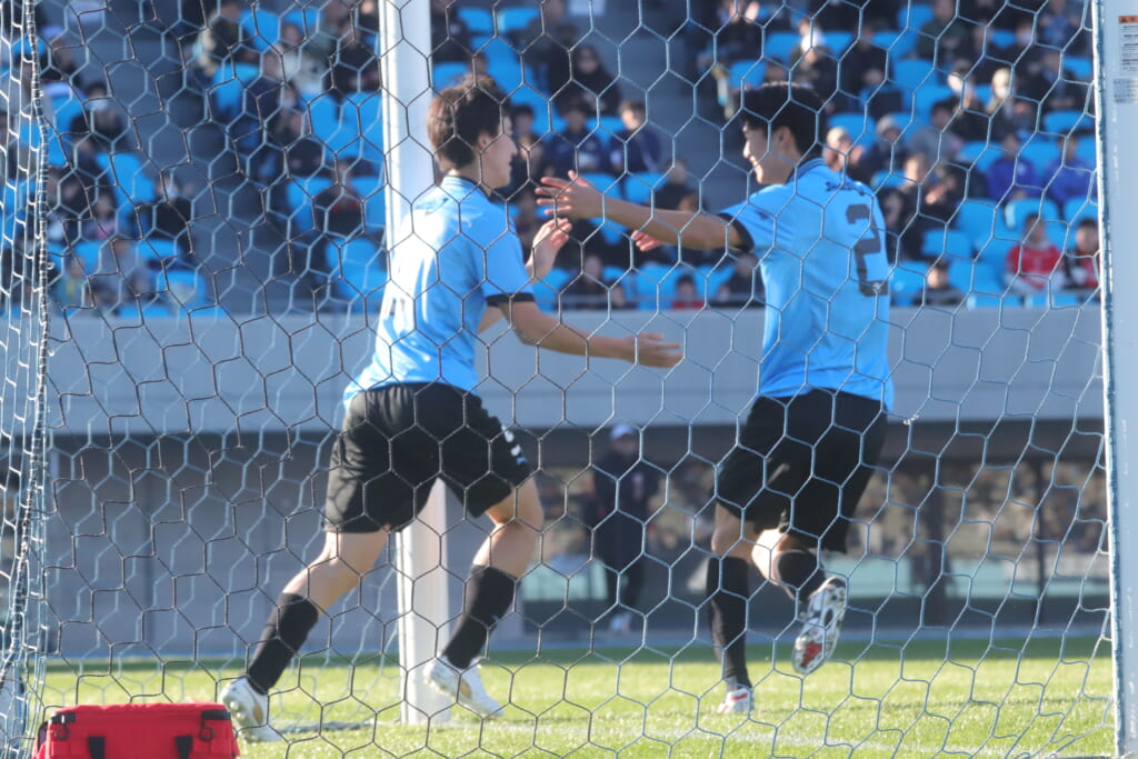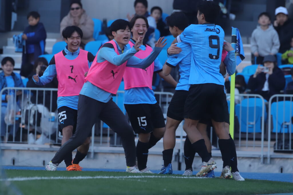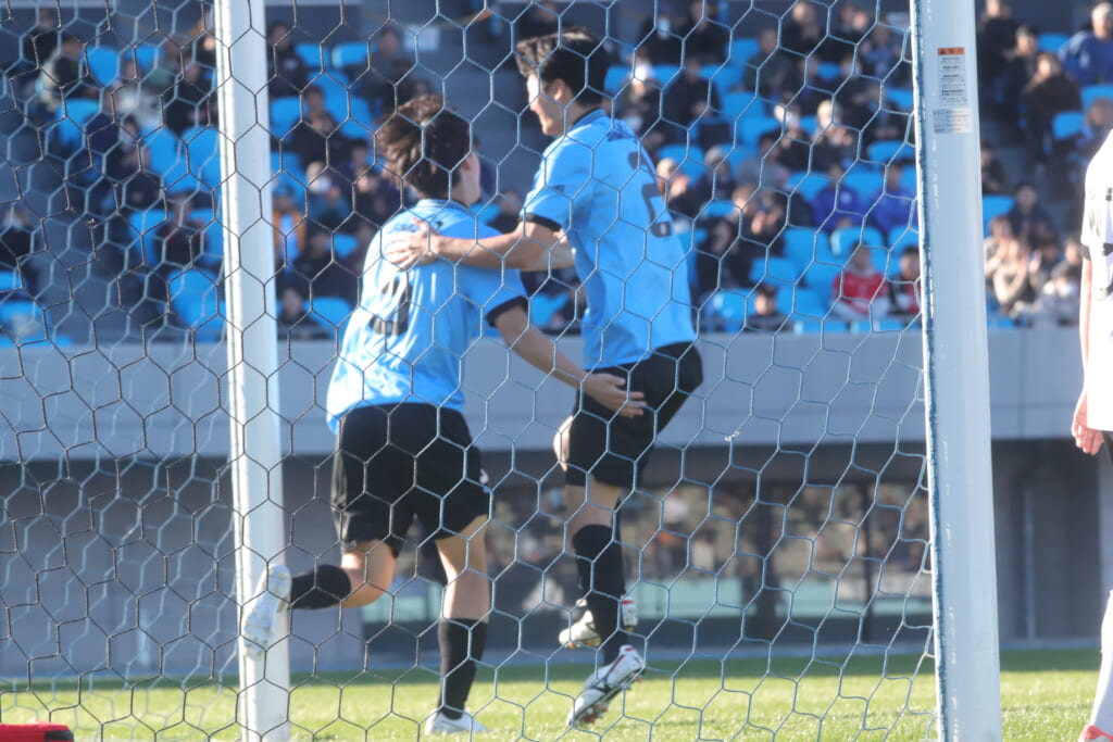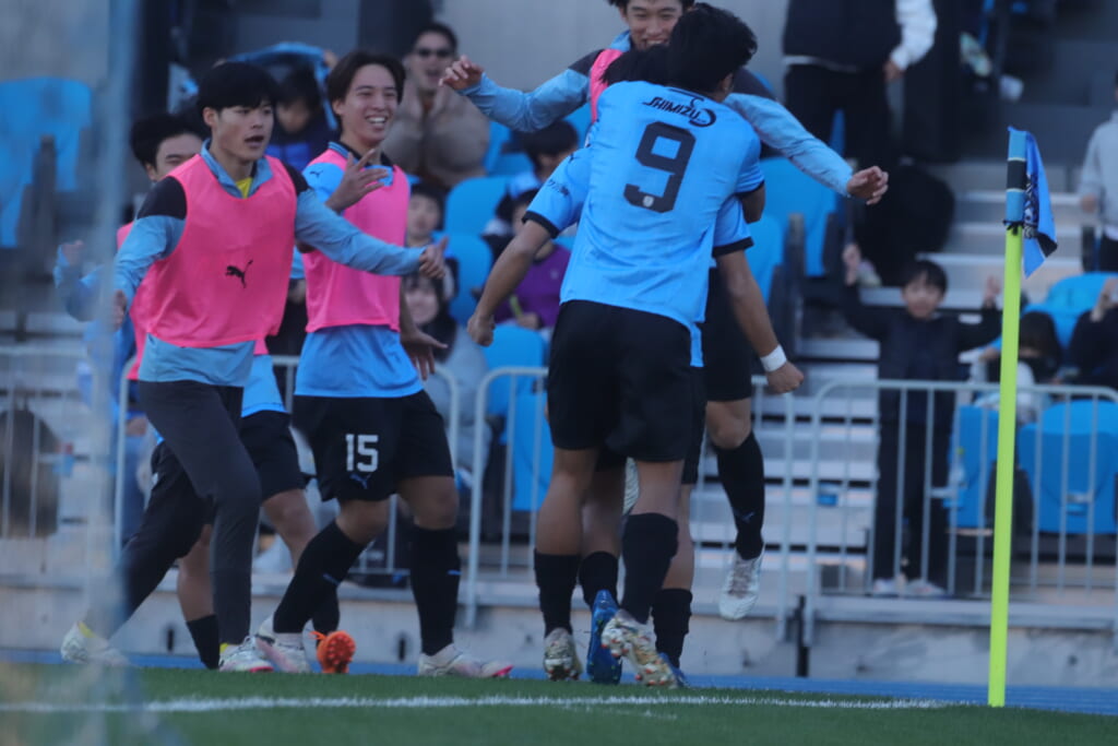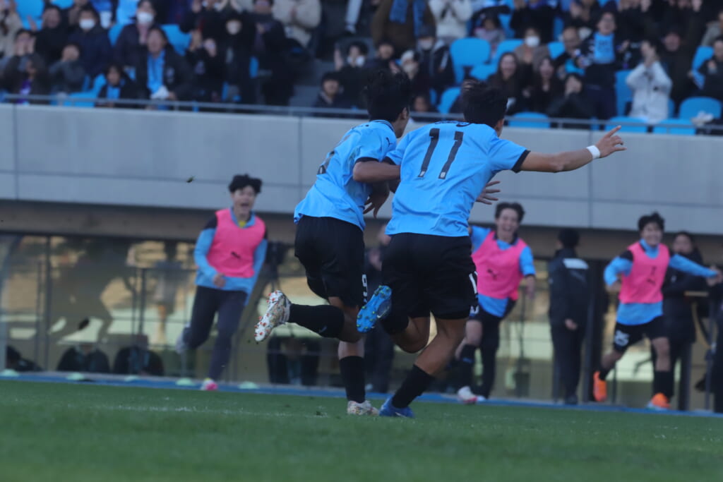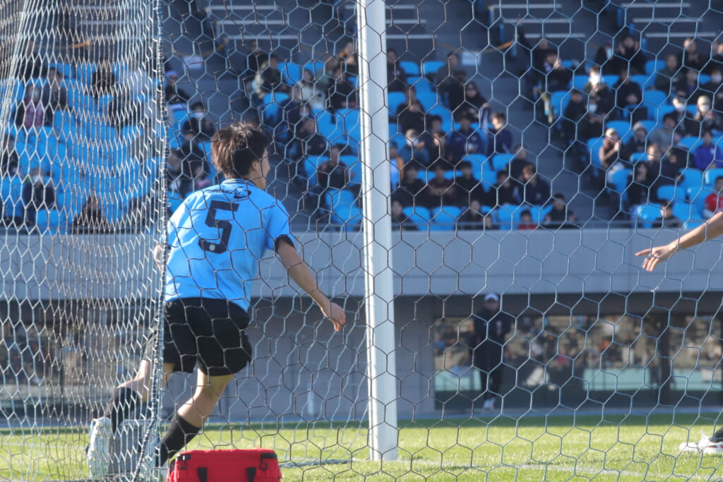 フロンターレは平塚、新堀が立ち、ショートコーナーを選択。平塚のパスにエリア外右で小川尋斗がシュートを打つと大槻がセーブするもこぼれ球に詰めたのは楠田。
