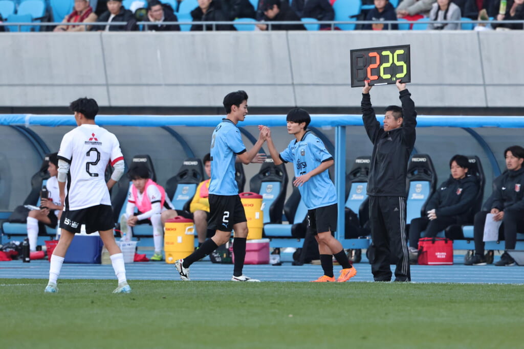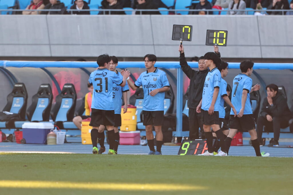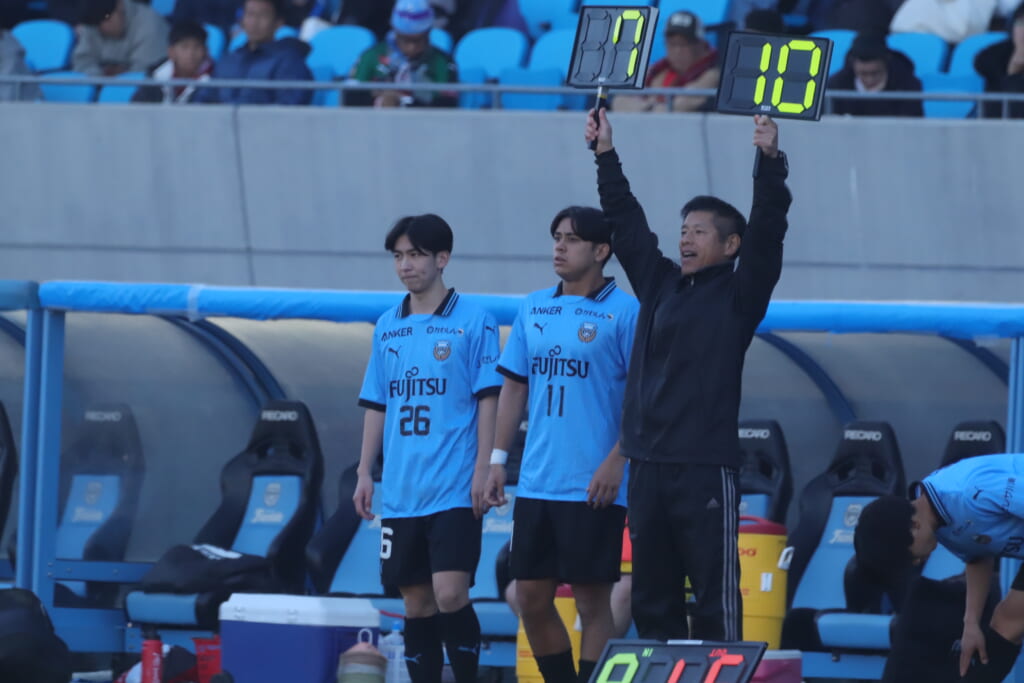11分フロンターレは、小田に代わり6藤井漣祐、平塚に代わり26木下勝正、平内に代わり11ステンパールカ大翔。