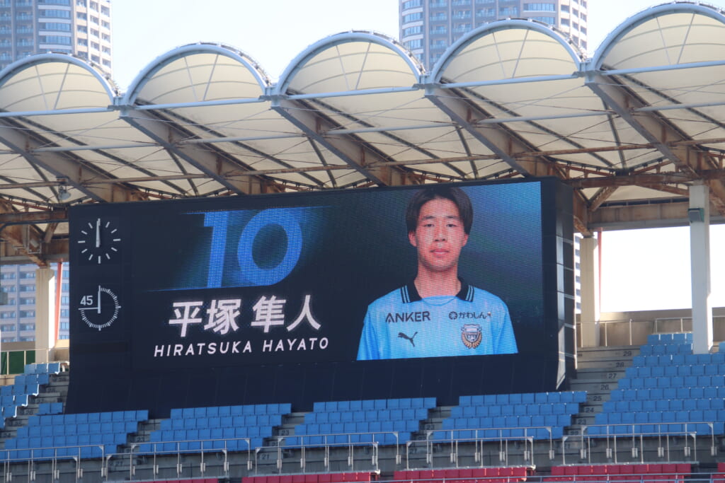 フロンターレは、関や藤田、楠田に小田もかかわって自陣から組み立て。平塚のパスを中央で受けた小田のパスに、恩田が高い位置へ動き出しを見せるなどしていきます。