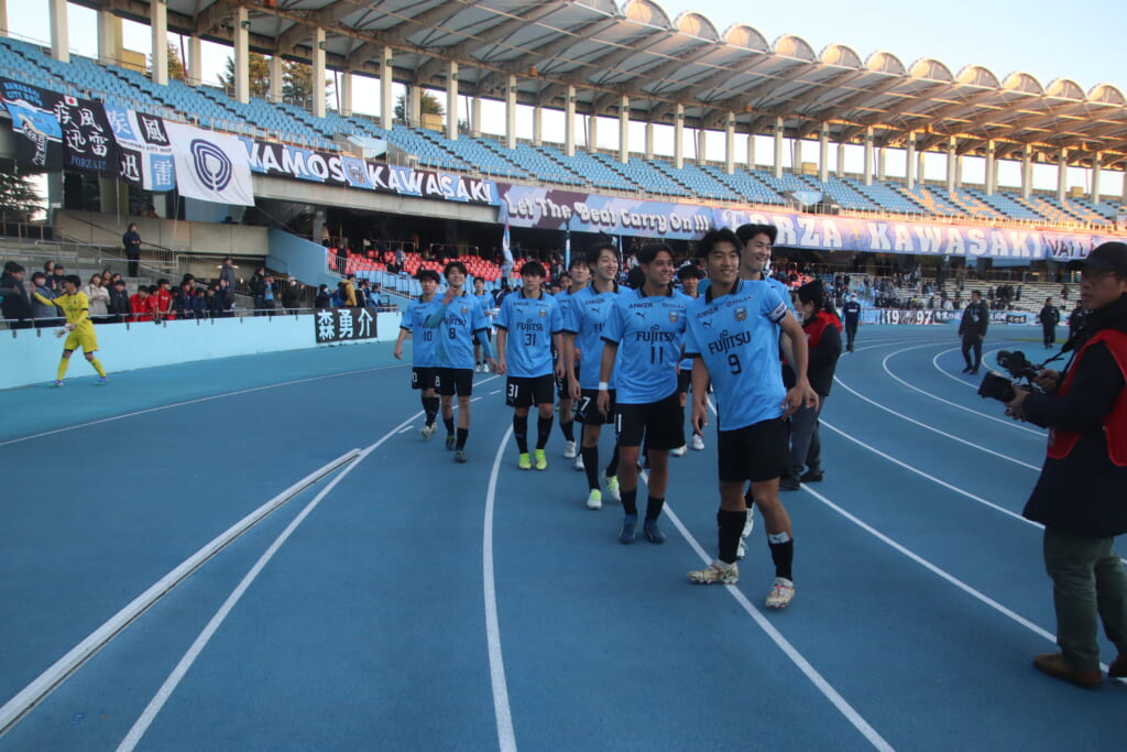 力を尽くしたその姿は、普段からU-18を応援するサポーターはもちろんのこと、ここまでなかなか試合を見る機会のなかった人たち、さらにGゾーンから声援を送ったフロンターレアカデミーの後輩たちの心にも刻まれるものになるはずです。