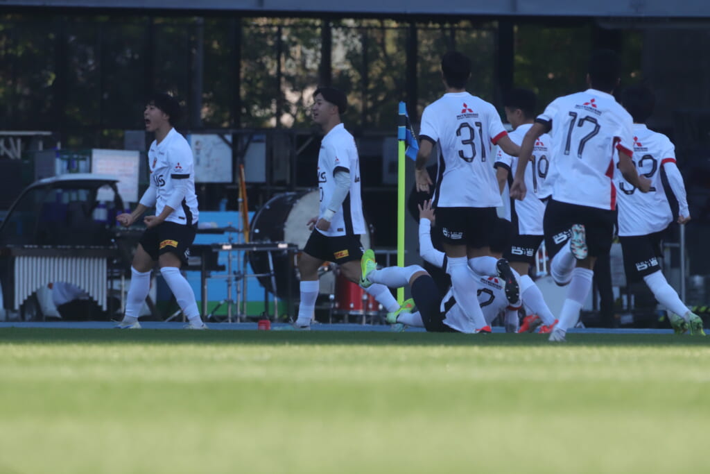 自陣に戻し、小川尋斗や楠田、平塚もかかわって右サイドで組み立て。それに対して、浦和も出足の良さを見せ、カット。エリア左へ持ち込んだ深田がクロスを入れていきますが、シュートにはつながらず。