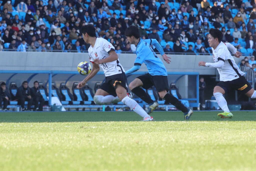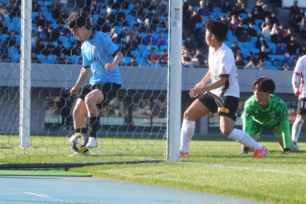 アディショナルタイムに入り、46分には中央で受けた中村から左サイドへ展開すると、そこから正面へ折り返しますが、楠田がカバー。最後は松澤がセーブ。
