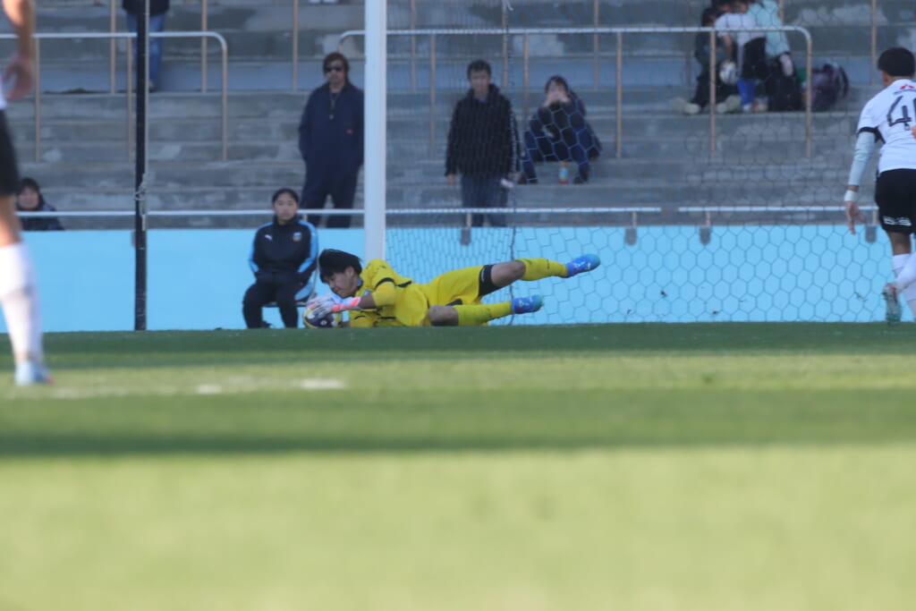 さらにエリア外正面へ持ち込んだ中村がスルーパス。蔦澤がエリア内へ抜け出しますが、小川尋斗が後ろから粘り強く寄せていき、最後は松澤がセーブ。