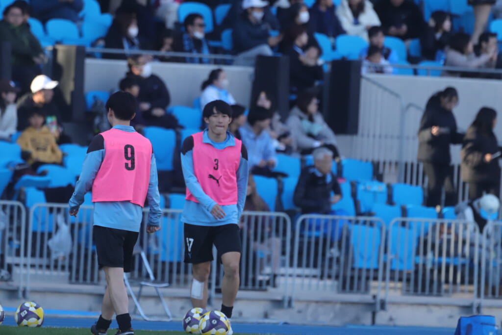 先発は、GK1大槻久翔、最終ラインは右から17木下侑也、3田中義峯、31瀬戸駿、14田中一信、、ボランチは41和田武士、7和田直哉、右MF32蔦澤洋紀、左MFキャプテンの19深田京吾、前線には11阿部湧心、40中村虎太郎。