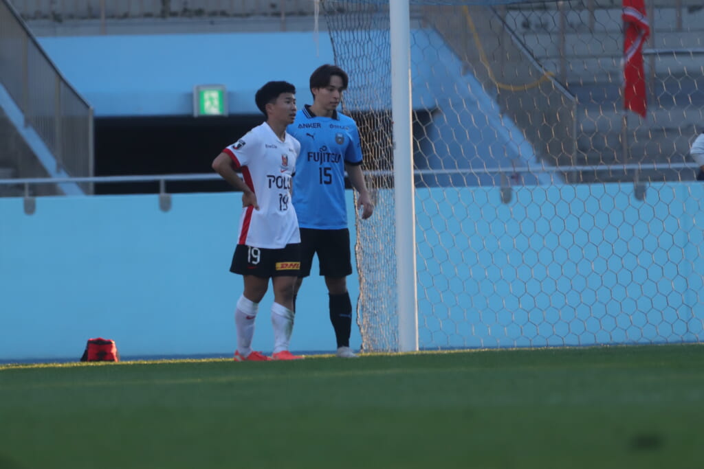 すると直後にはフロンターレ、藤井のパスに抜け出した小川翔太がエリア外右へ。折り返しは浦和が阻むもセカンドボールを拾った藤井のパスに柏村がエリア左へ。