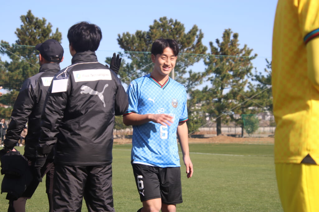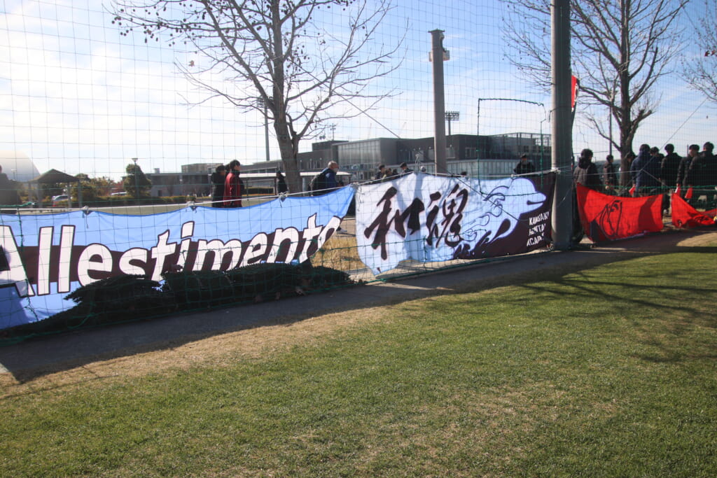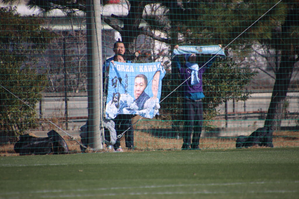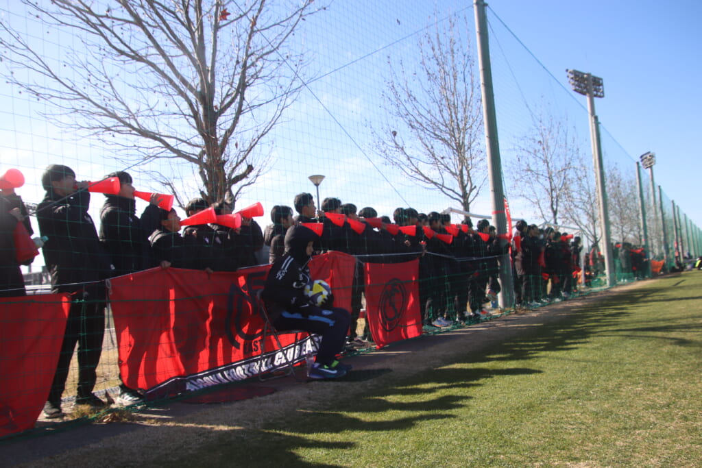 青空の広がったJ-GREEN堺には、両チームの選手の家族らに加え、フロンターレのサポーター、さらには名古屋FC・EASTの多くのメンバー外の選手らも。