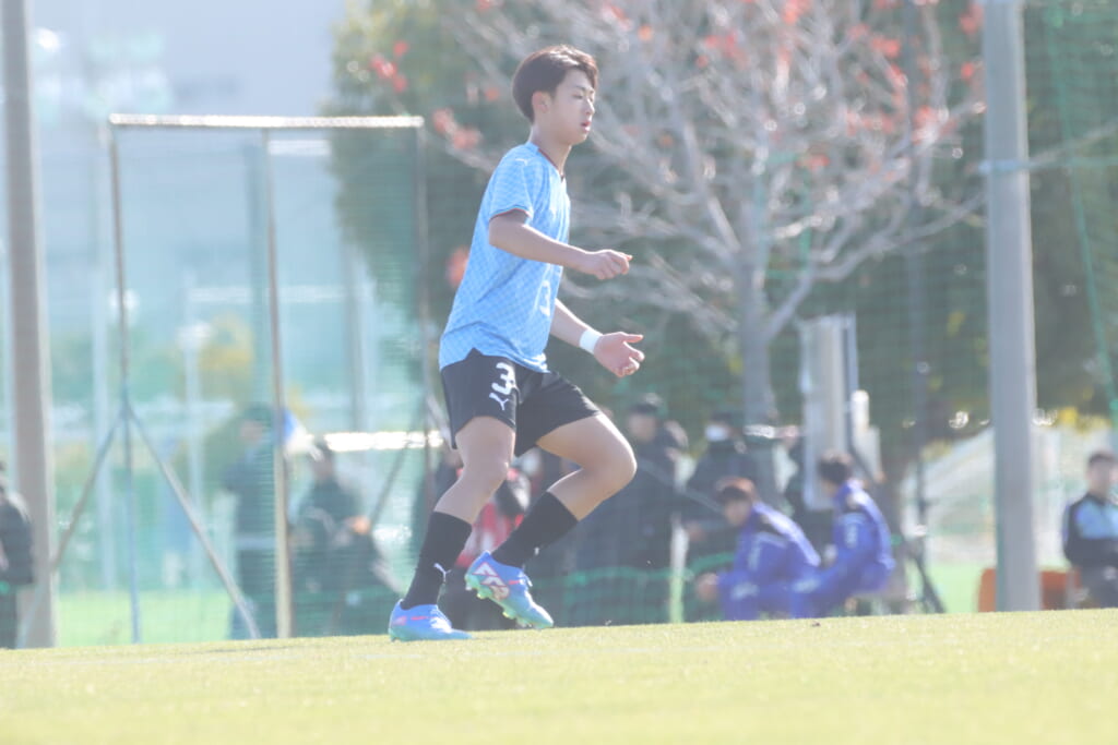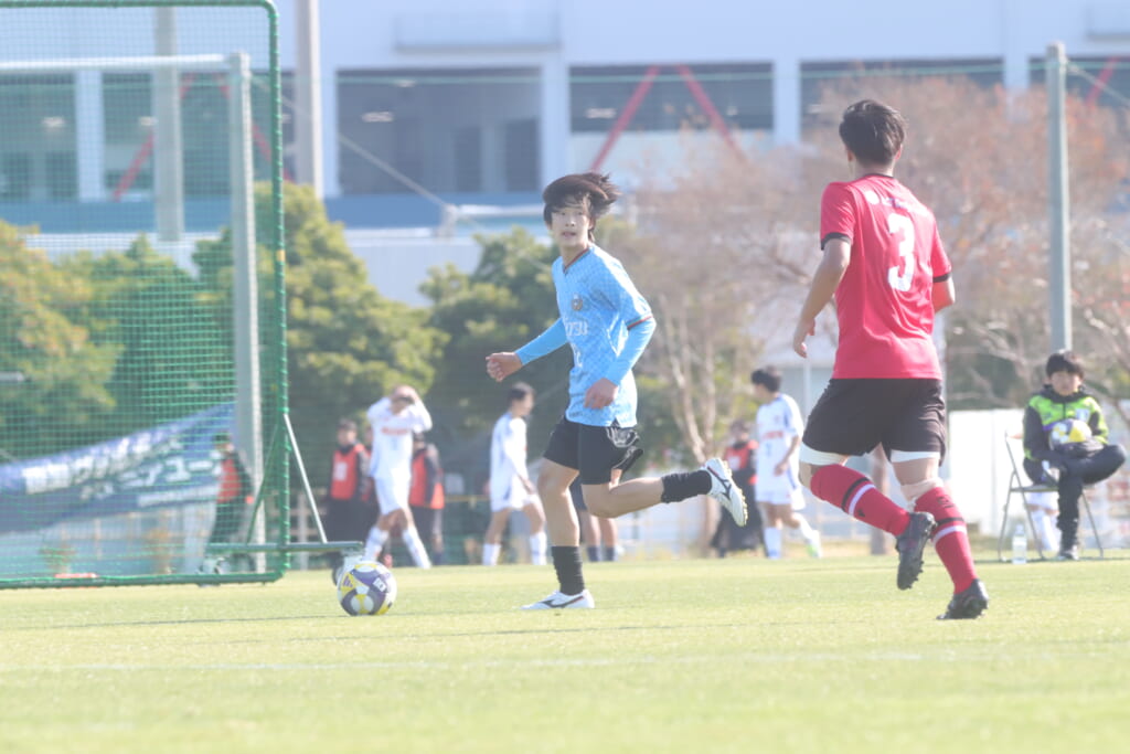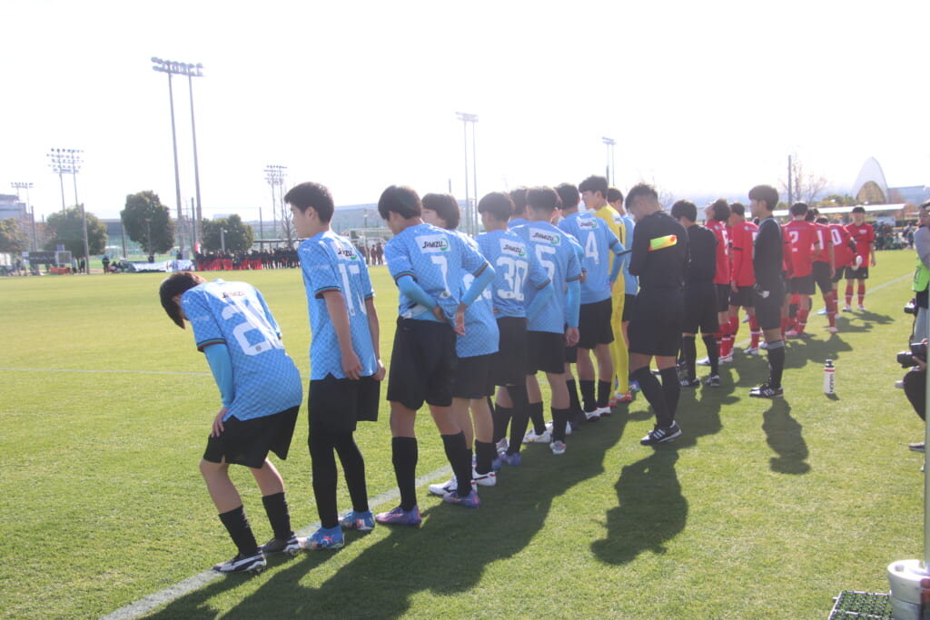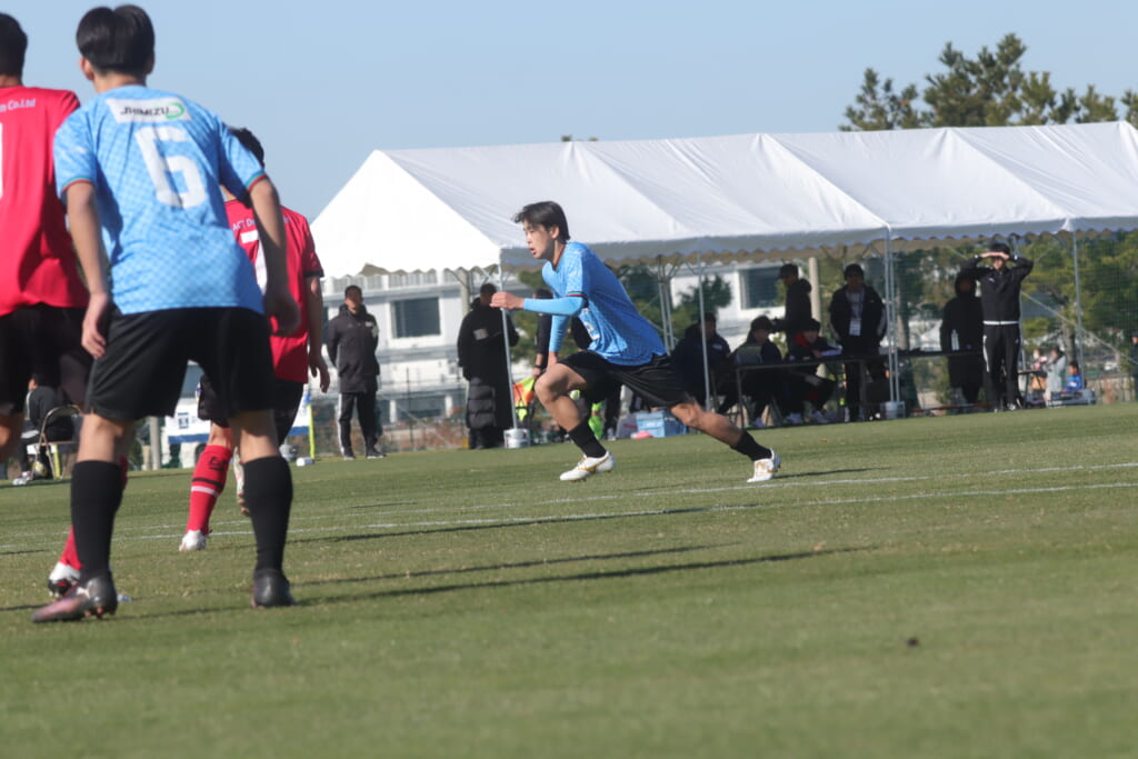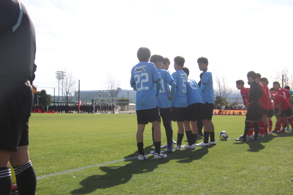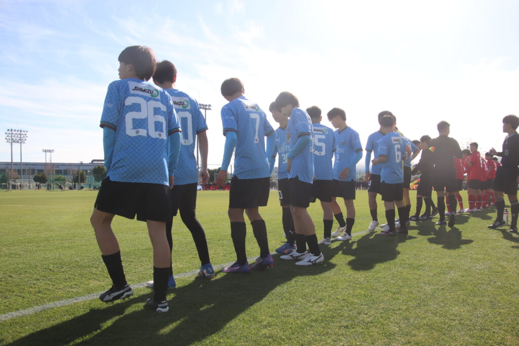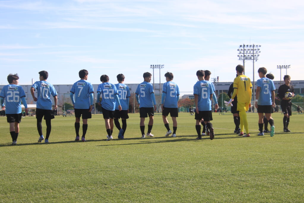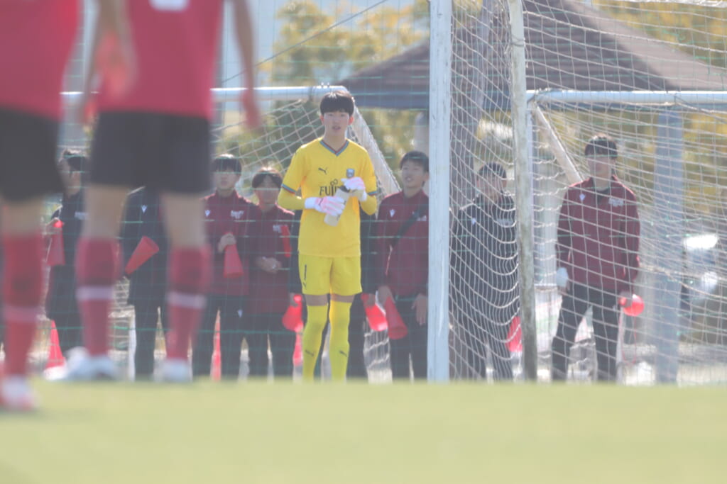 先発は、GK1渡辺虹太、最終ラインは右から4杉原逞、2宍戸道大、キャプテンの5藤瀬結大、3平野翔唯、ボランチは8本坊頼耀、その前に20杉本篤樹、10加藤育真、右に11三輪晃太郎、左に7河合柚輝、前線には9近藤蒼空。