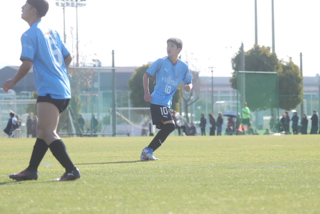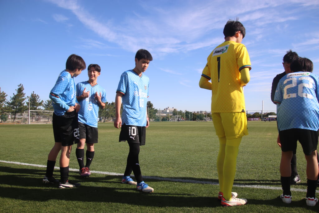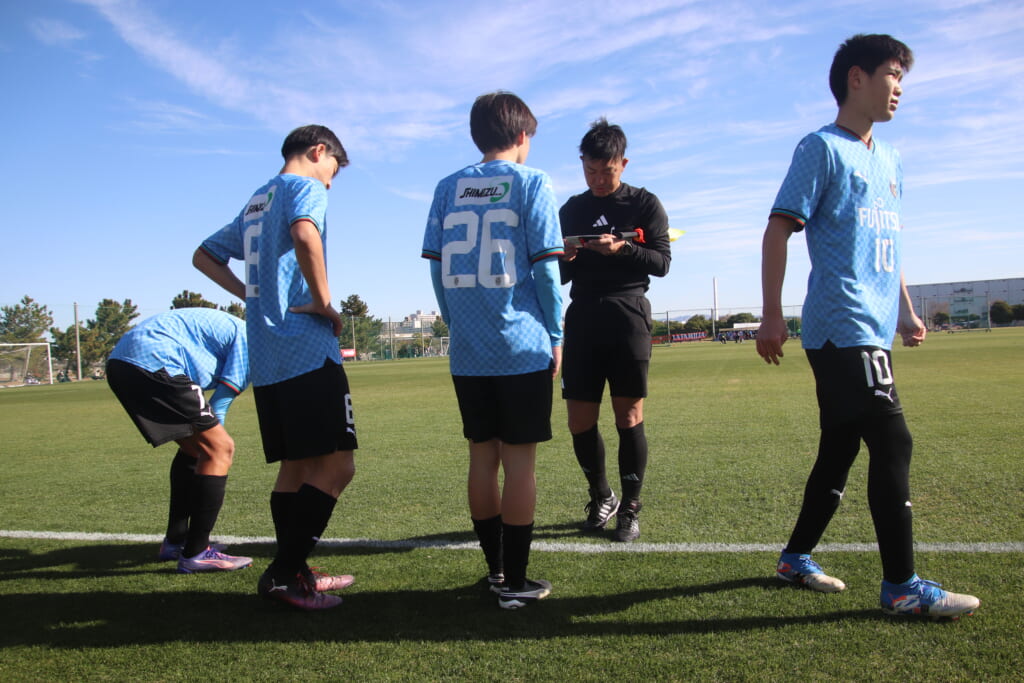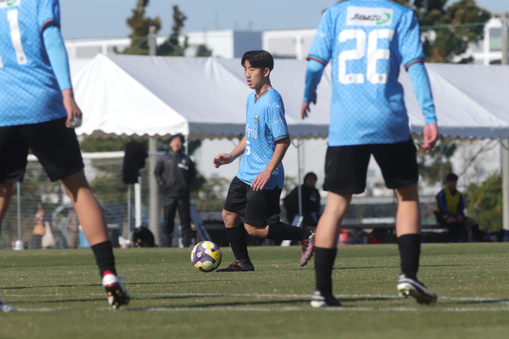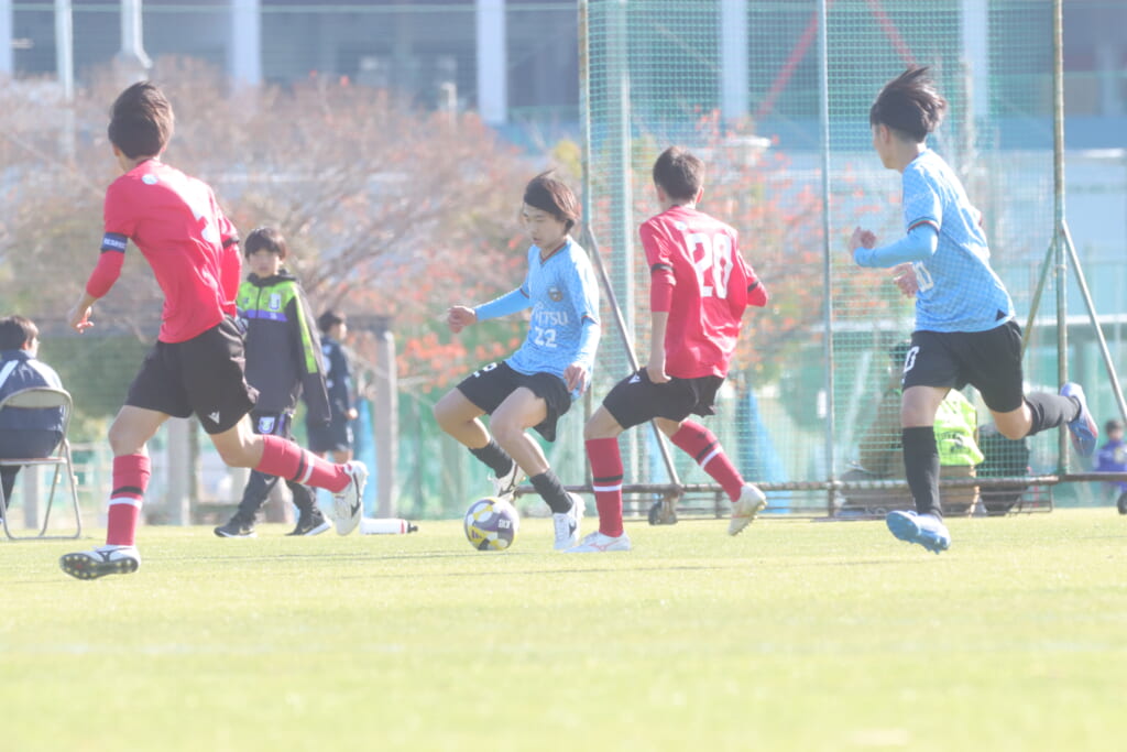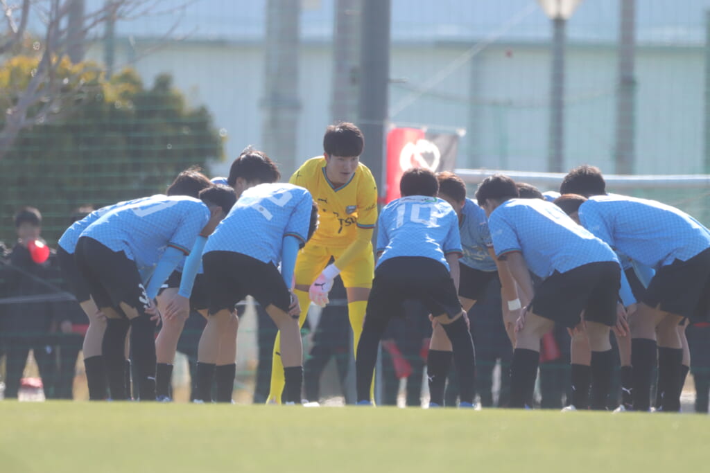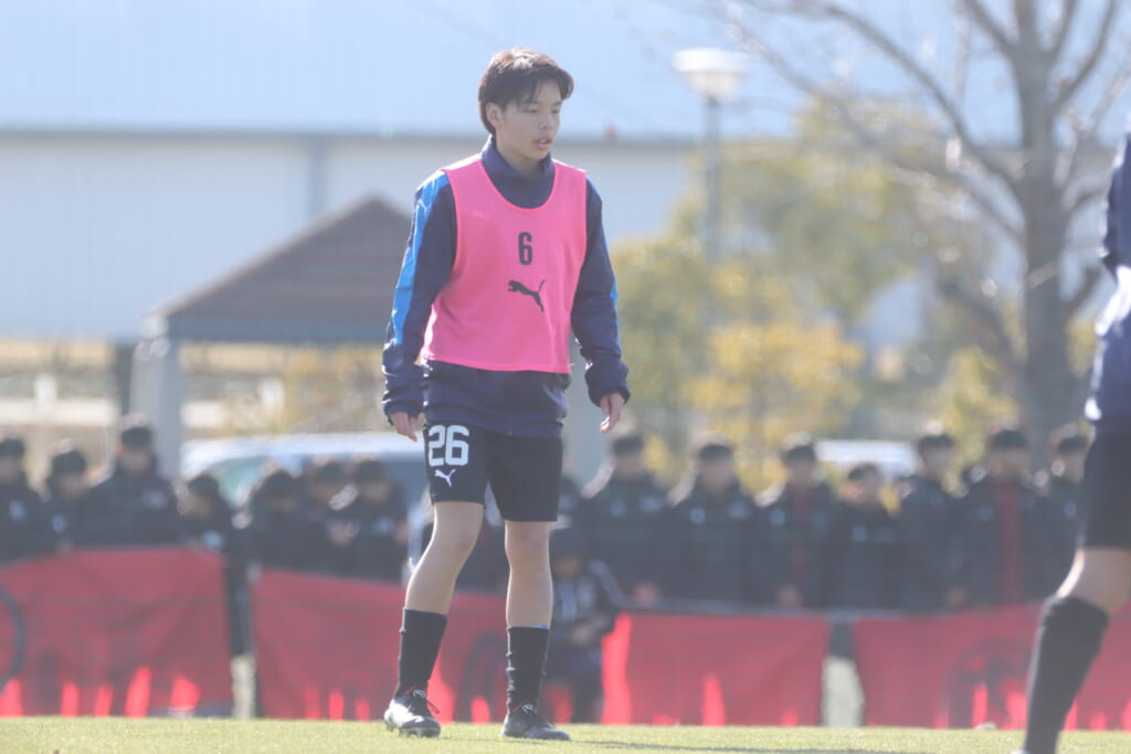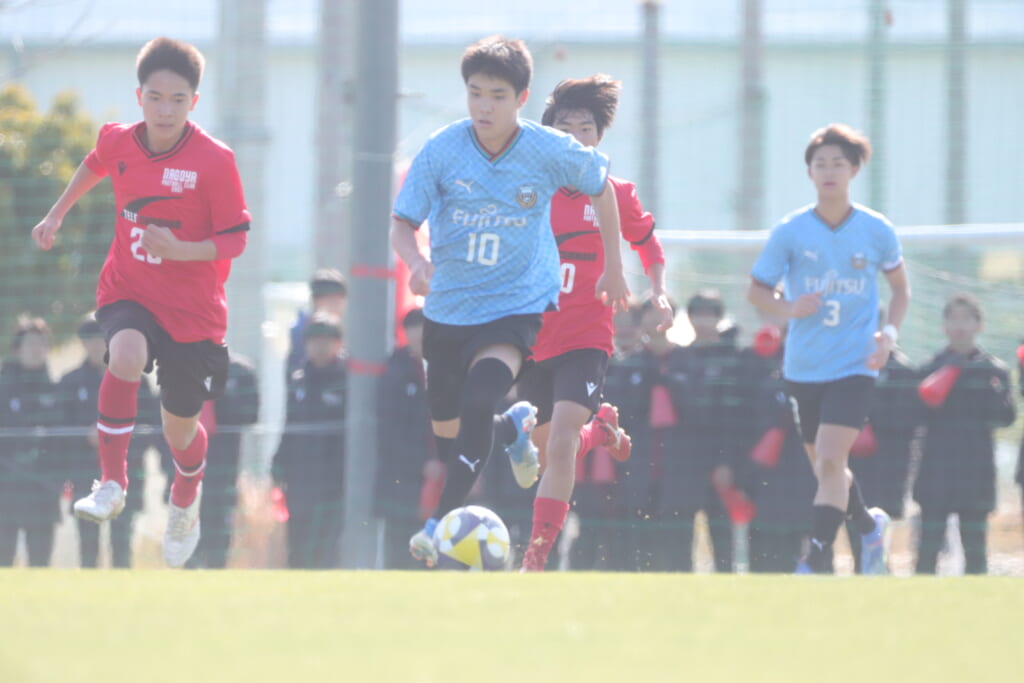 先発は、GK1渡辺虹太、最終ラインは右から4杉原逞、2宍戸道大、キャプテンの5藤瀬結大、3平野翔唯、ボランチは8本坊頼耀、その前に20杉本篤樹、10加藤育真、右に11三輪晃太郎、左に7河合柚輝、前線には9近藤蒼空。