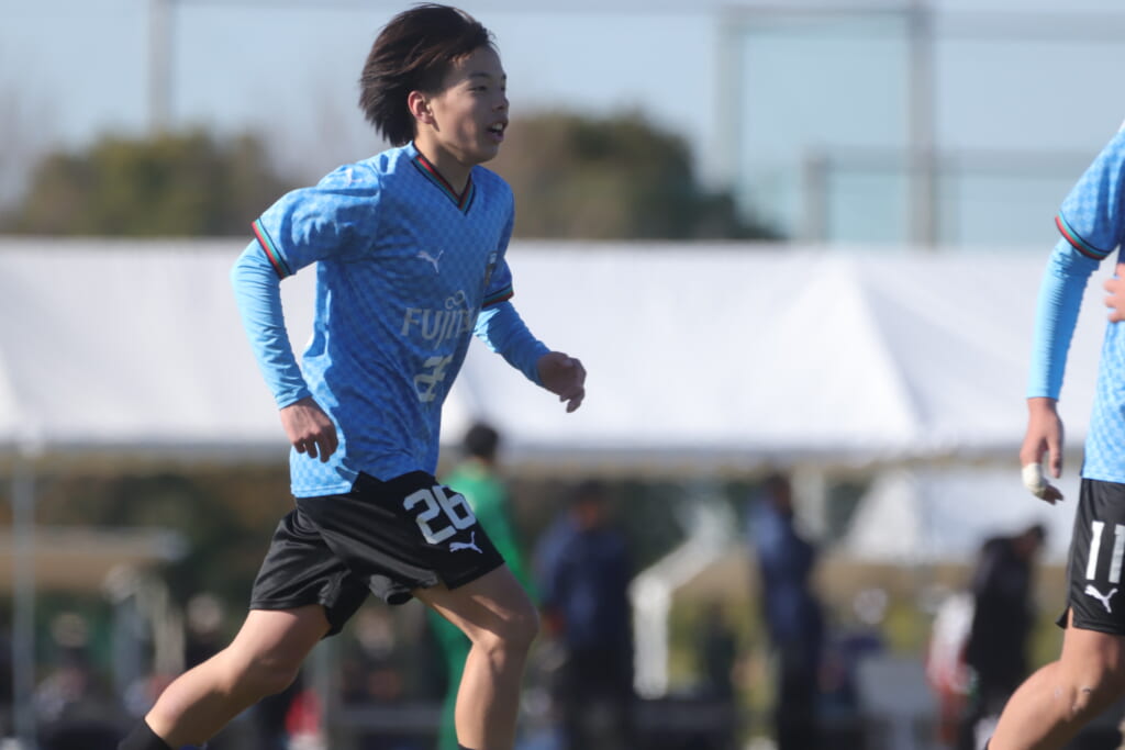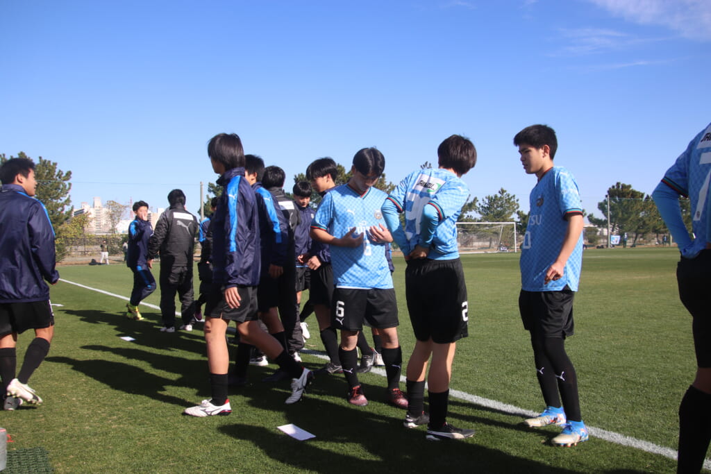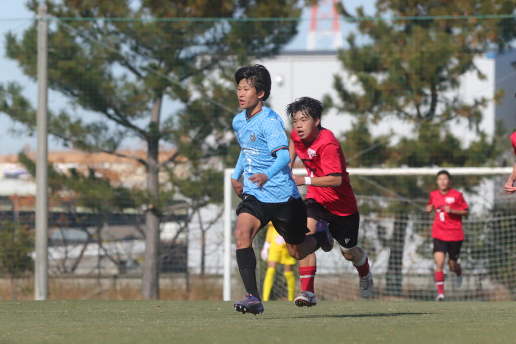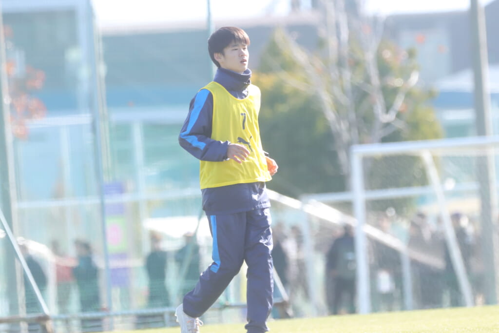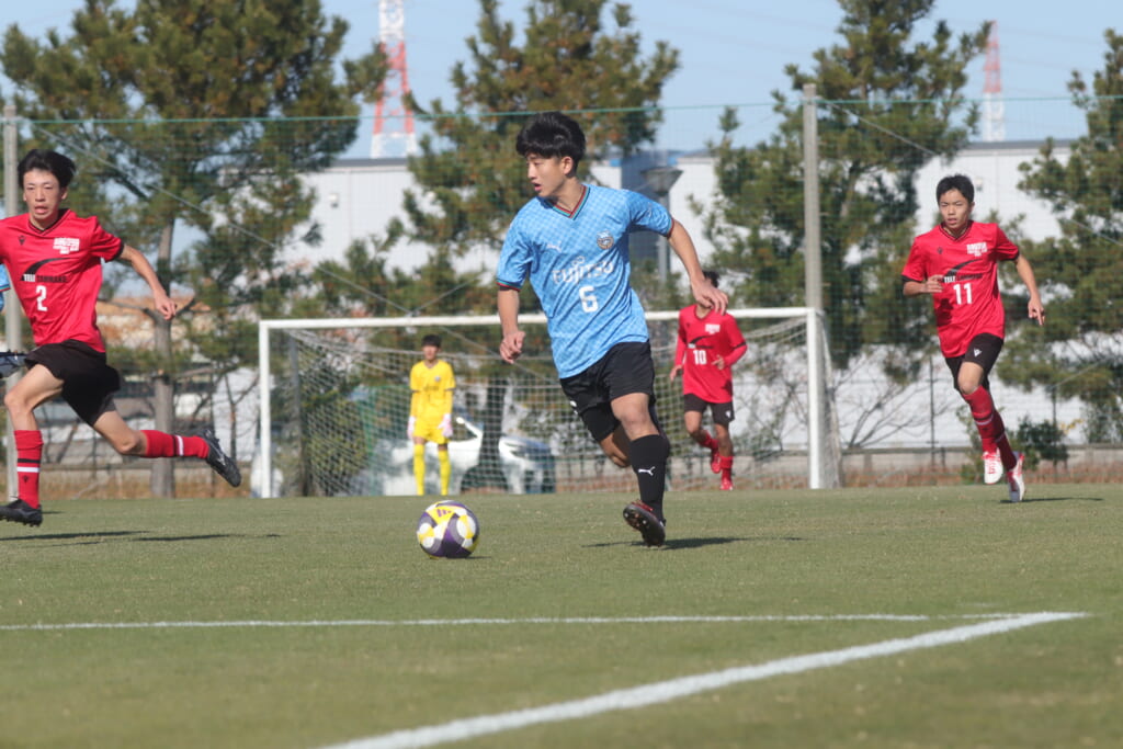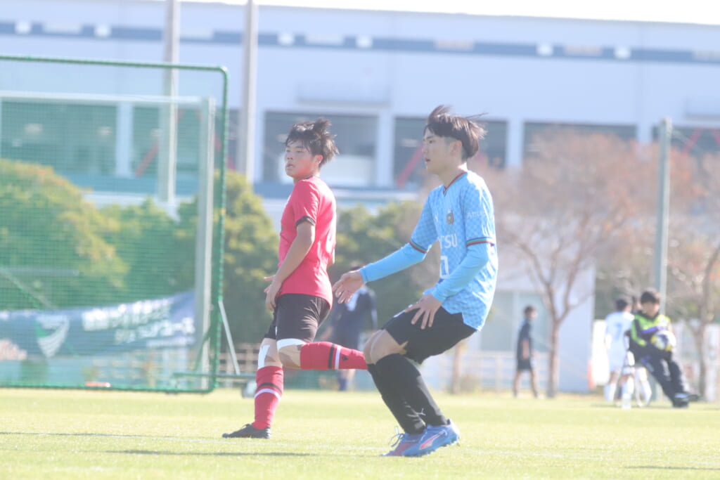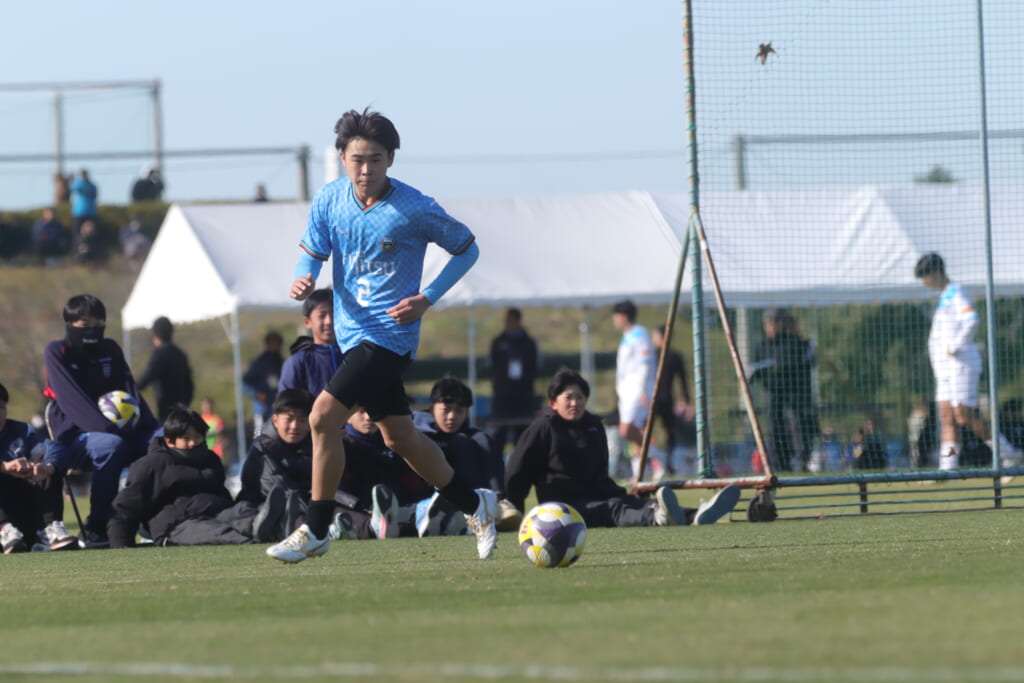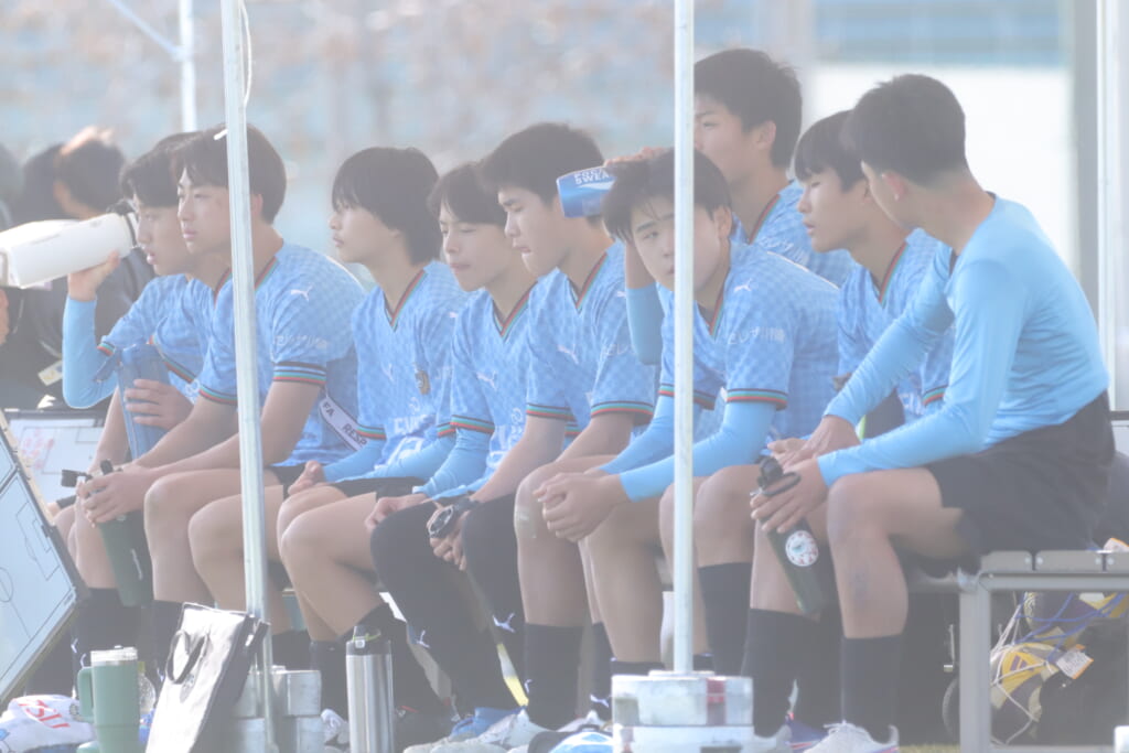 先発は、GK1渡辺虹太、最終ラインは右から4杉原逞、2宍戸道大、キャプテンの5藤瀬結大、3平野翔唯、ボランチは8本坊頼耀、その前に20杉本篤樹、10加藤育真、右に11三輪晃太郎、左に7河合柚輝、前線には9近藤蒼空。
