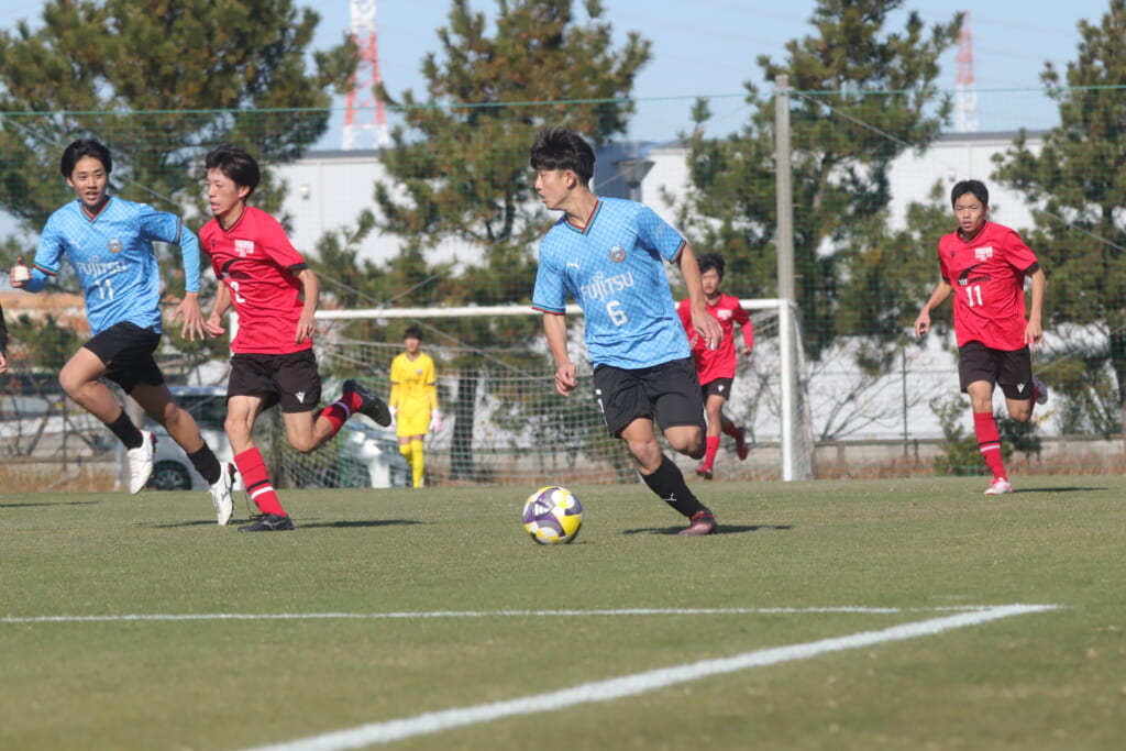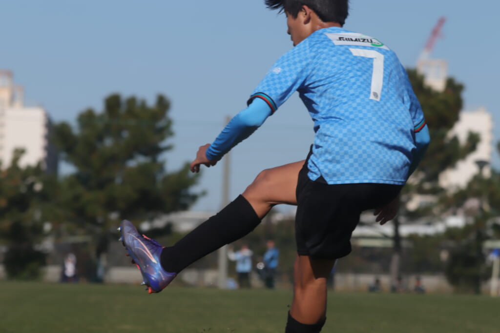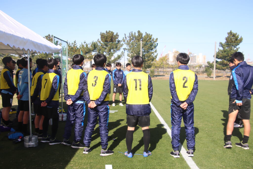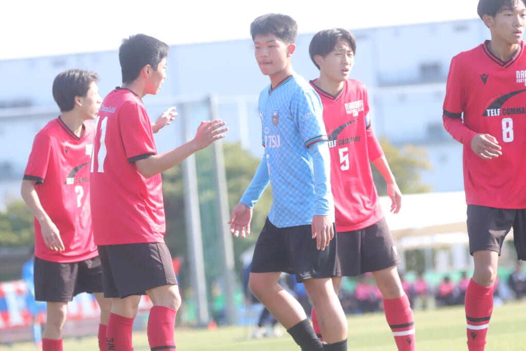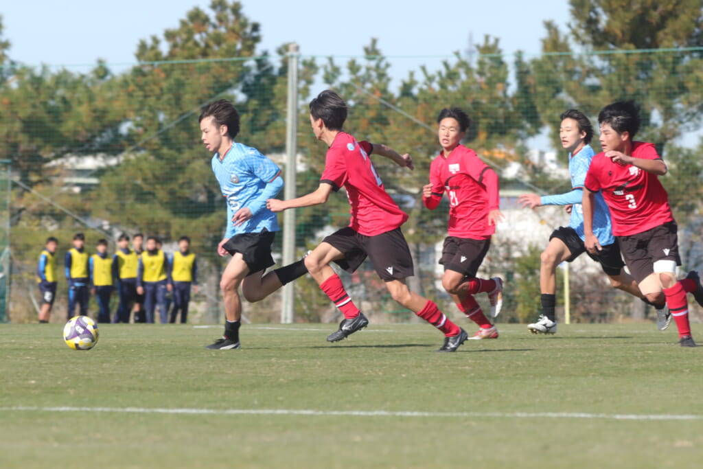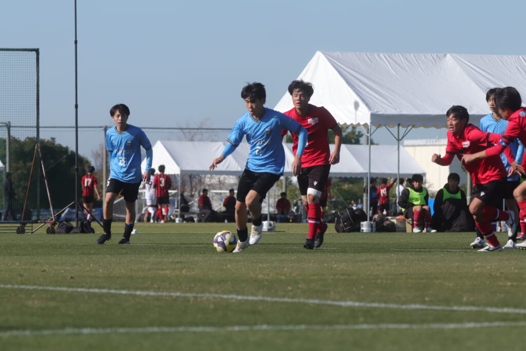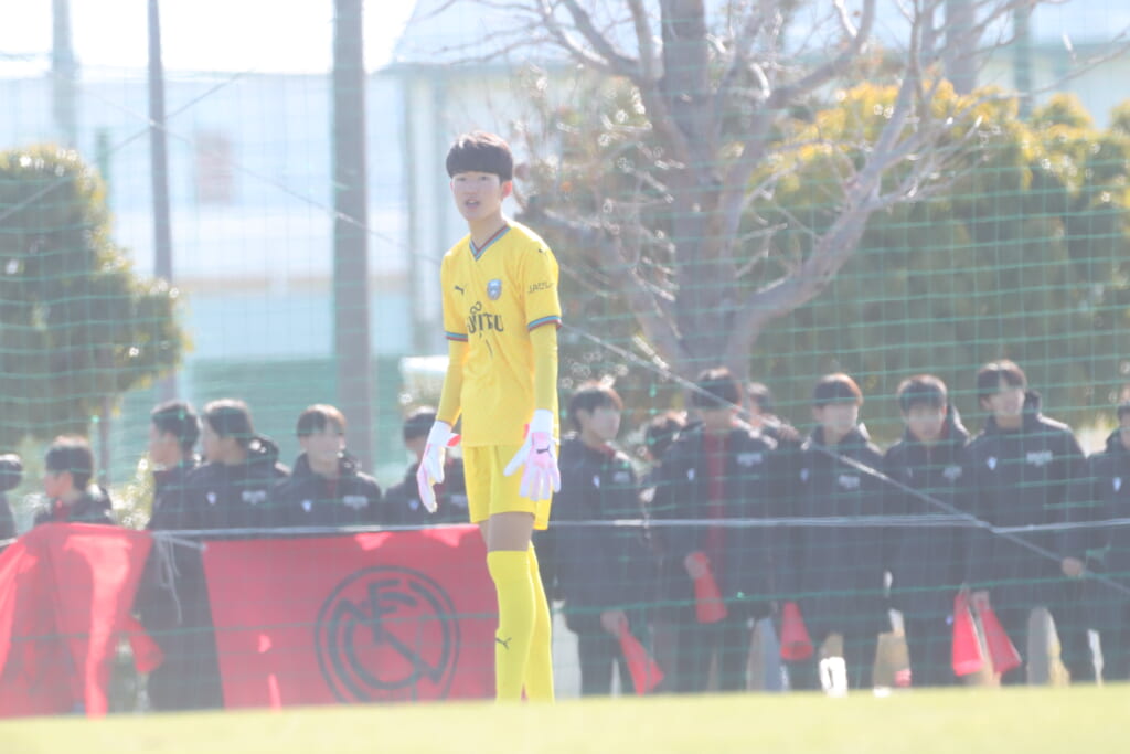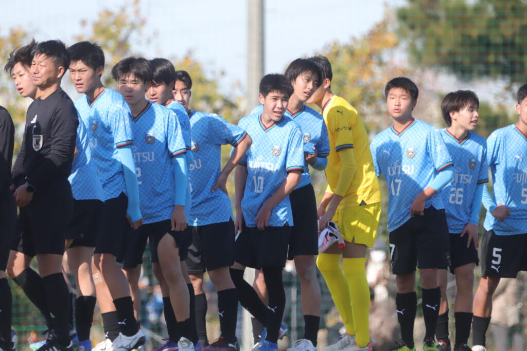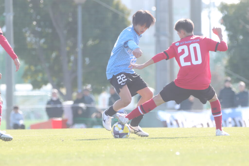 先発は、GK1渡辺虹太、最終ラインは右から4杉原逞、2宍戸道大、キャプテンの5藤瀬結大、3平野翔唯、ボランチは8本坊頼耀、その前に20杉本篤樹、10加藤育真、右に11三輪晃太郎、左に7河合柚輝、前線には9近藤蒼空。