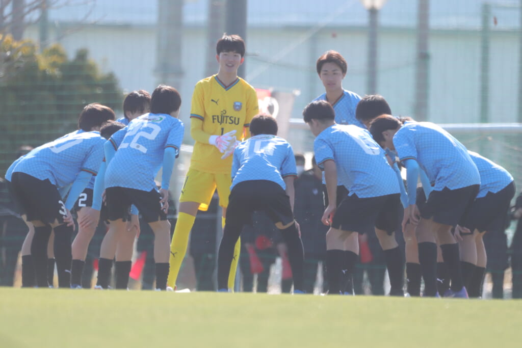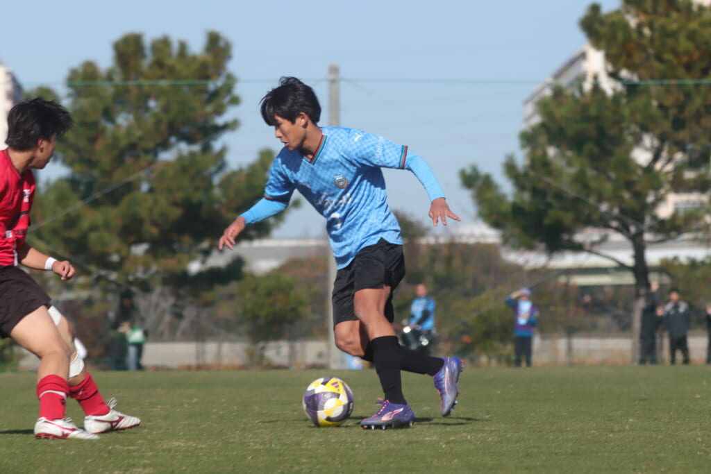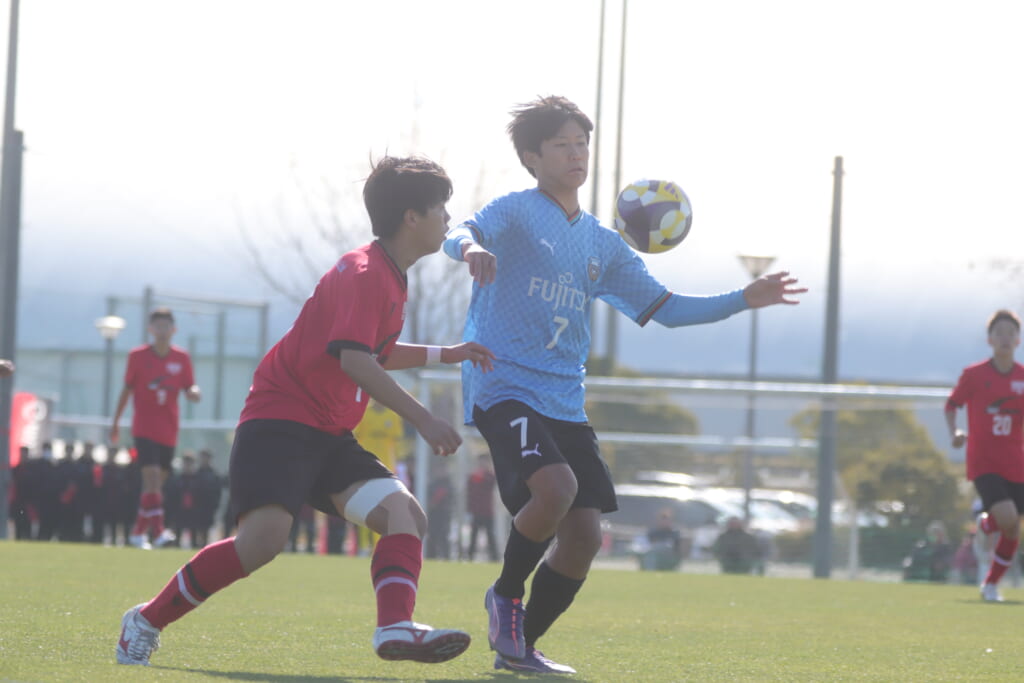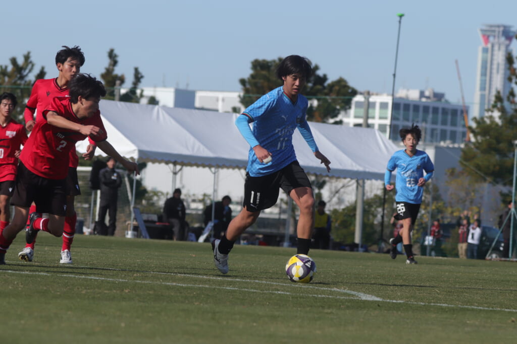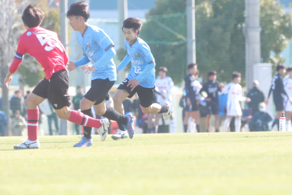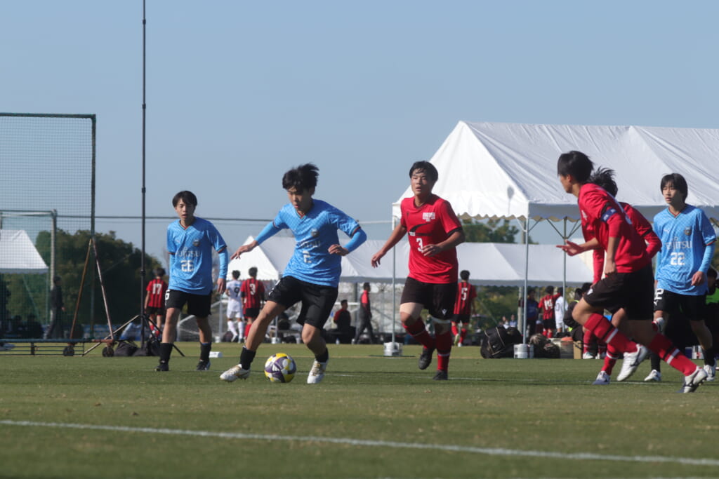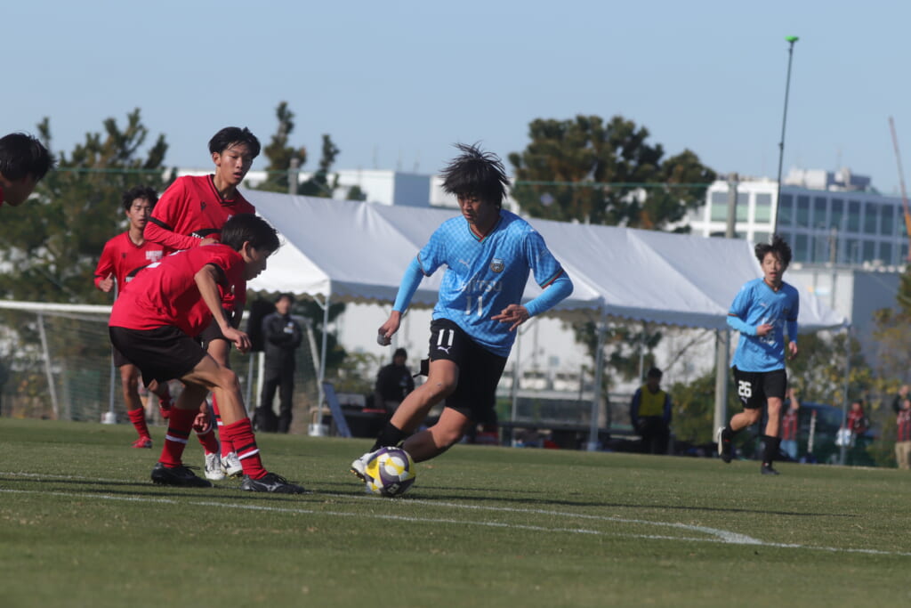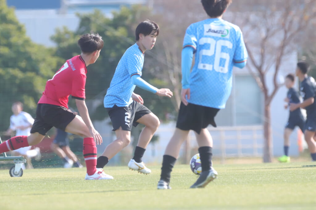 先発は、GK1渡辺虹太、最終ラインは右から4杉原逞、2宍戸道大、キャプテンの5藤瀬結大、3平野翔唯、ボランチは8本坊頼耀、その前に20杉本篤樹、10加藤育真、右に11三輪晃太郎、左に7河合柚輝、前線には9近藤蒼空。