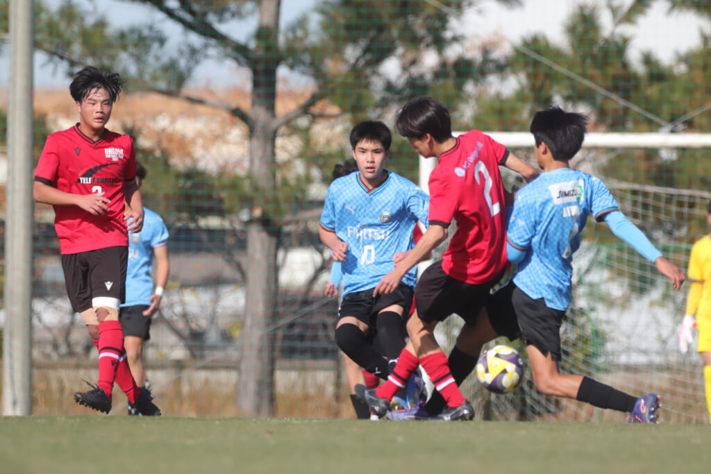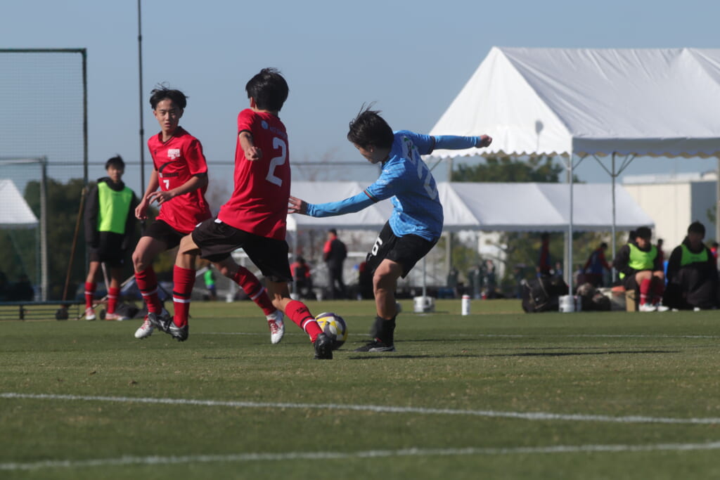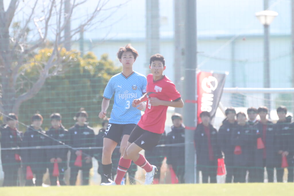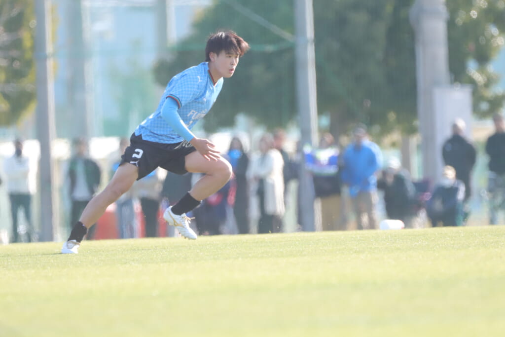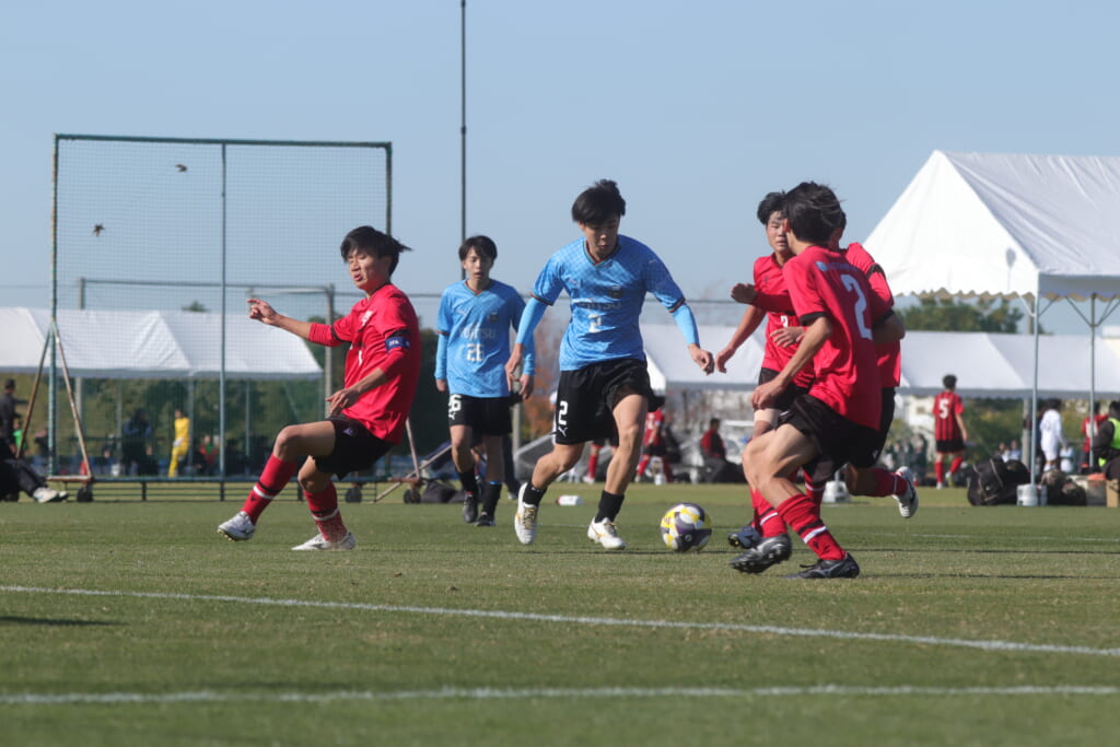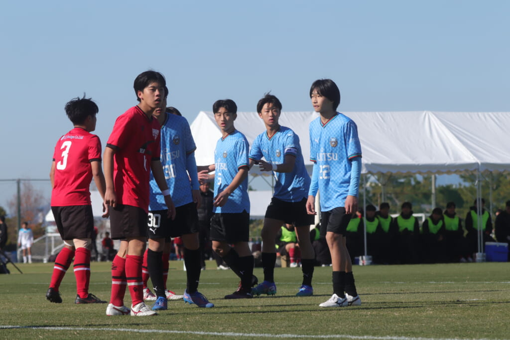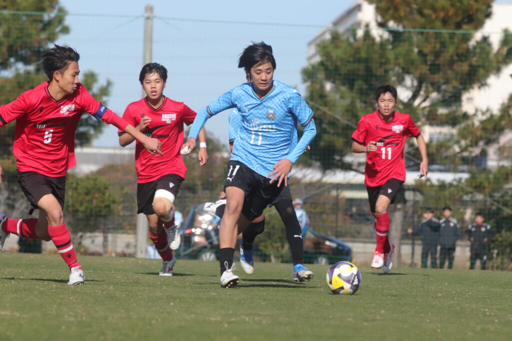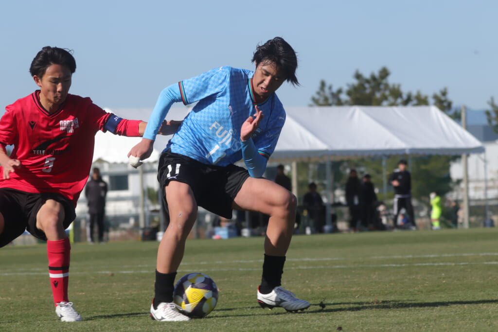 先発は、GK1渡辺虹太、最終ラインは右から4杉原逞、2宍戸道大、キャプテンの5藤瀬結大、3平野翔唯、ボランチは8本坊頼耀、その前に20杉本篤樹、10加藤育真、右に11三輪晃太郎、左に7河合柚輝、前線には9近藤蒼空。