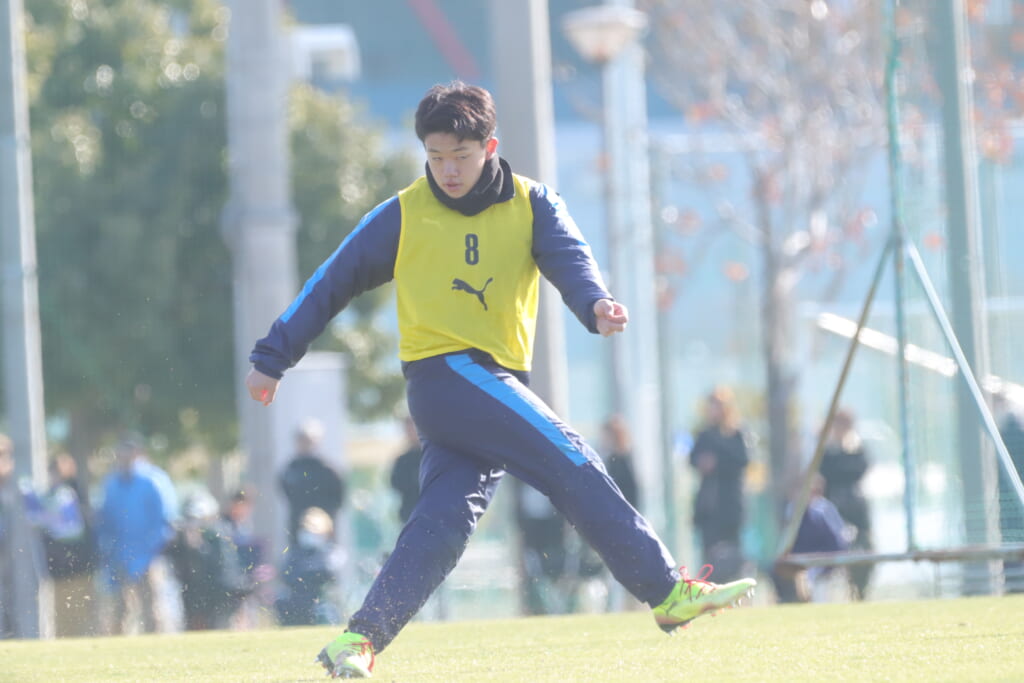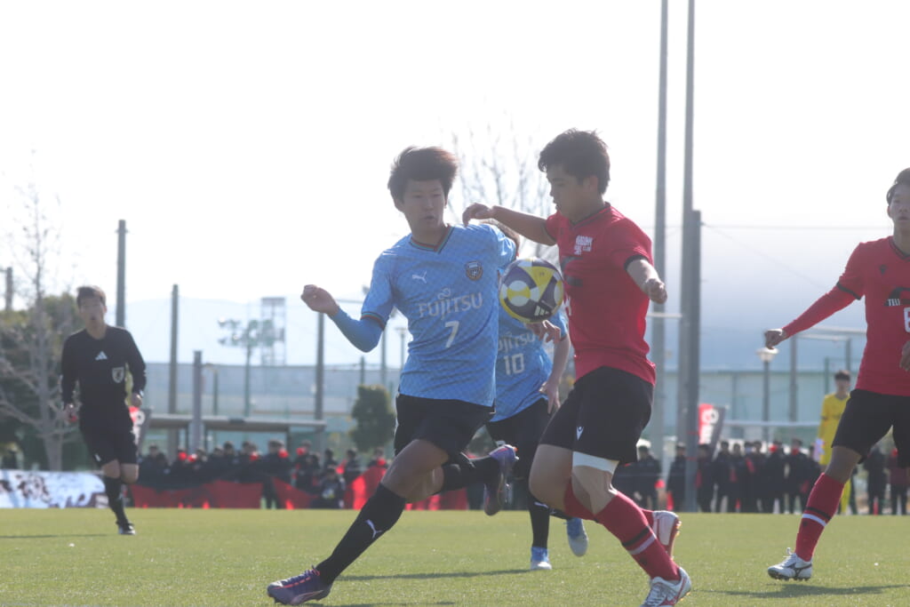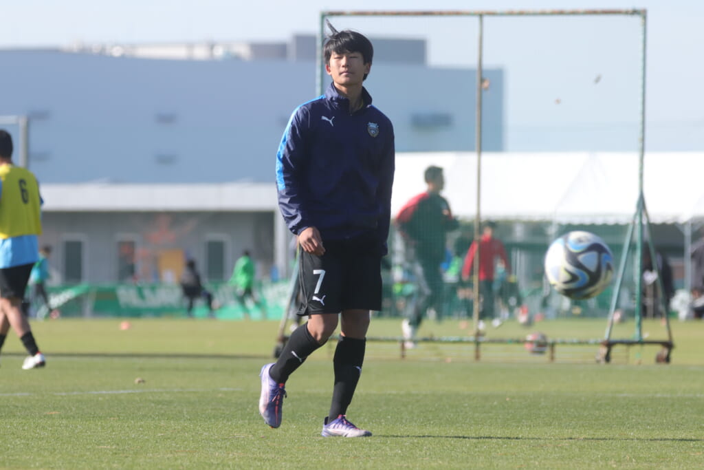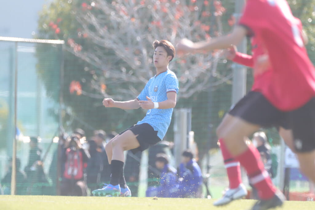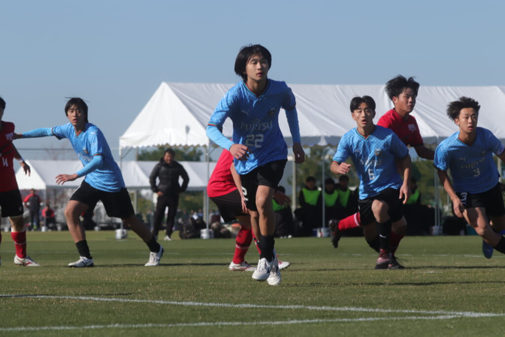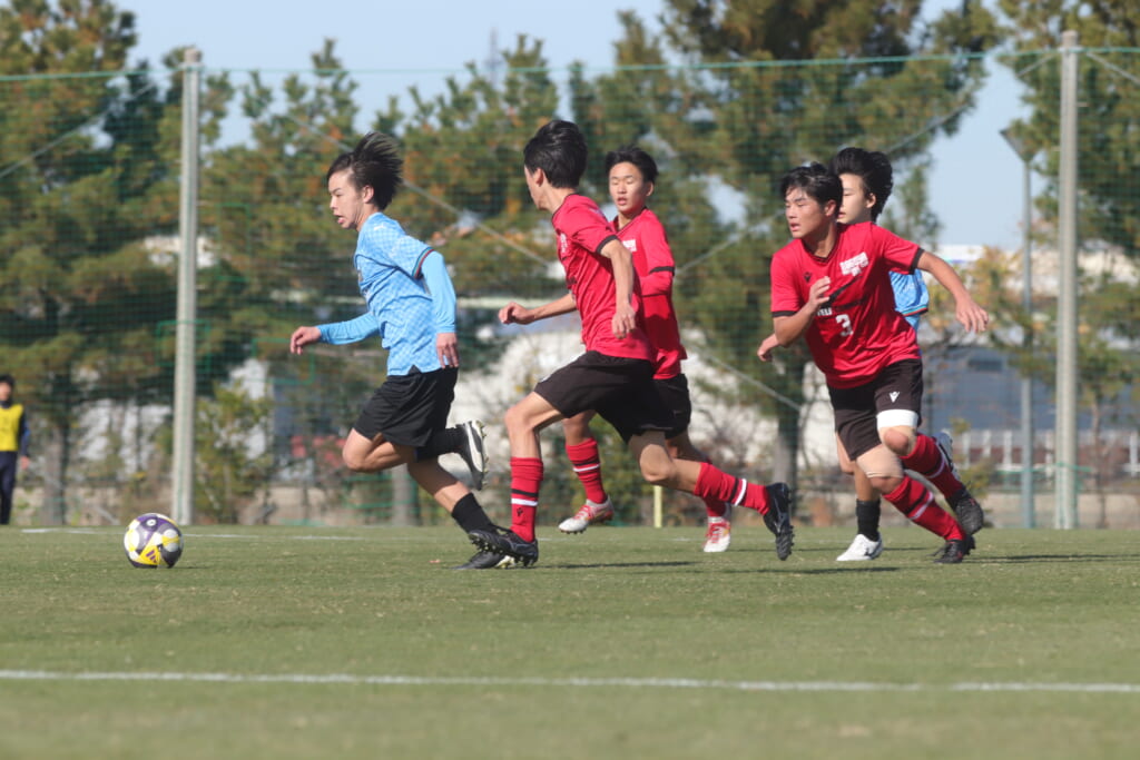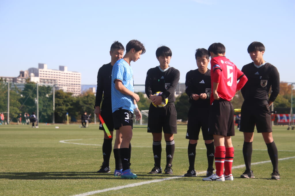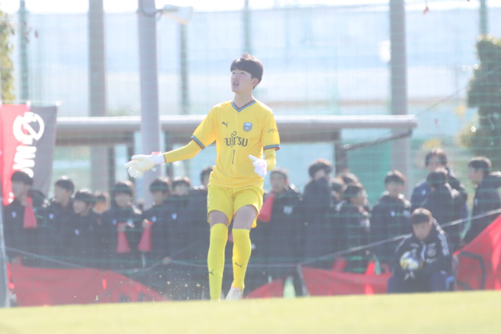 先発は、GK1渡辺虹太、最終ラインは右から4杉原逞、2宍戸道大、キャプテンの5藤瀬結大、3平野翔唯、ボランチは8本坊頼耀、その前に20杉本篤樹、10加藤育真、右に11三輪晃太郎、左に7河合柚輝、前線には9近藤蒼空。