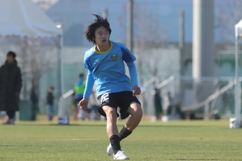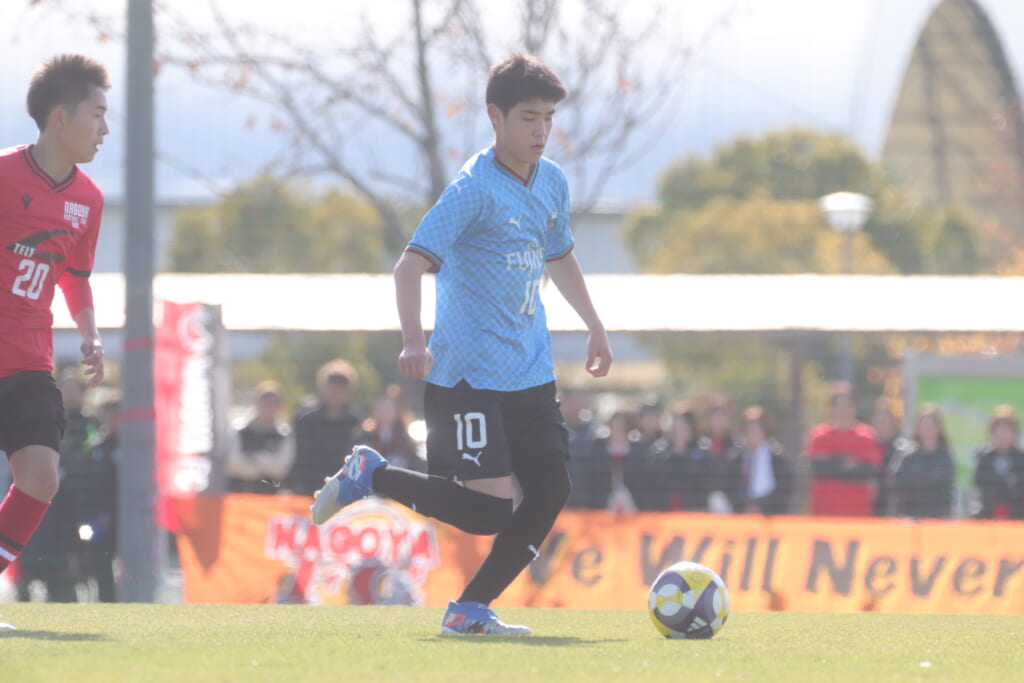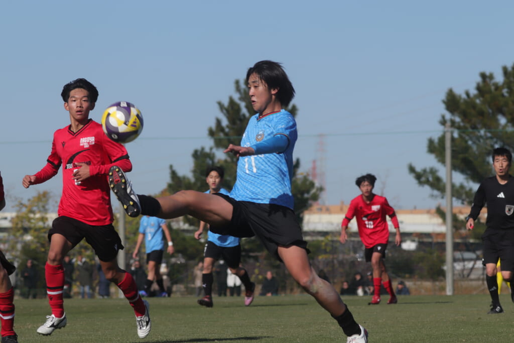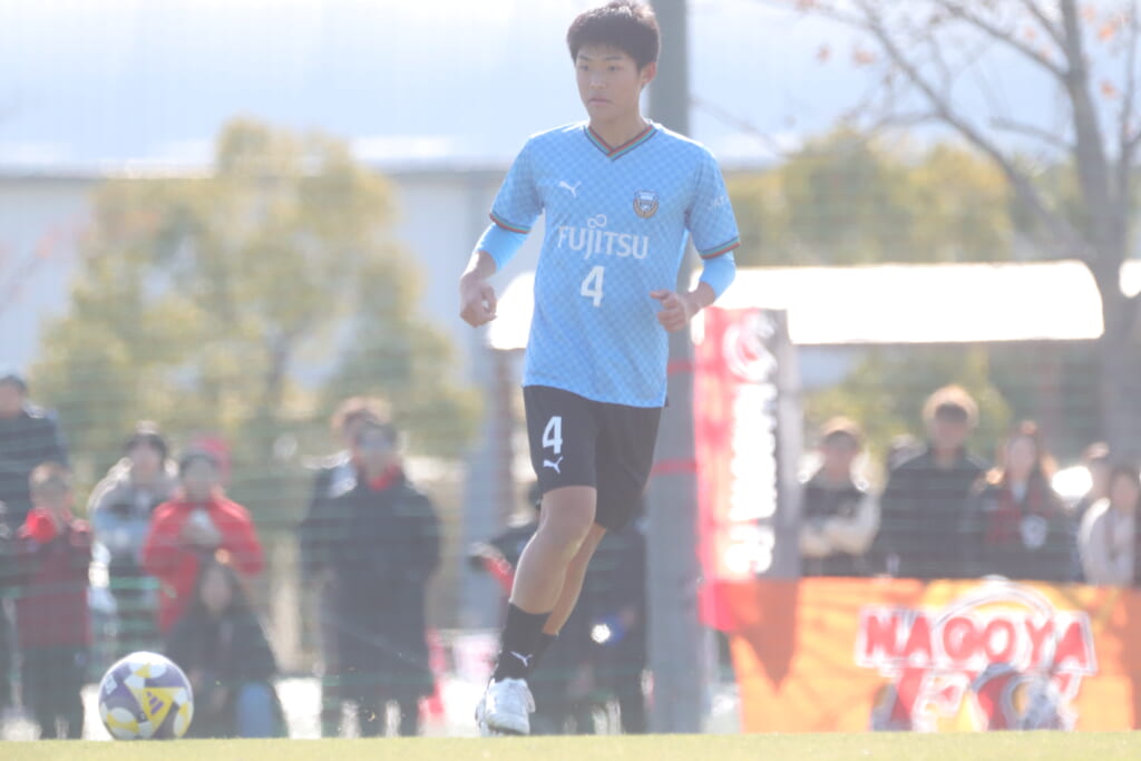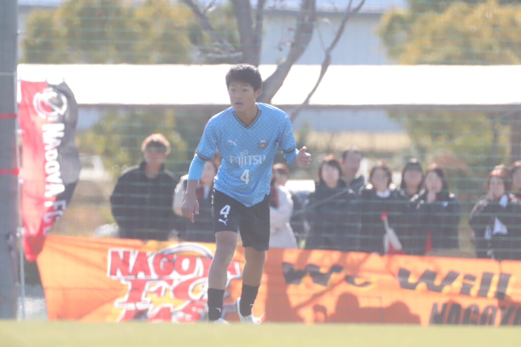左コーナーキックを得たフロンターレ生田、戸澤が入れると、セカンドボールを拾い、中野が正面へ。しかし、名古屋FC・EASTの体を張った対応に遭い、右コーナーキックに。