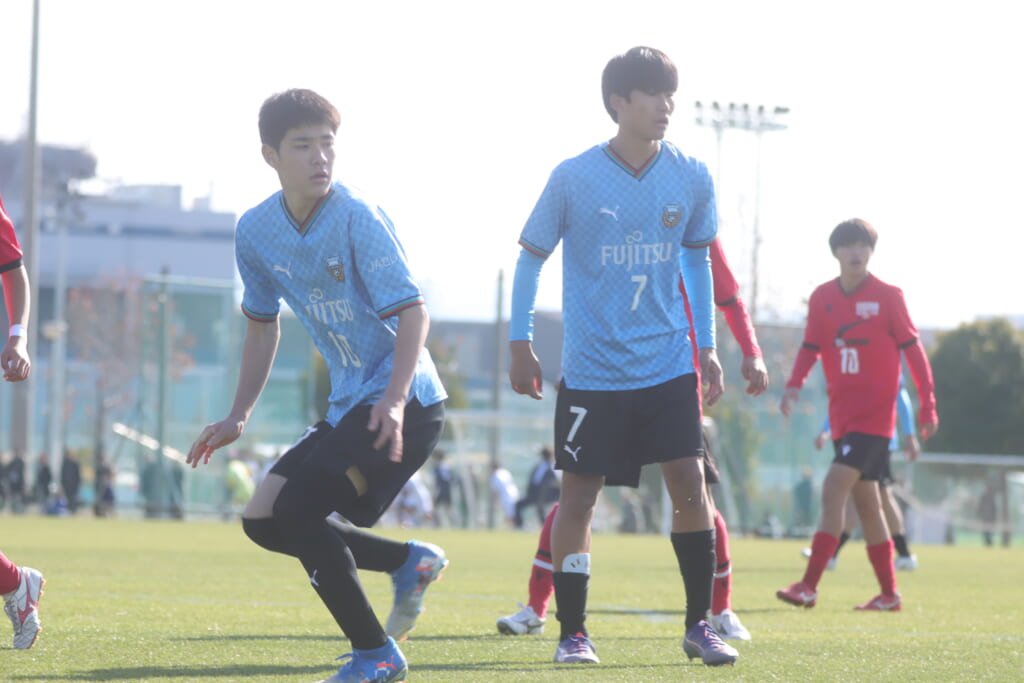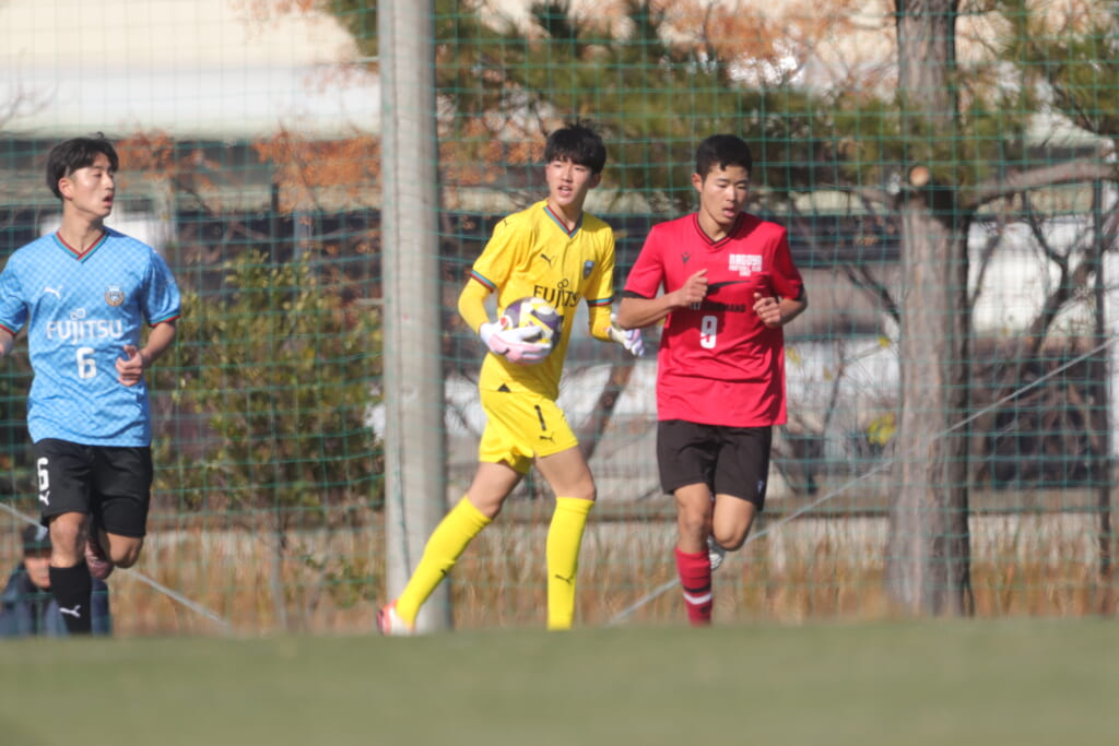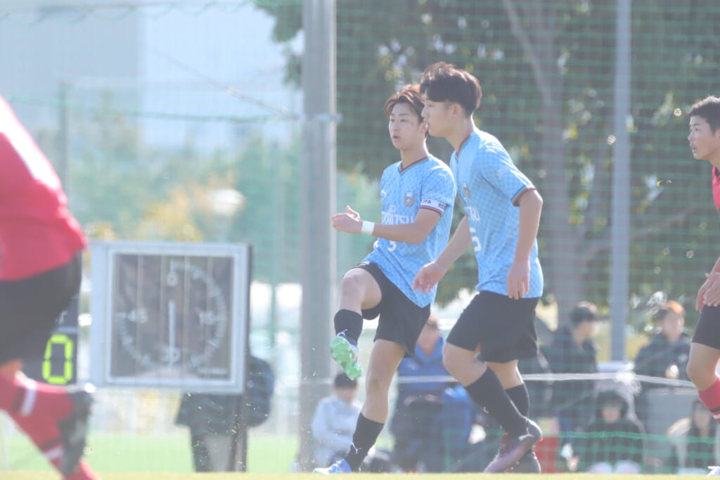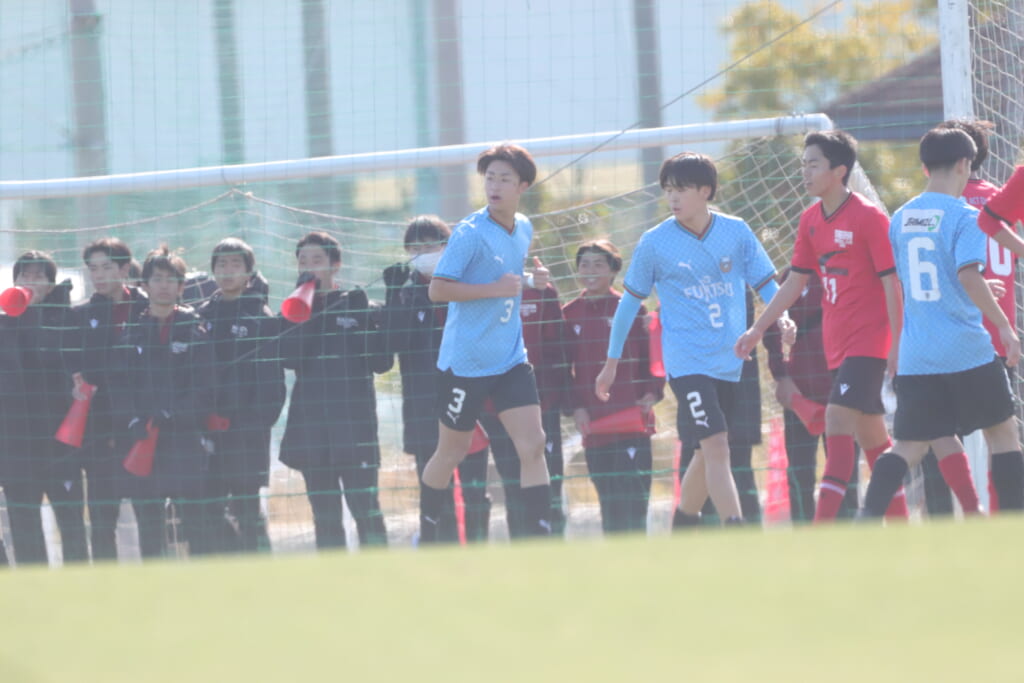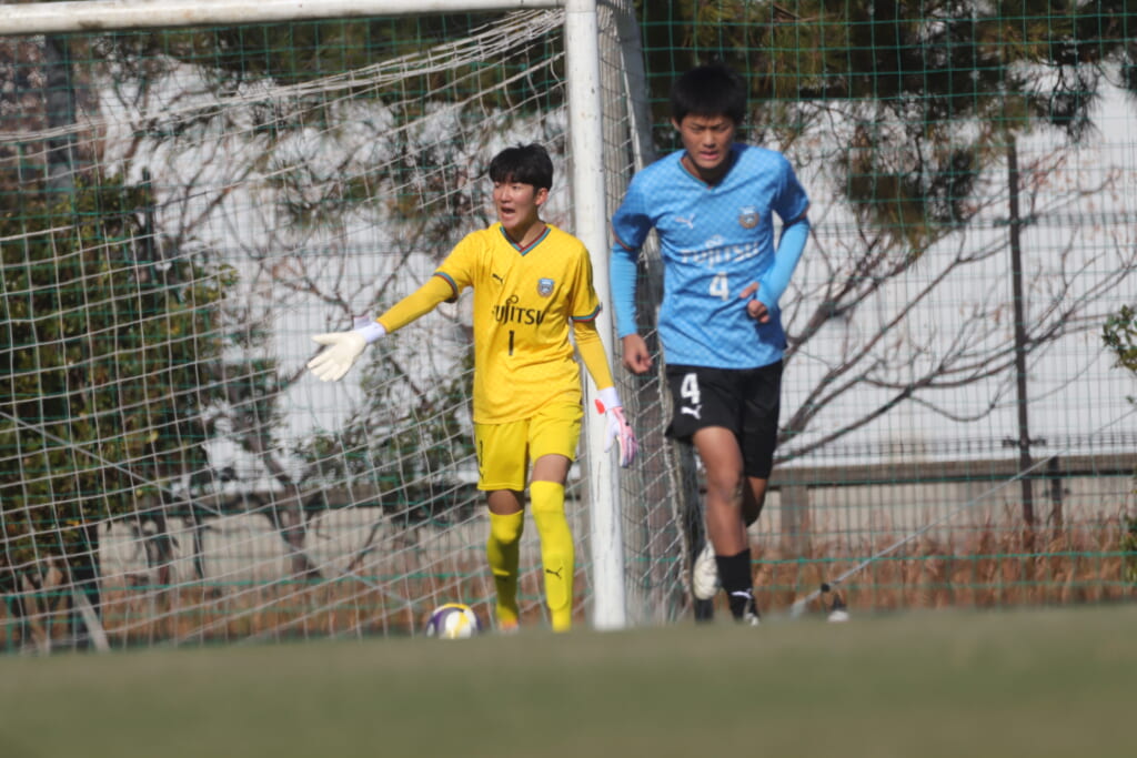 再び自分たちでボールをつなぎ、浮き球に対しては上野が競り、拾った吉田が粘り強くキープ。うまく時間を使いながらプレーしていくフロンターレ生田。