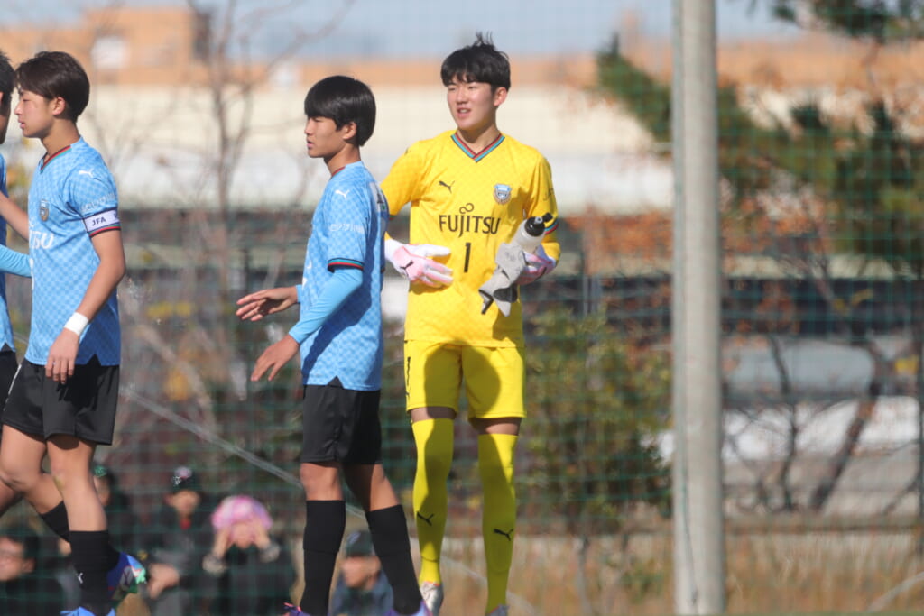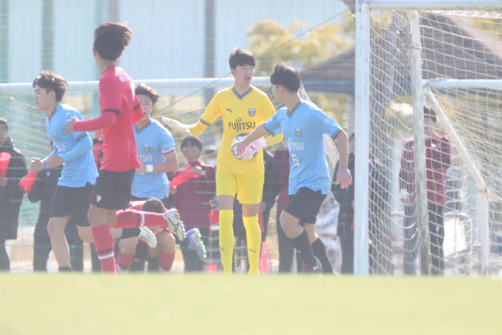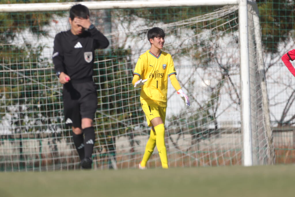 しかし、こぼれ球を拾ったフロンターレ生田は、戸澤の右クロスに、正面へ飛び込んだのは吉田。ボールはゴールの中へ。1-0。