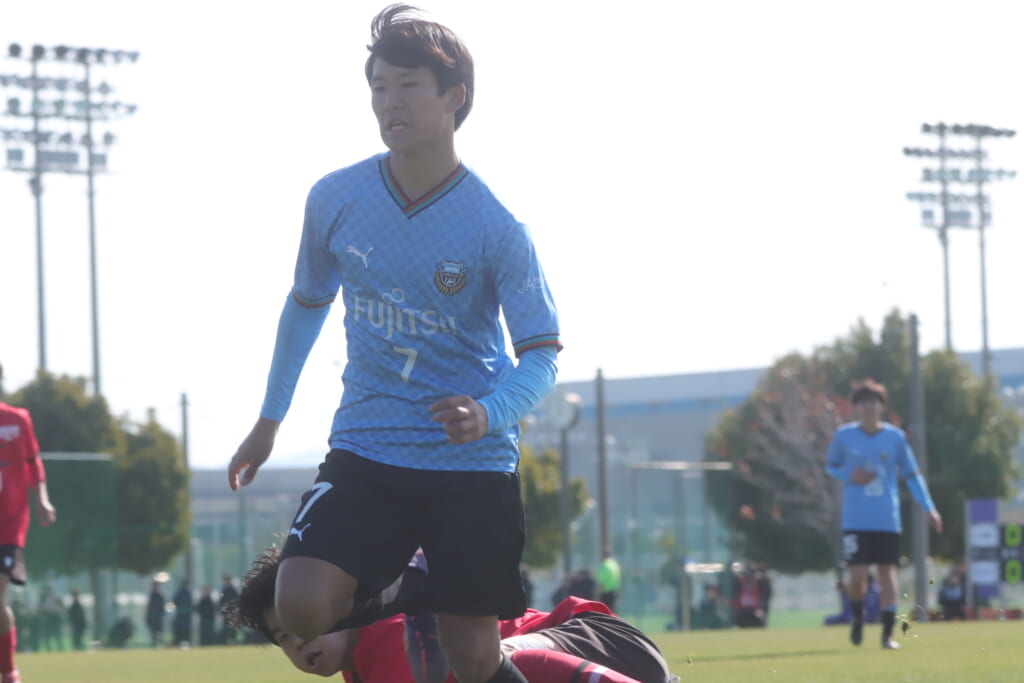 すると11分には、フロンターレ生田、荒井の縦パスに左サイドから正面左へ持ち込んだ川上が折り返し。