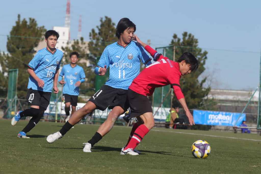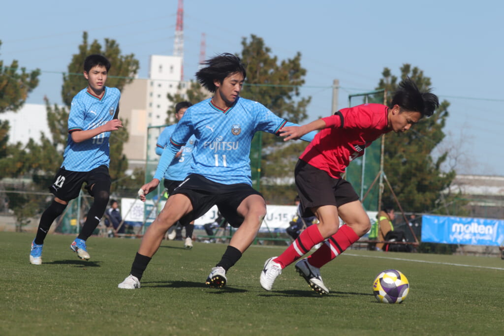 12月14日の2回戦では、フロンターレ生田はアルビレックス新潟と対戦。吉田琉海がPKを決め2試合連続のゴールを決めると後半にはオウンゴールで追加点。2-0で勝利し、準々決勝に進出しました。