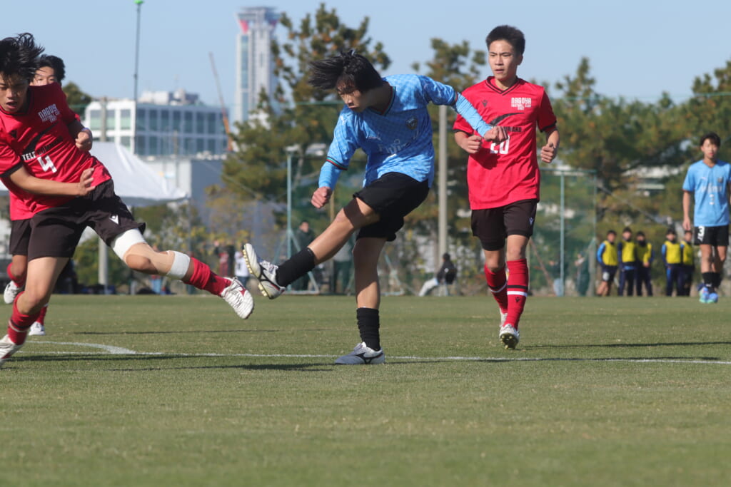 一方の名古屋FC・EASTも、杉原のパスに近藤が右サイド、高い位置へ。近藤の折り返しに、加藤が正面へ。しかし、對馬が対応。
