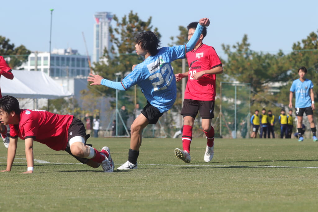 33分には、名古屋FC・EAST、河内が正面へ持ち込んでいきますが、戸澤が体を入れ、最後は河内のファールに。