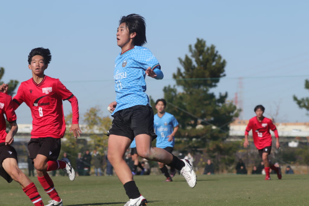 さらに名古屋FC・EASTは杉原のパスに、三輪が高い位置へ。しかし、吉田が粘り強く寄せて前には行かせず。