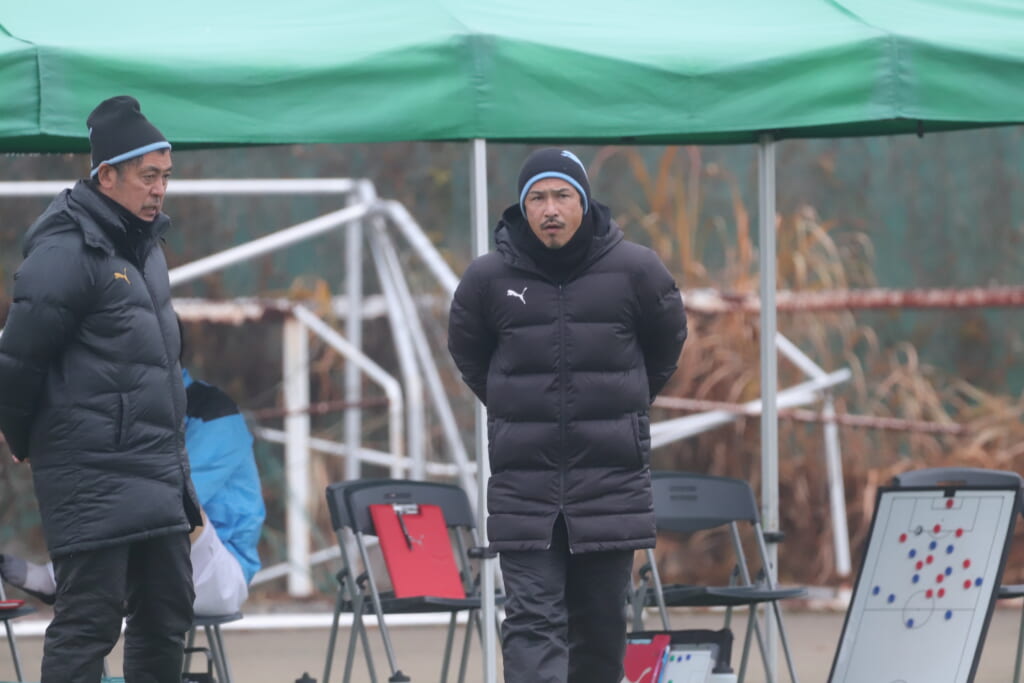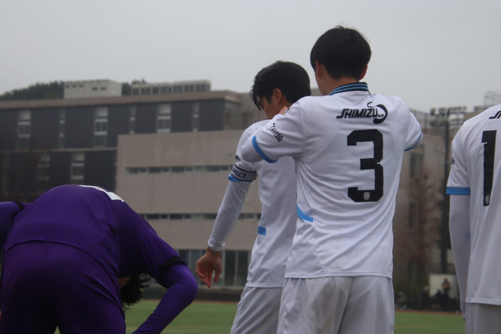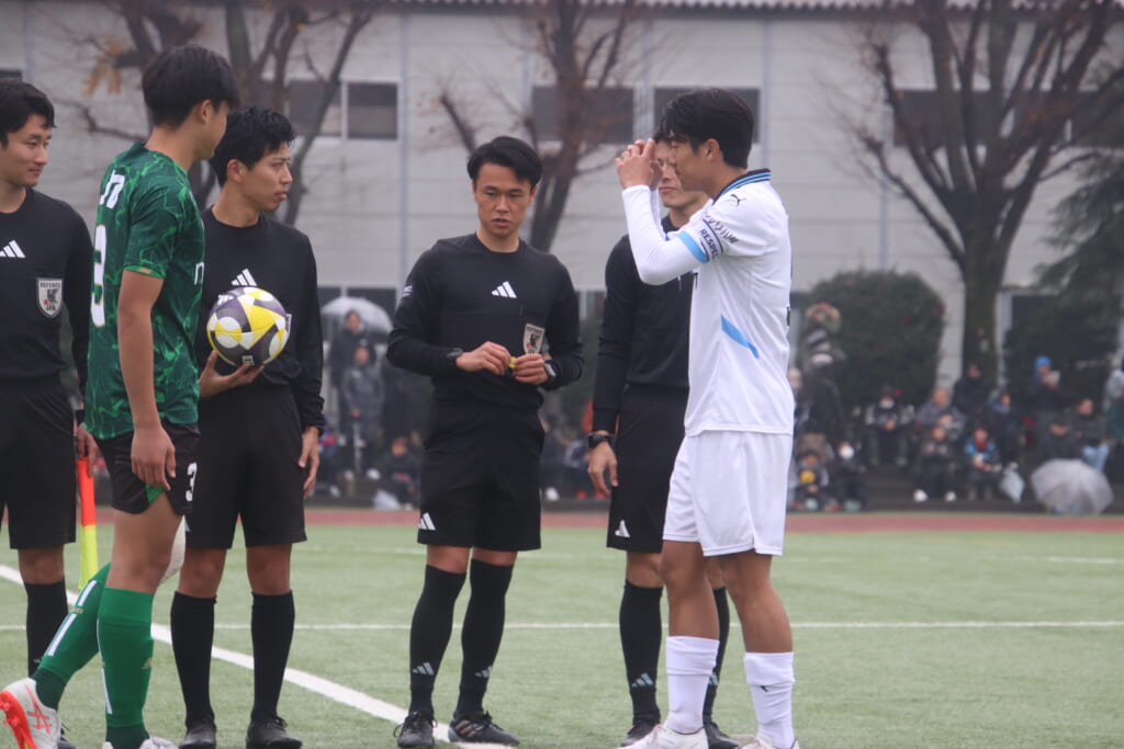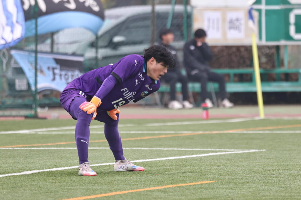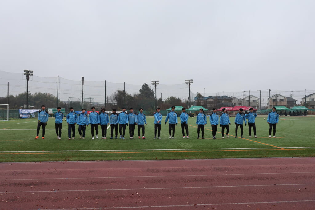先発は、GK1土渕璃久、最終ラインは右から4高橋心晴、キャプテンの3伊藤隆寛、32古川雄規、ボランチは8人見大地、35工藤敦士、右に17中島夢瞬、左に12森井智也、シャドーに14飯島碧大、10山口豪太、前線には9立野京弥。
