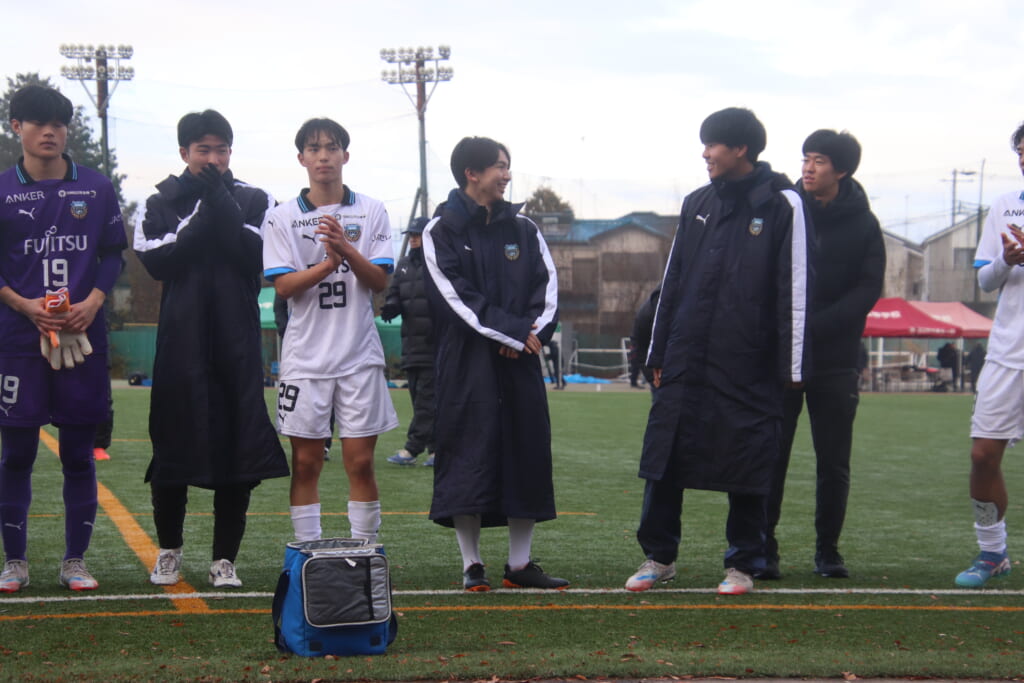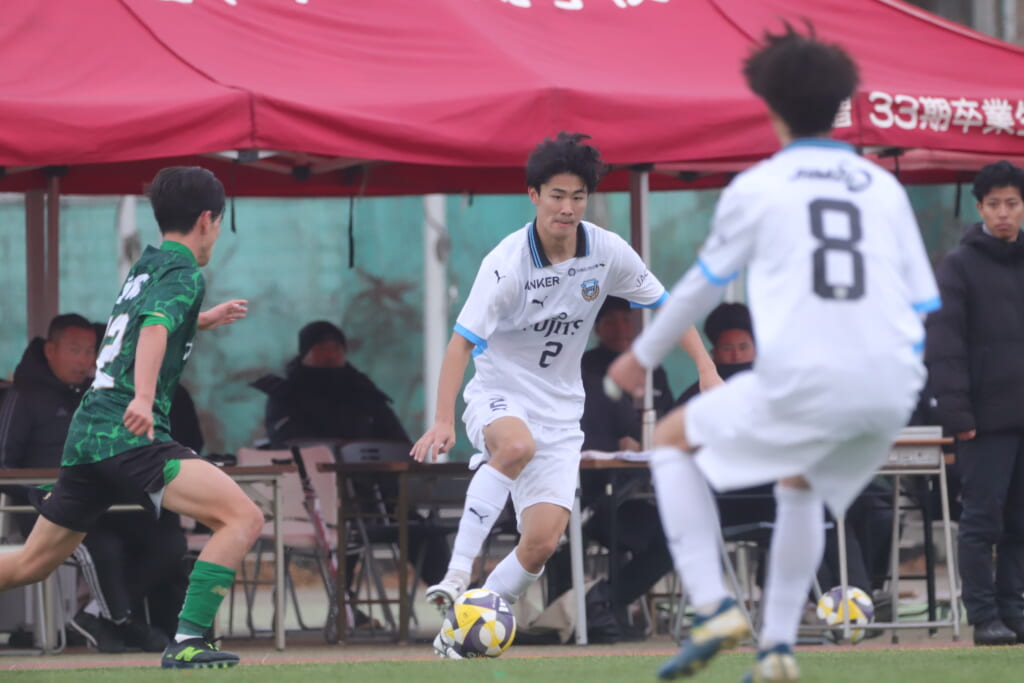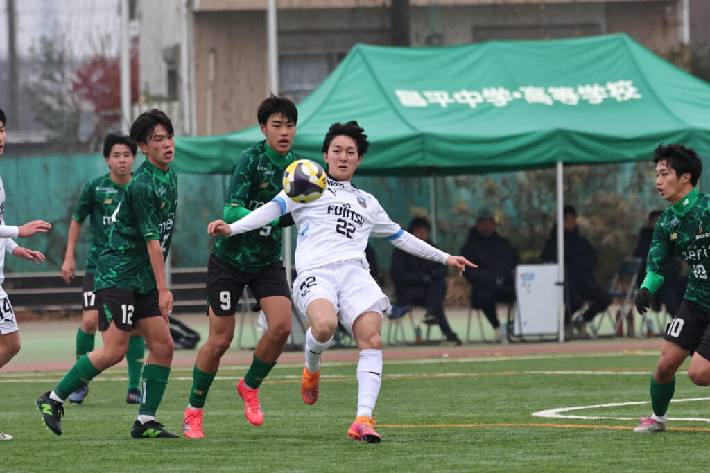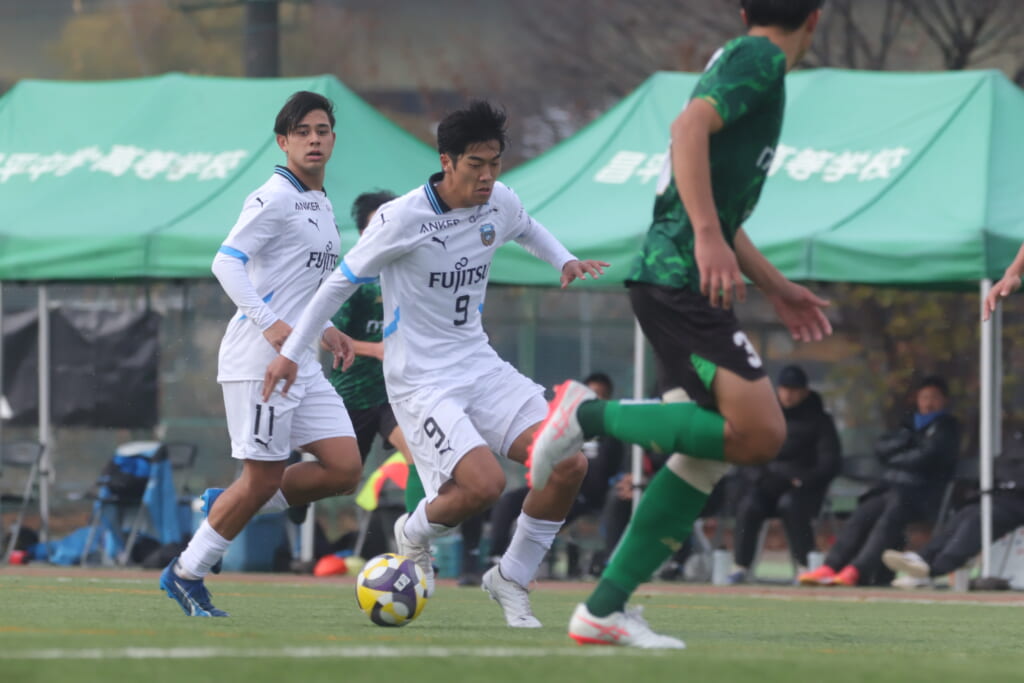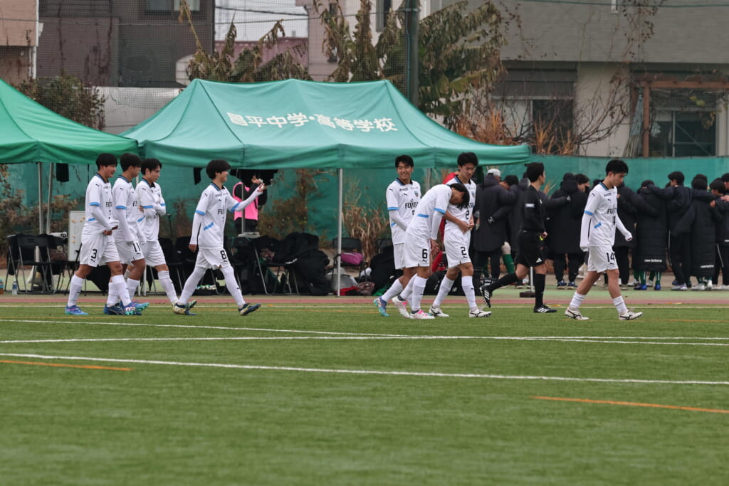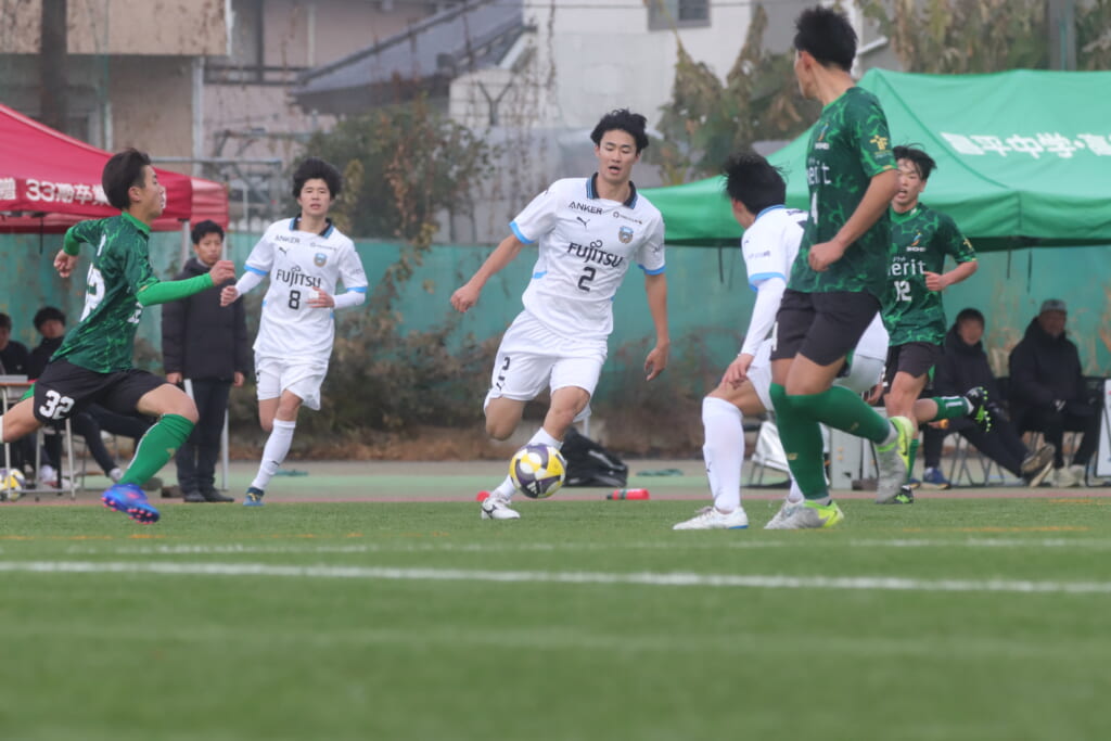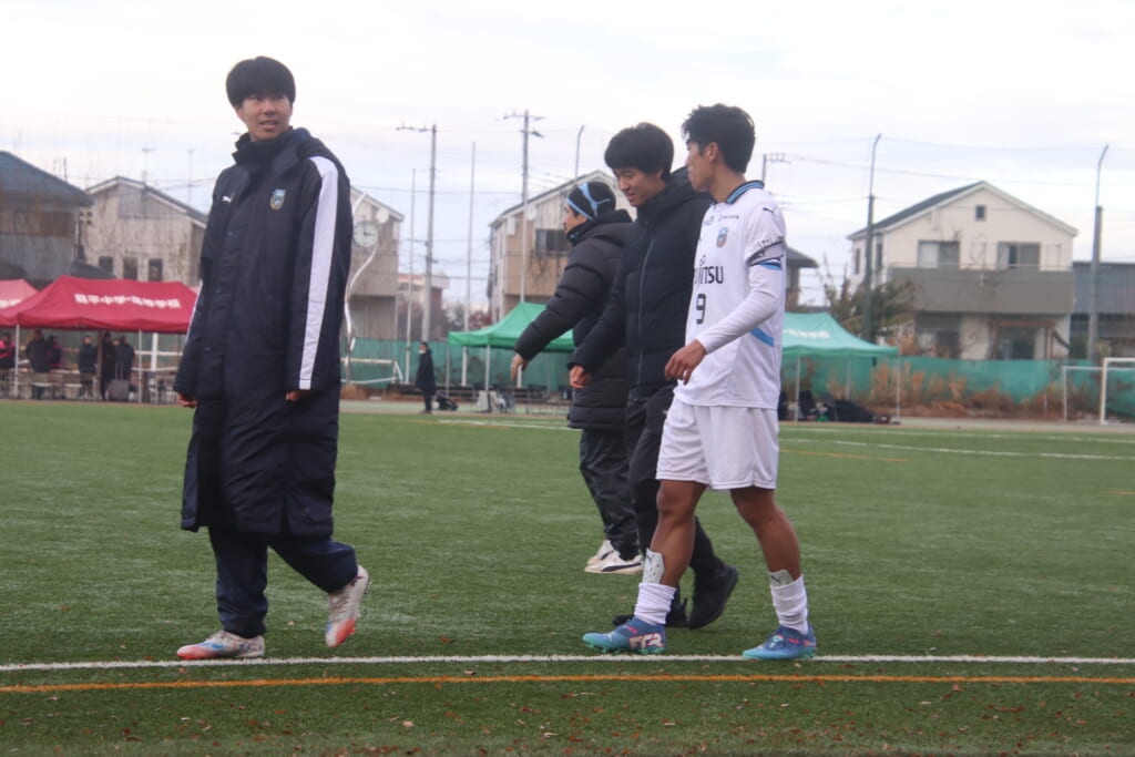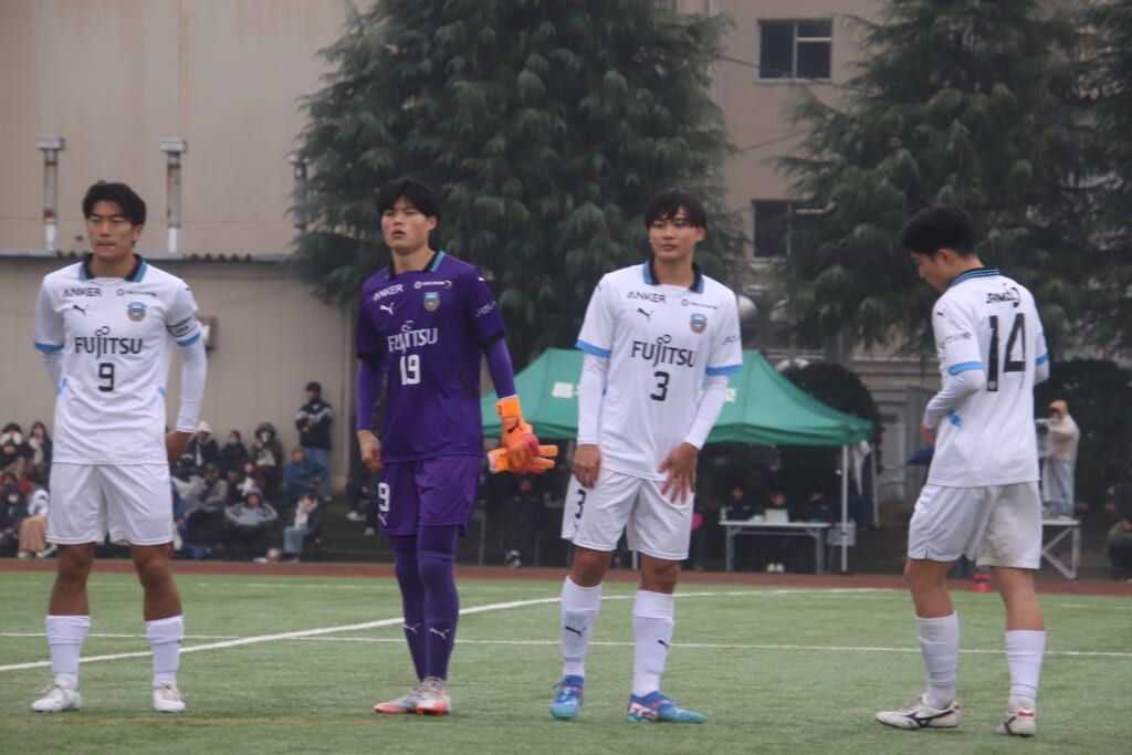 同点のゴールを狙い、前に出てくる昌平高校に対し、関が対応。前に行かせず、再び自分たちのボールにしていくフロンターレ。