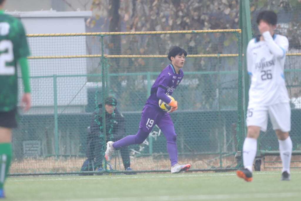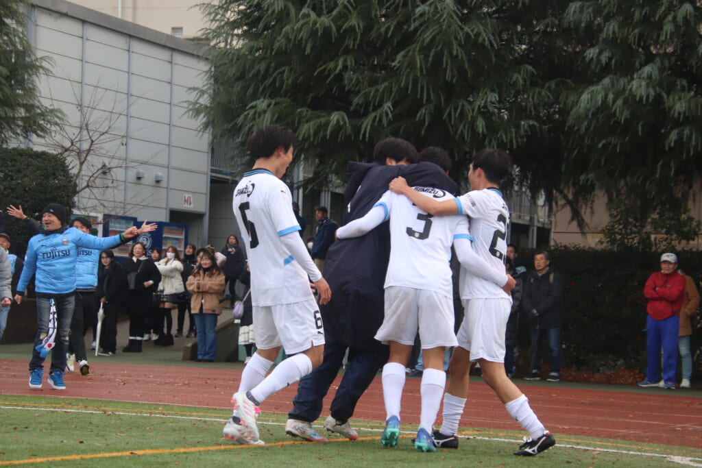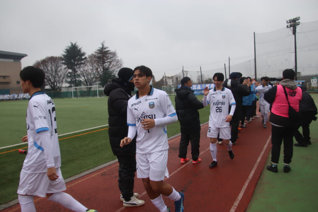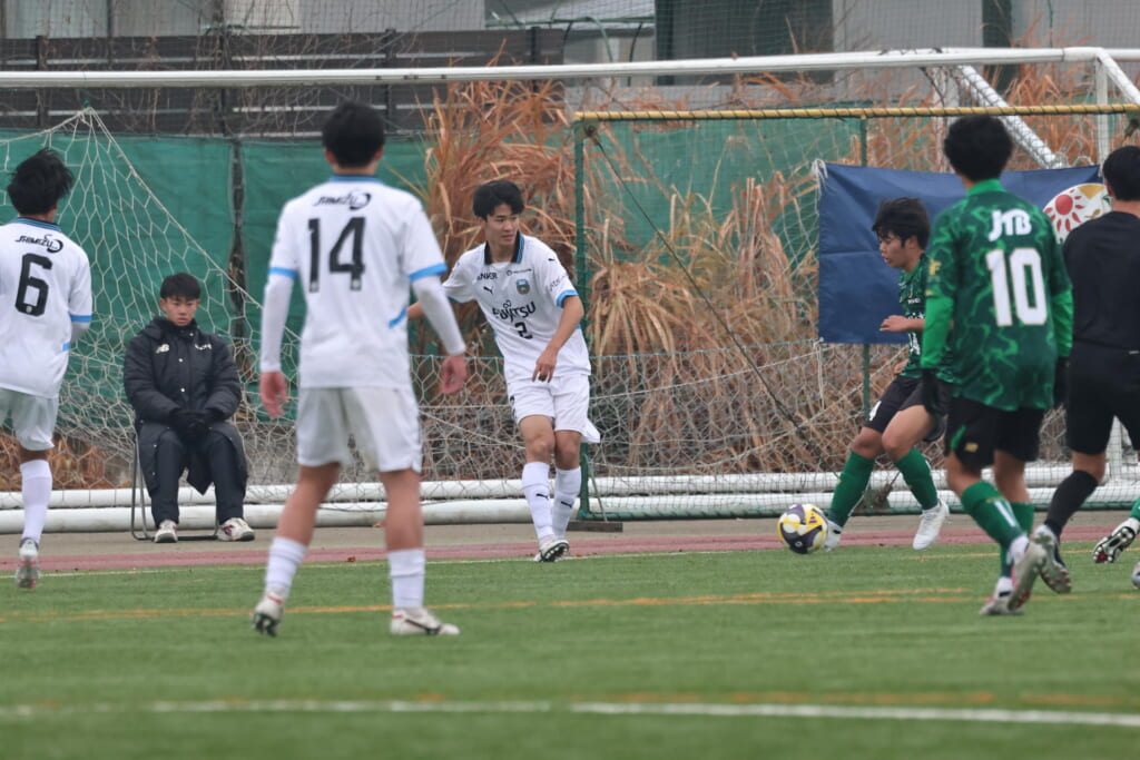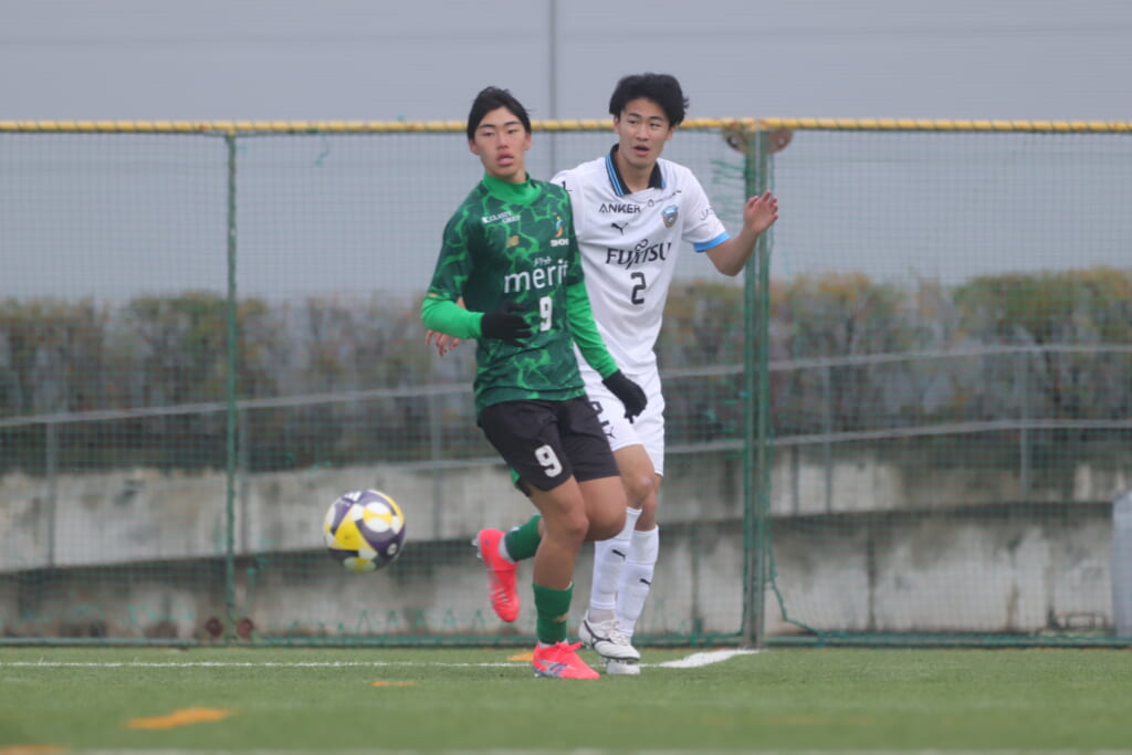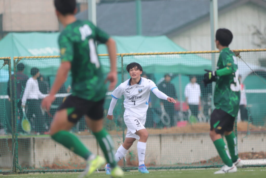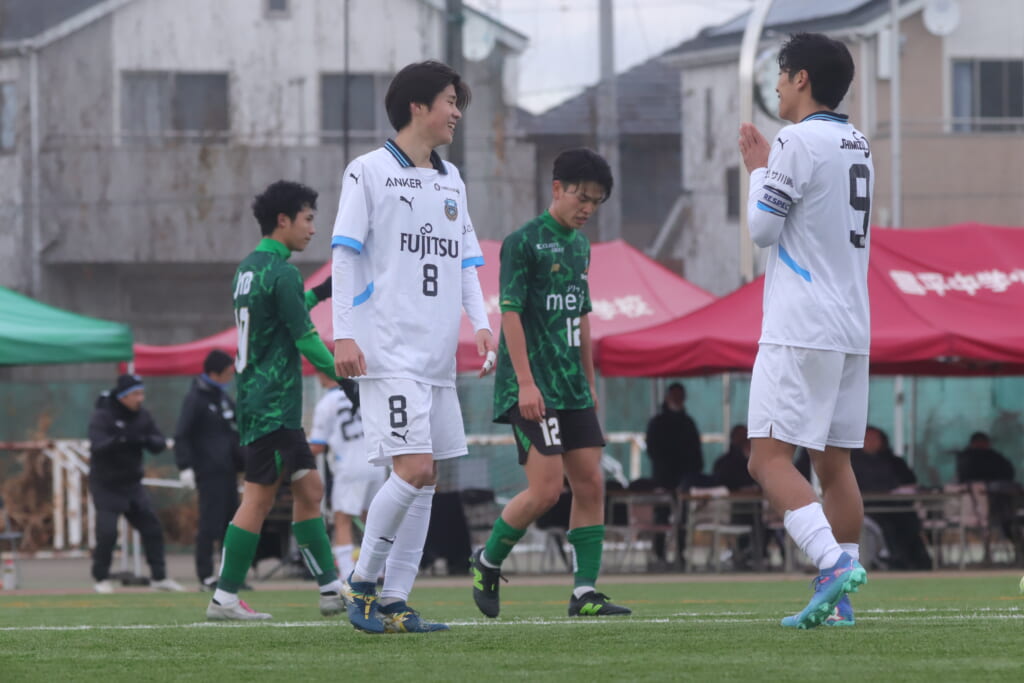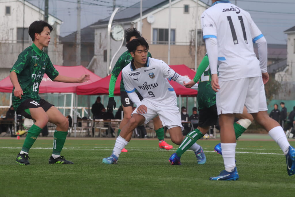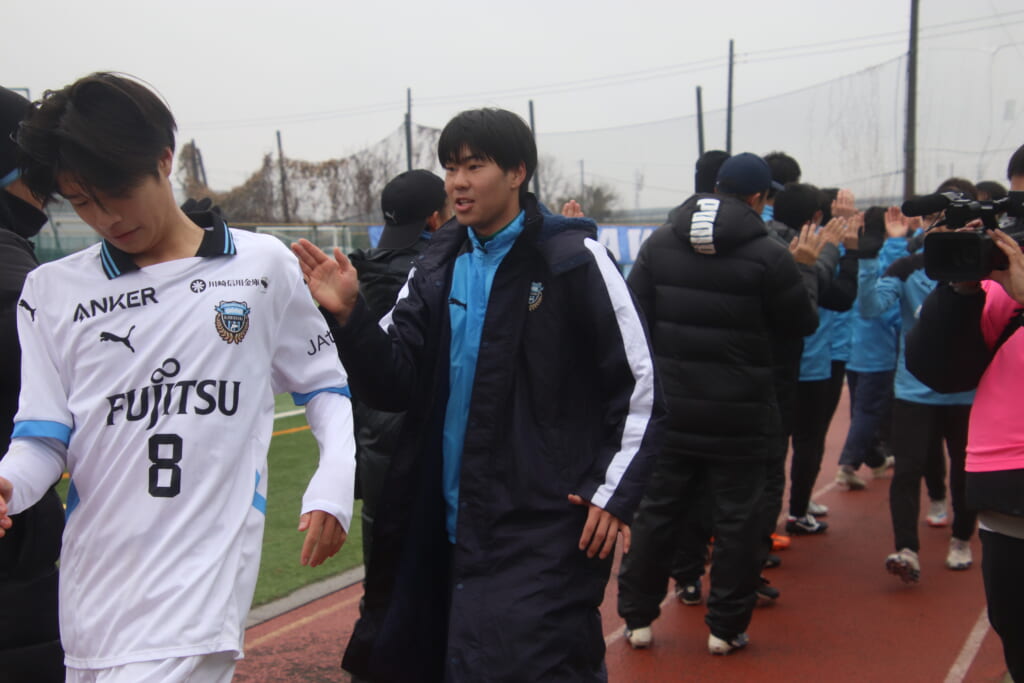 同点のゴールを狙い、前に出てくる昌平高校に対し、関が対応。前に行かせず、再び自分たちのボールにしていくフロンターレ。