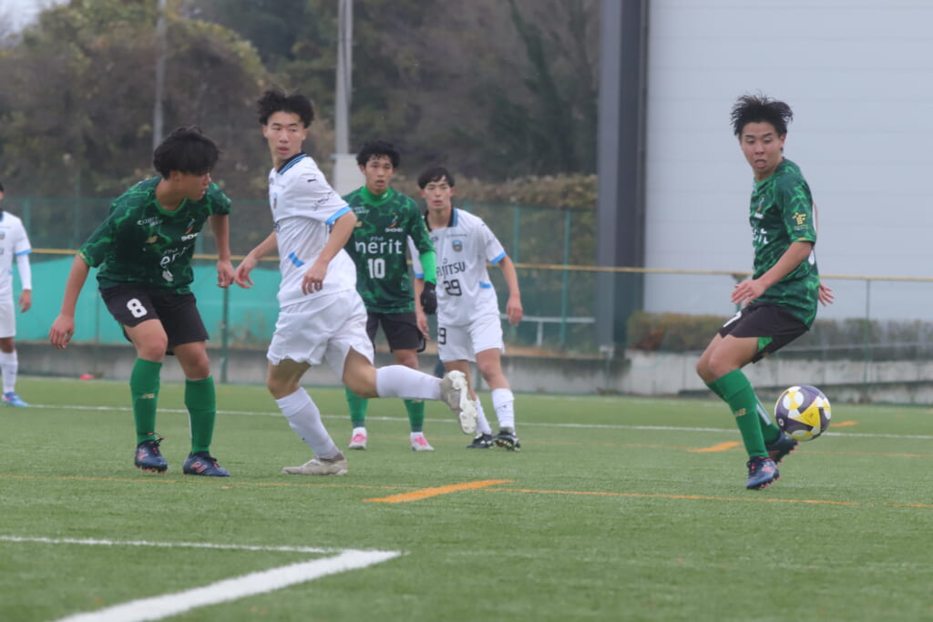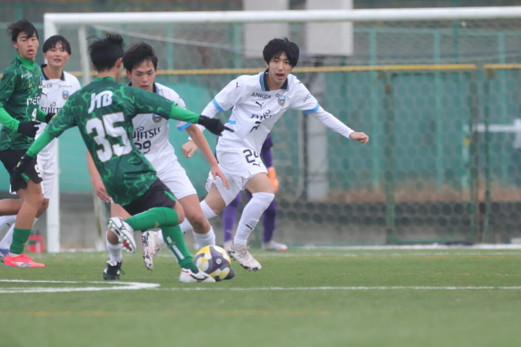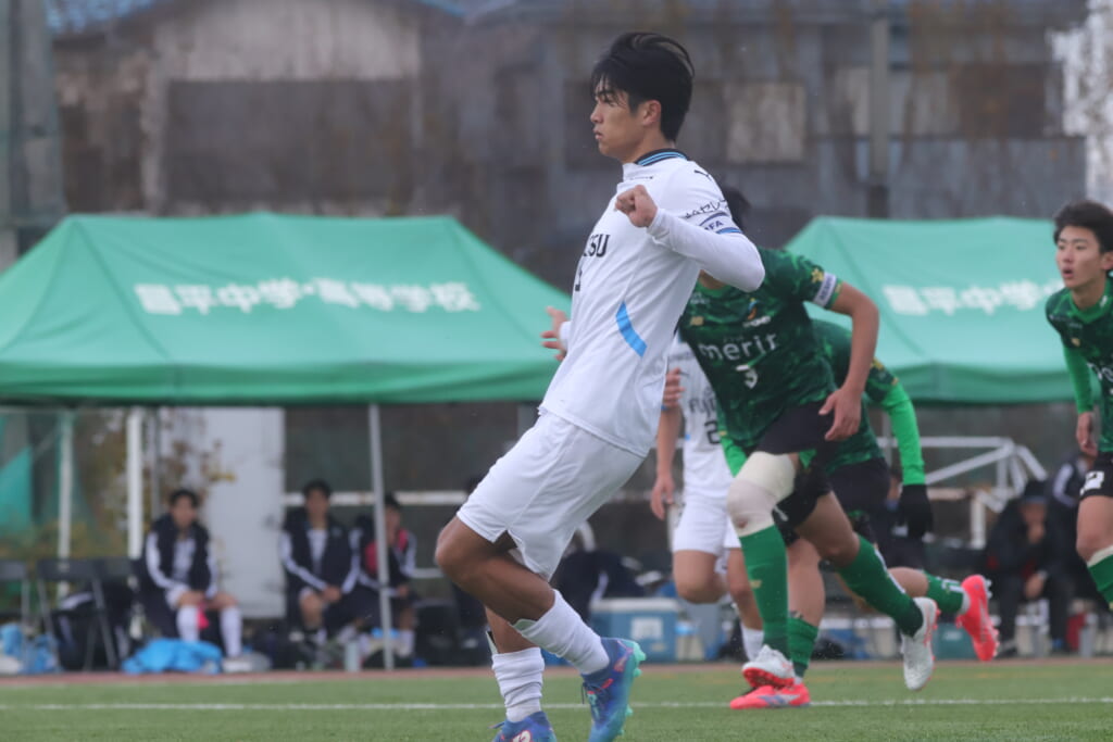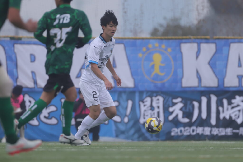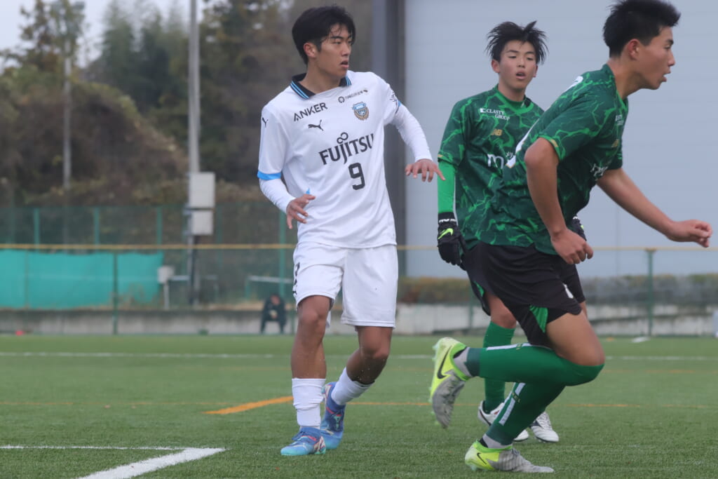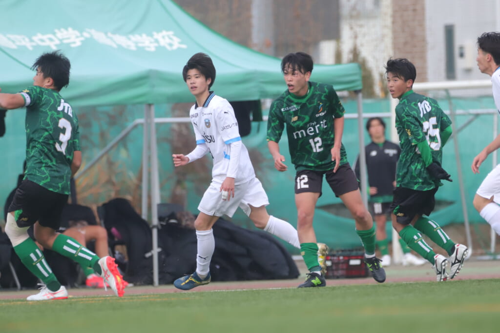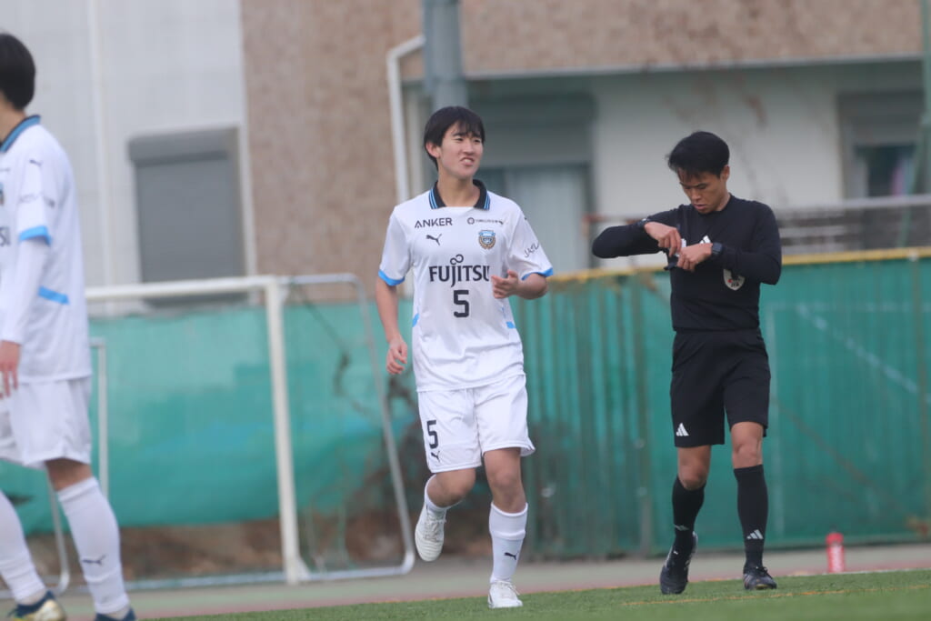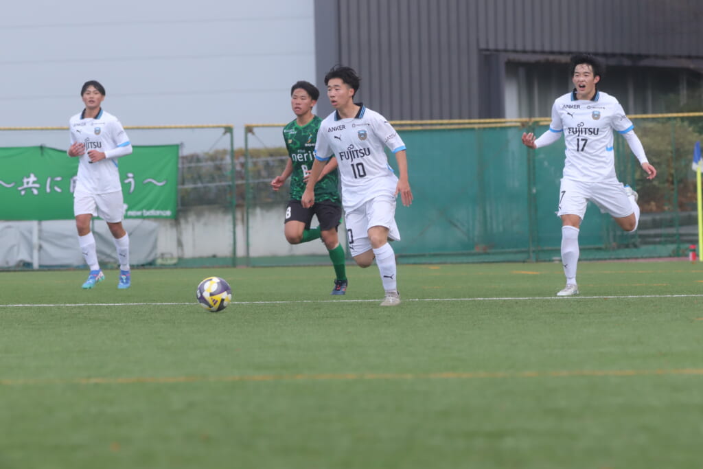 同点のゴールを狙い、前に出てくる昌平高校に対し、関が対応。前に行かせず、再び自分たちのボールにしていくフロンターレ。