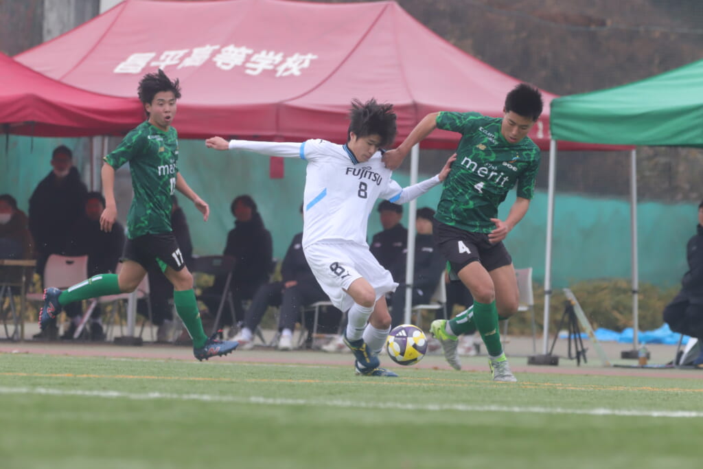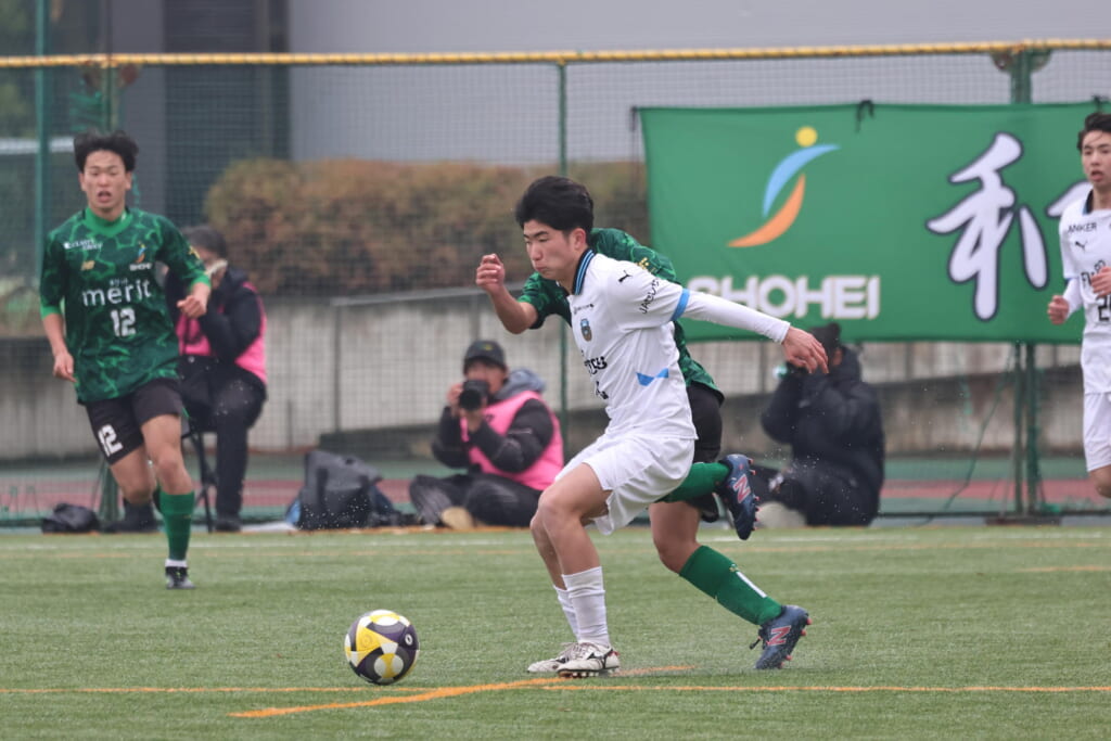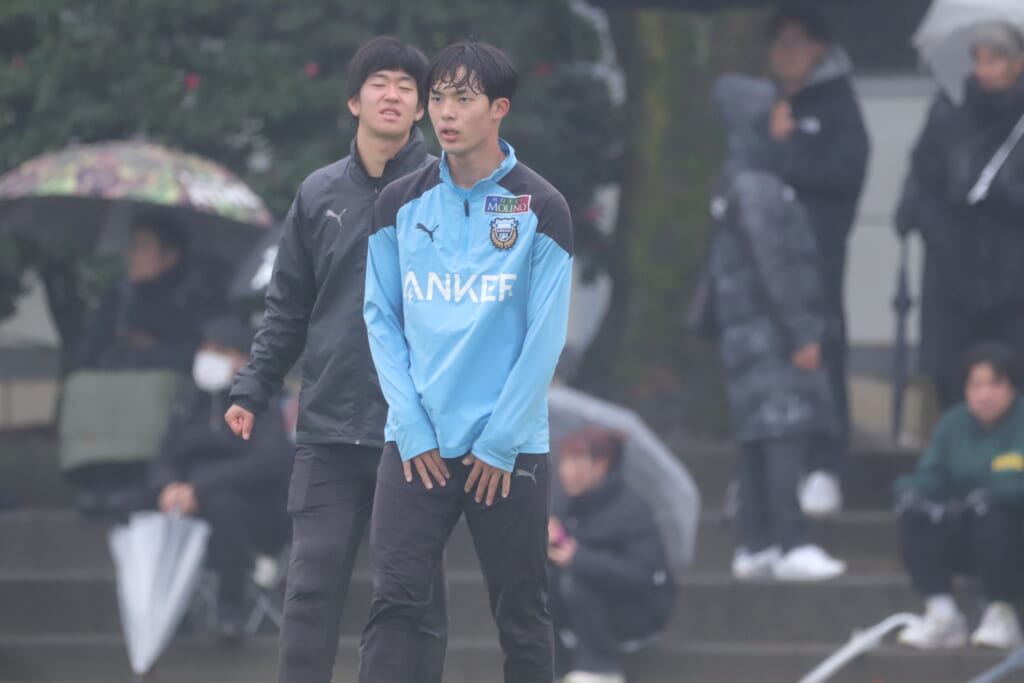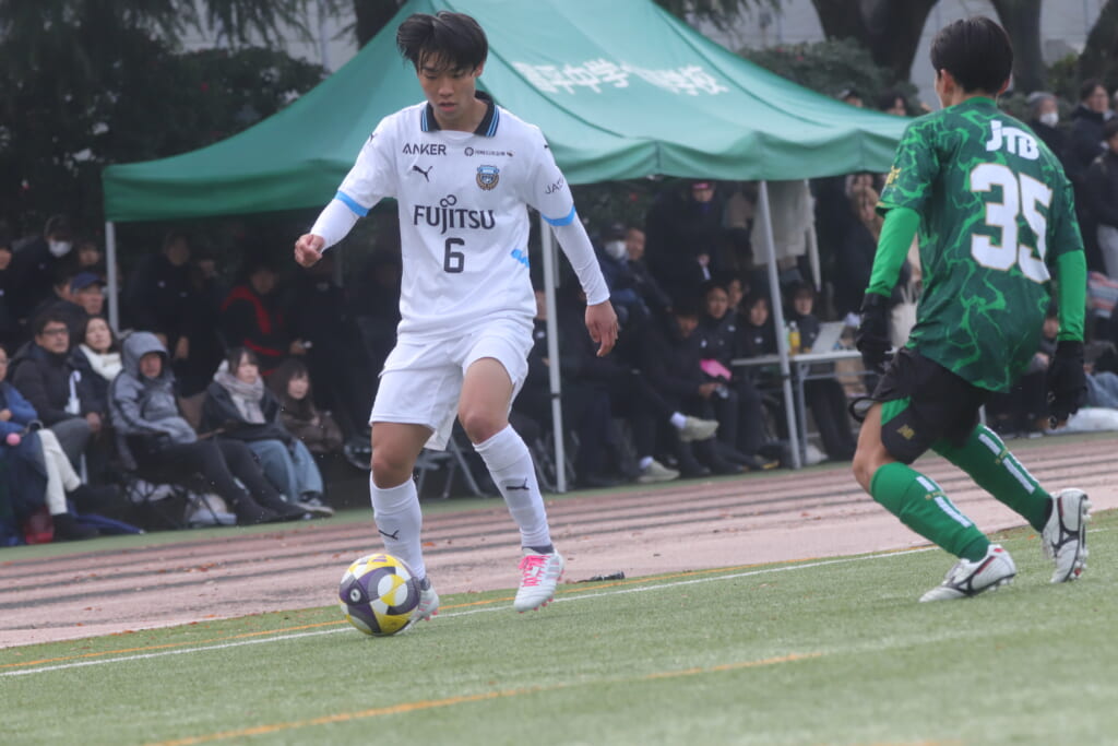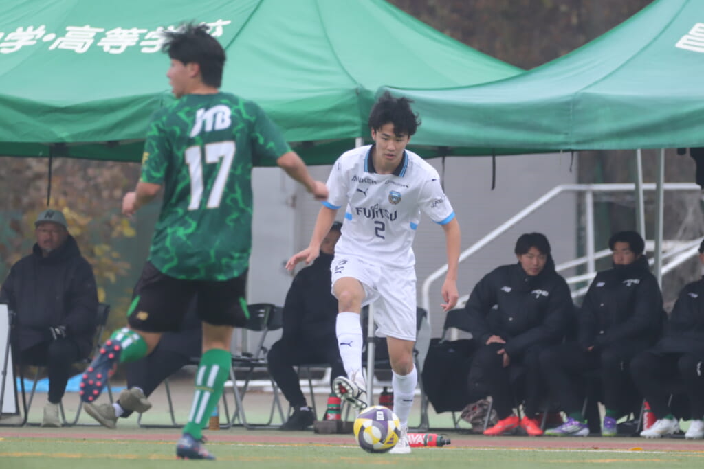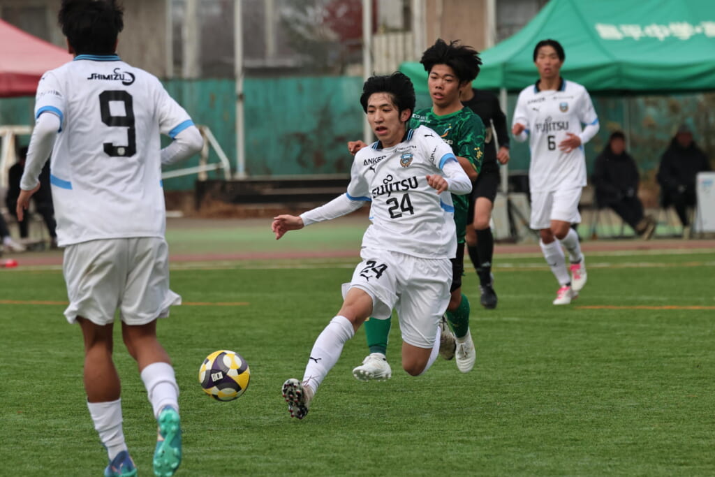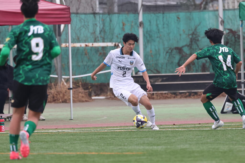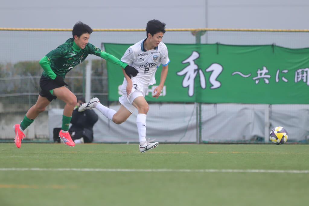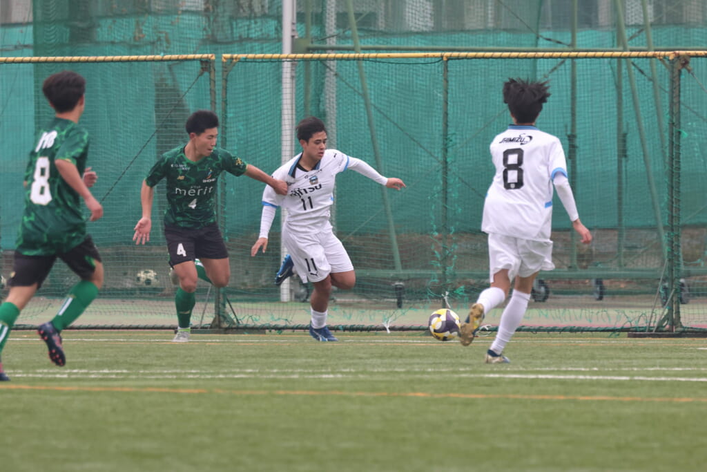同点のゴールを狙い、前に出てくる昌平高校に対し、関が対応。前に行かせず、再び自分たちのボールにしていくフロンターレ。