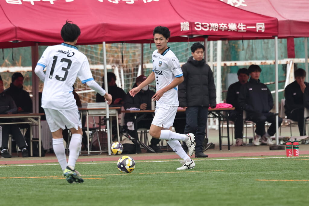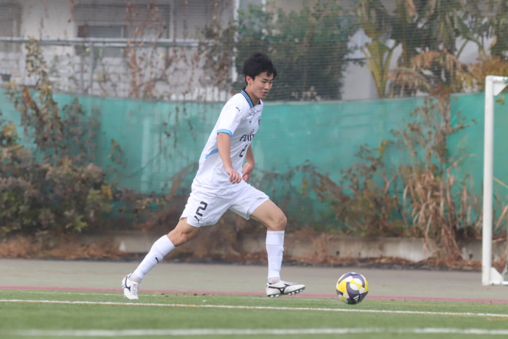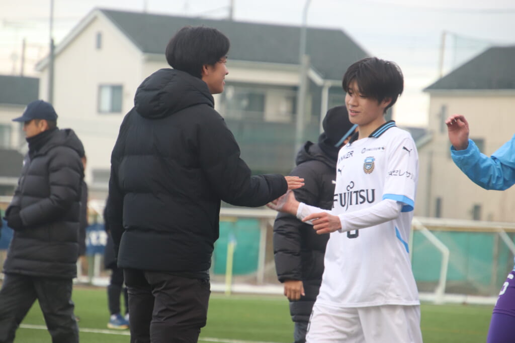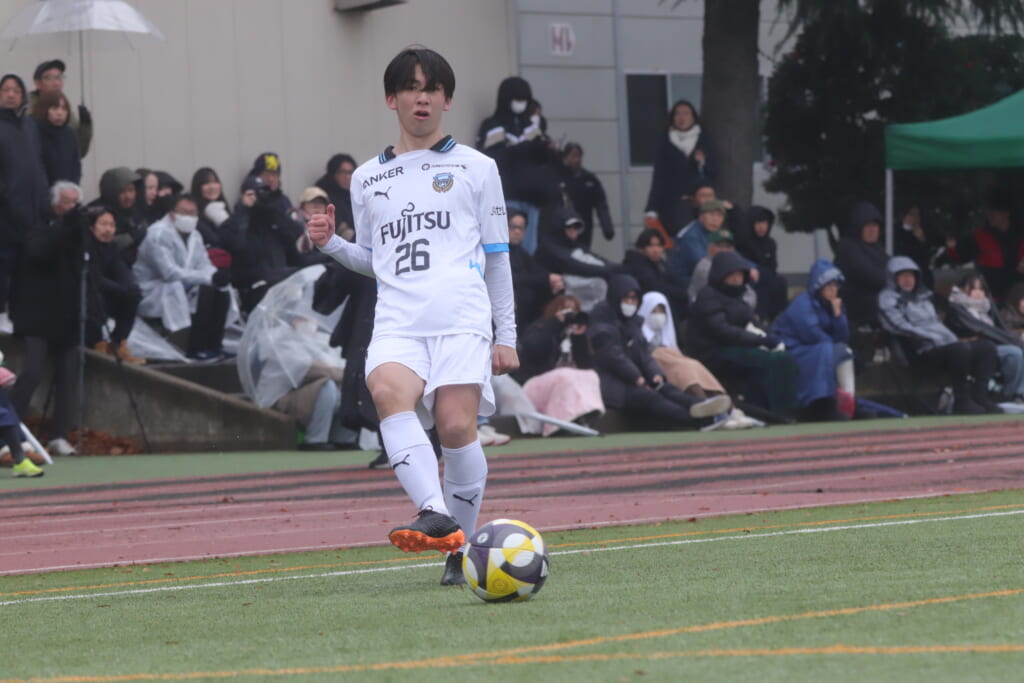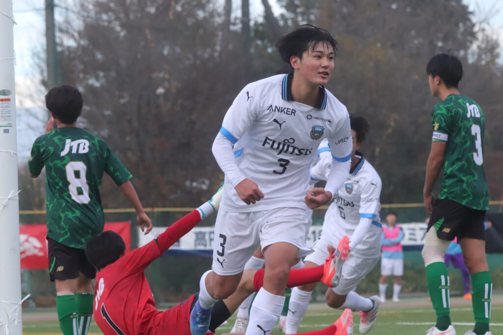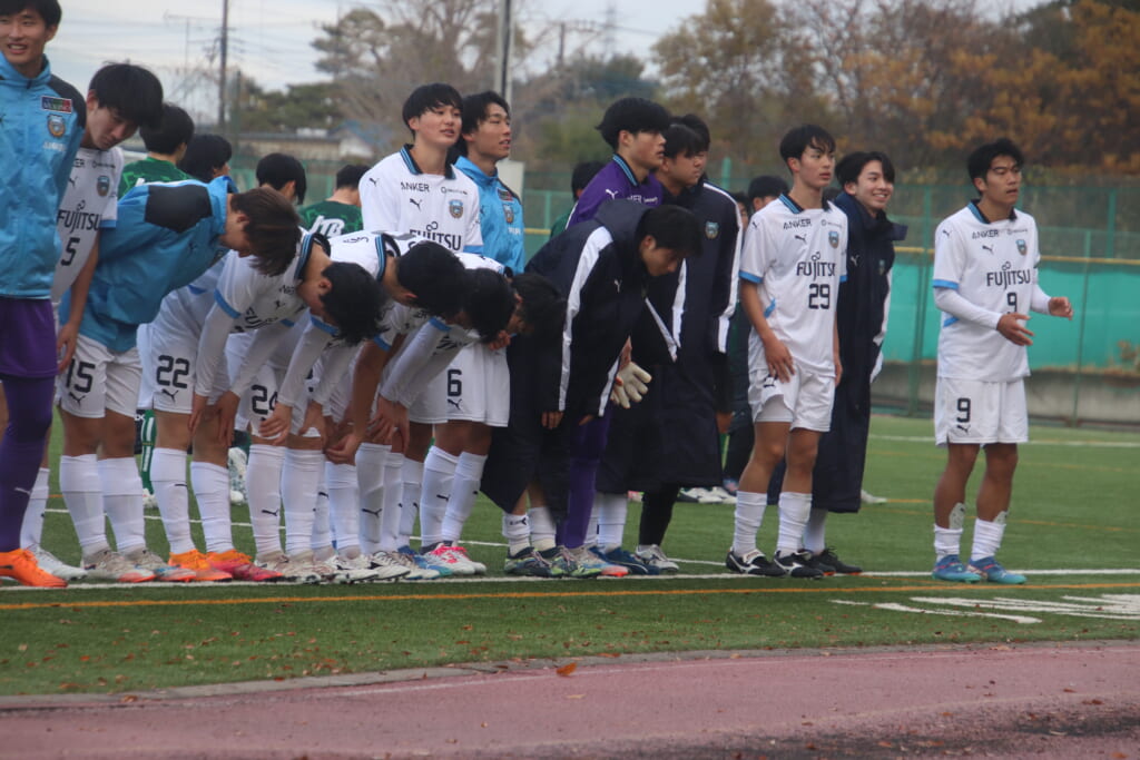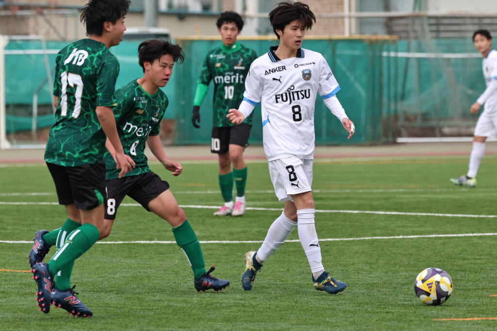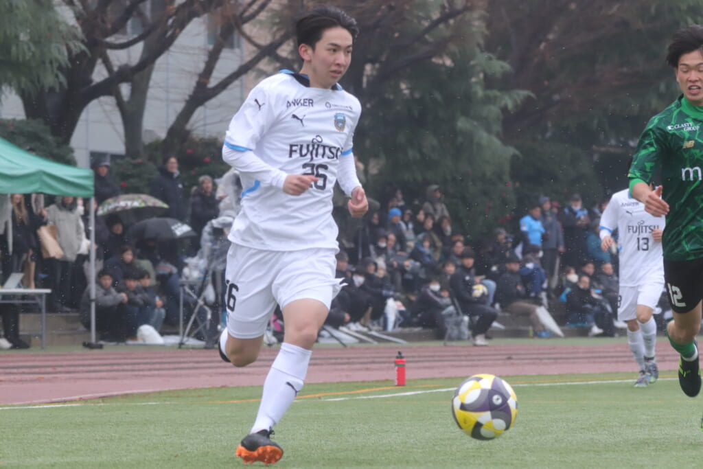 同点のゴールを狙い、前に出てくる昌平高校に対し、関が対応。前に行かせず、再び自分たちのボールにしていくフロンターレ。