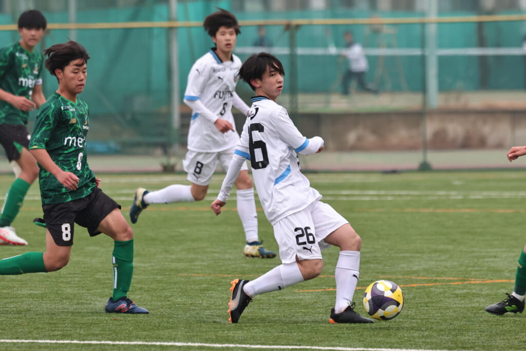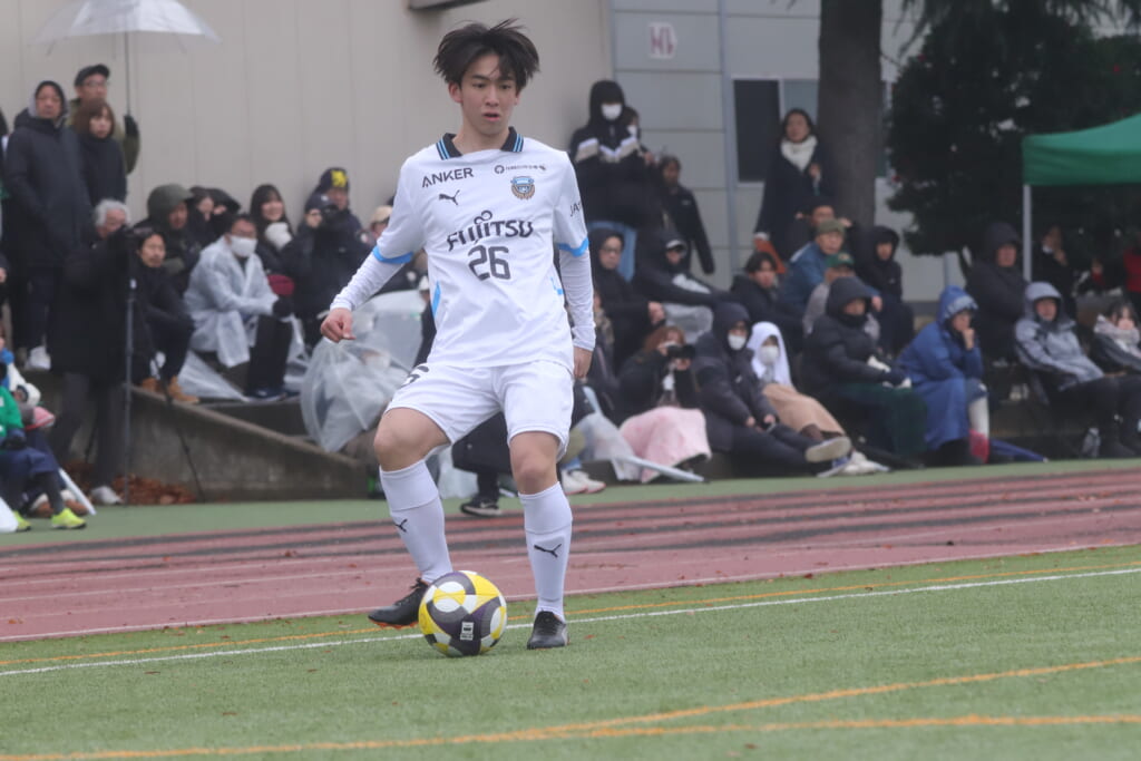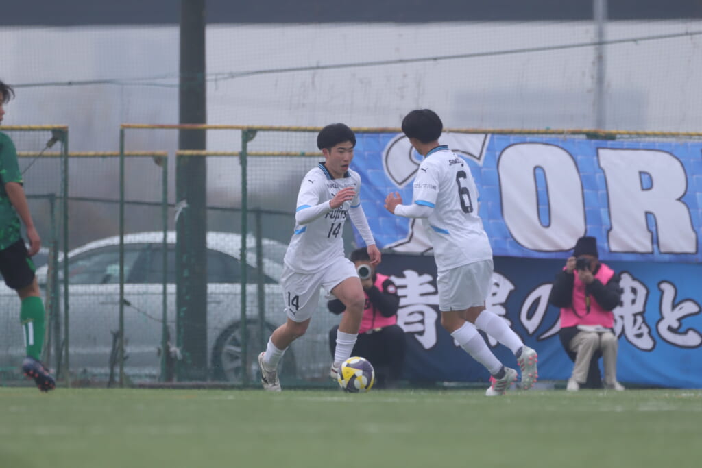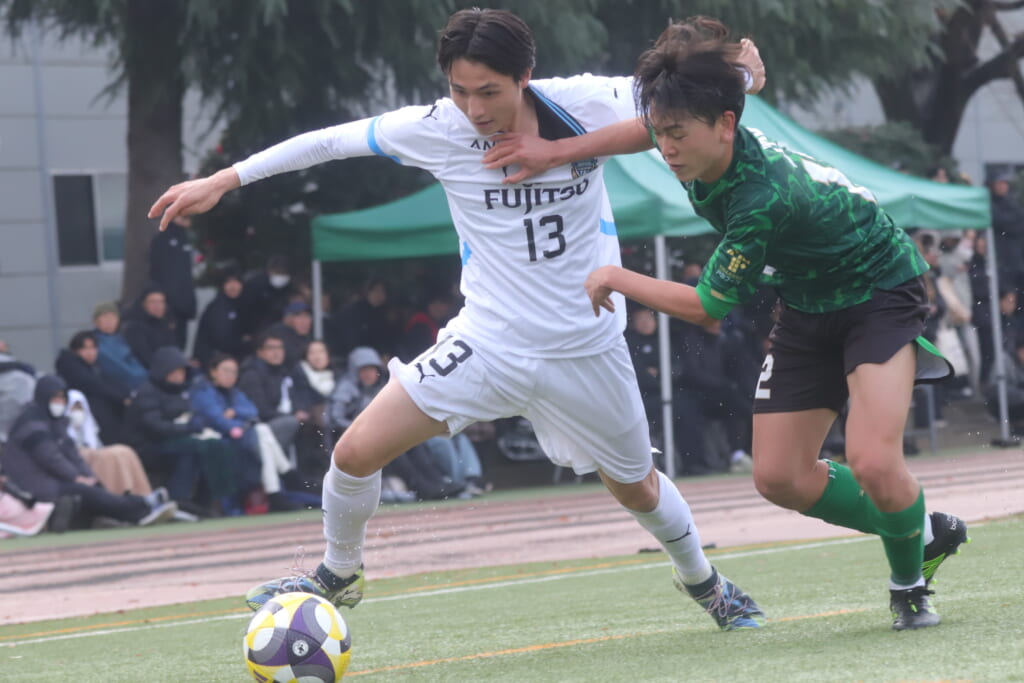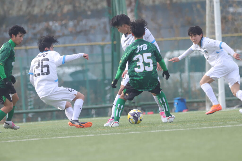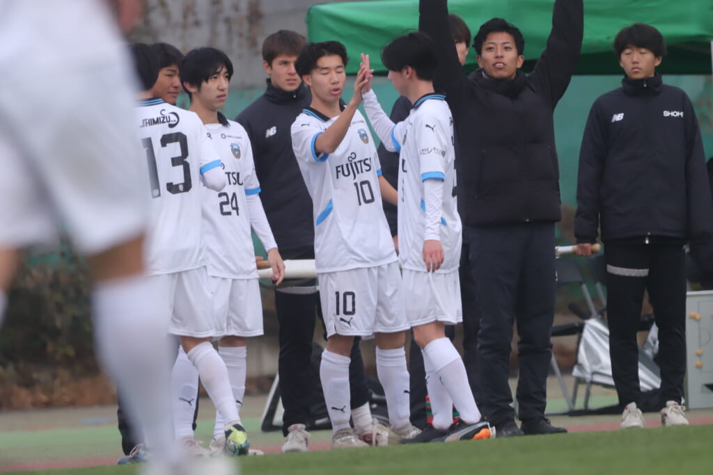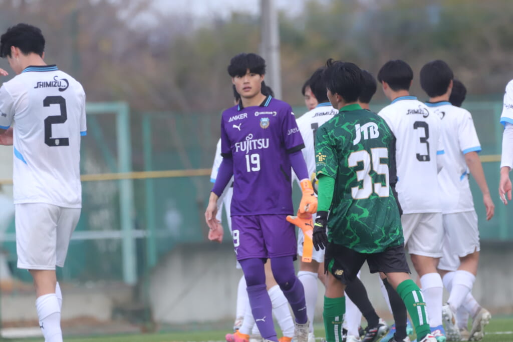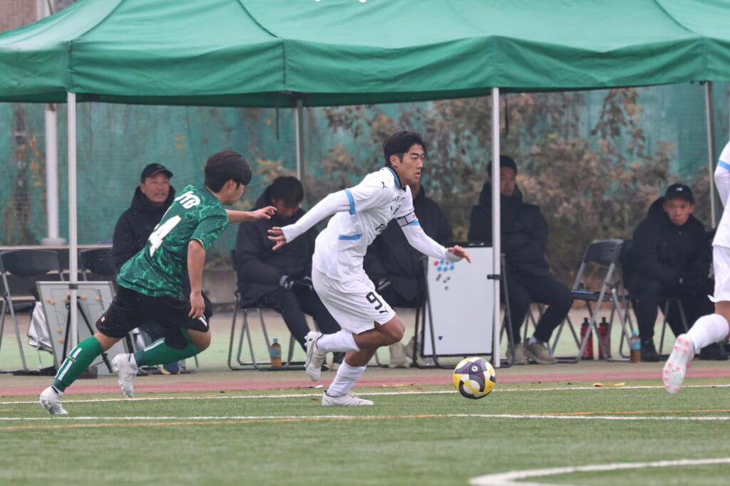 同点のゴールを狙い、前に出てくる昌平高校に対し、関が対応。前に行かせず、再び自分たちのボールにしていくフロンターレ。
