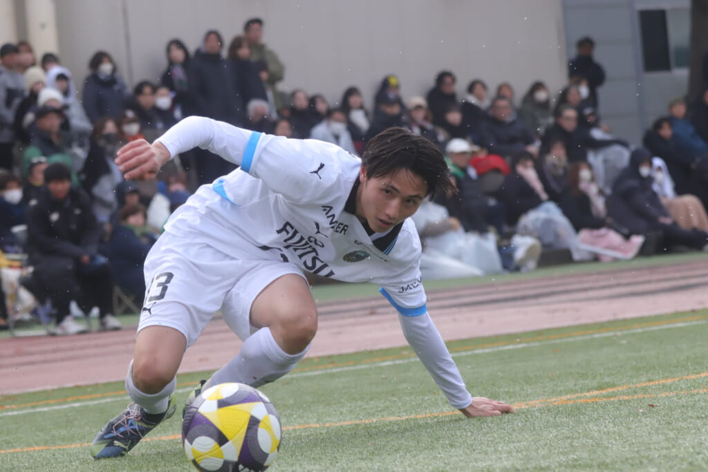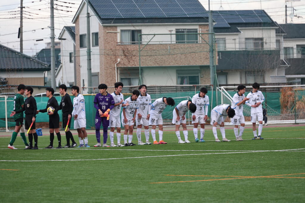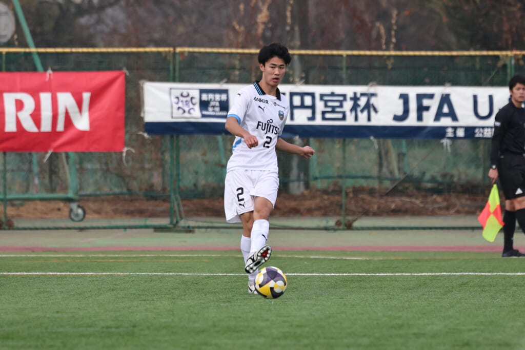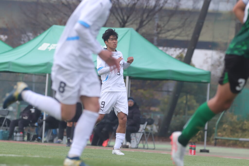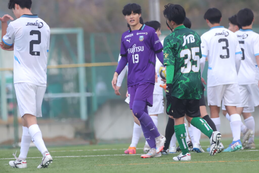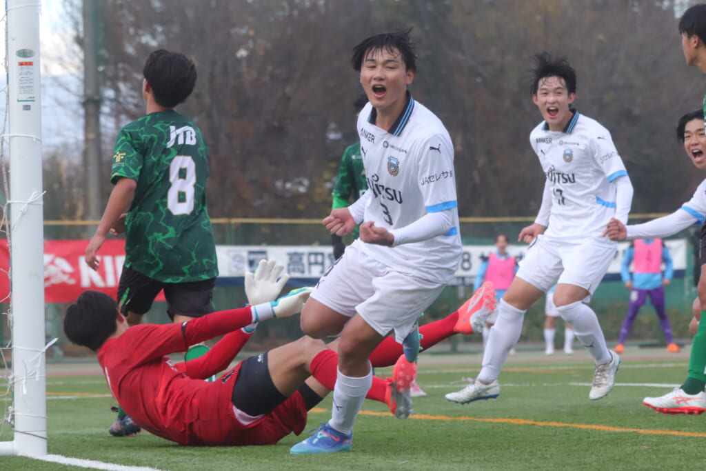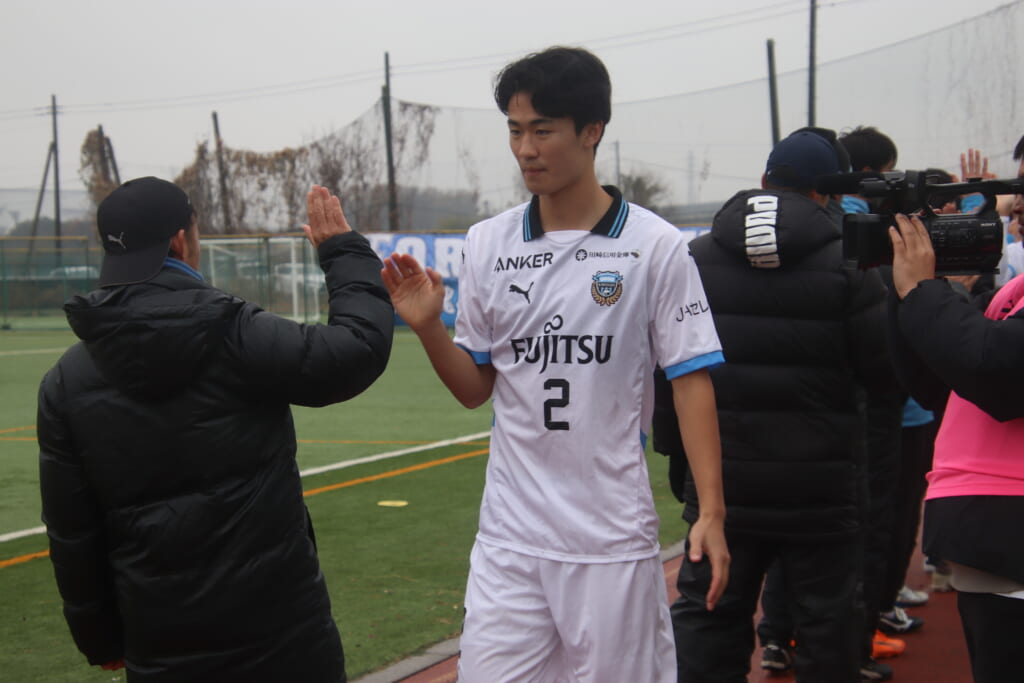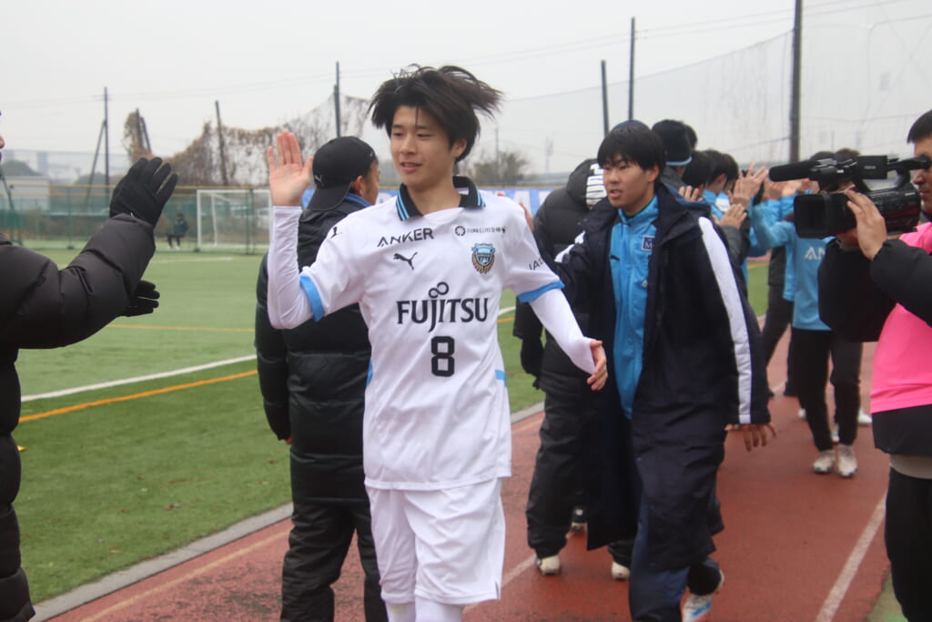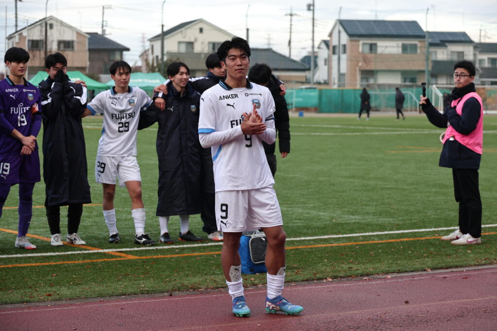 同点のゴールを狙い、前に出てくる昌平高校に対し、関が対応。前に行かせず、再び自分たちのボールにしていくフロンターレ。