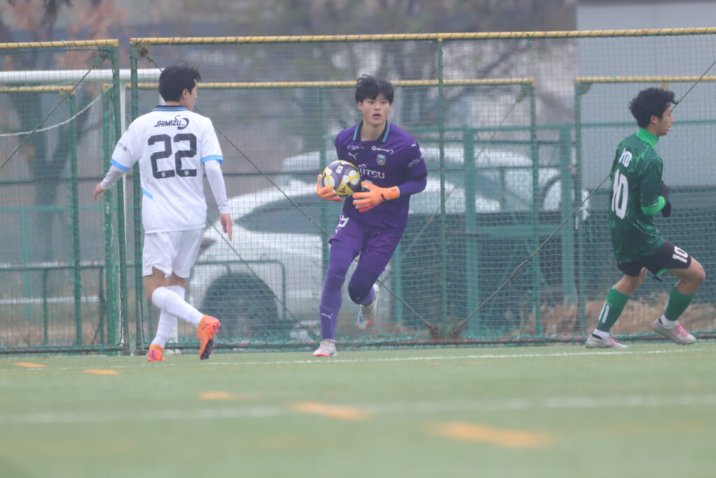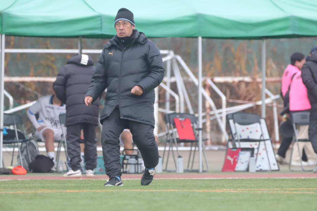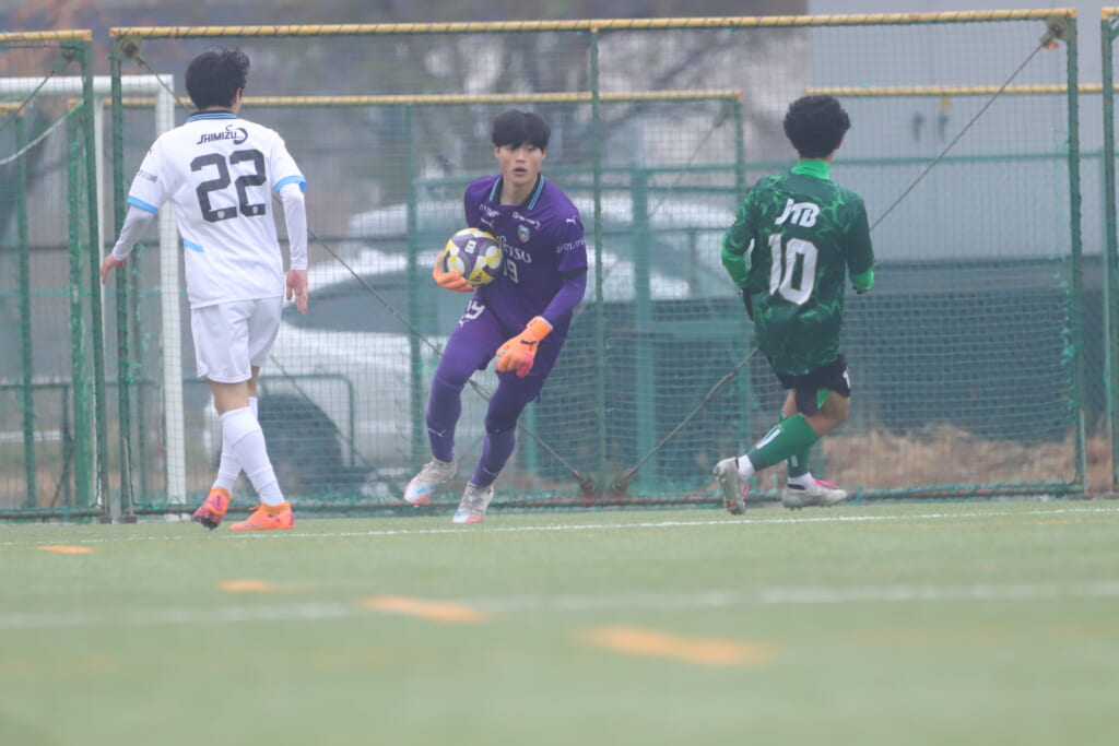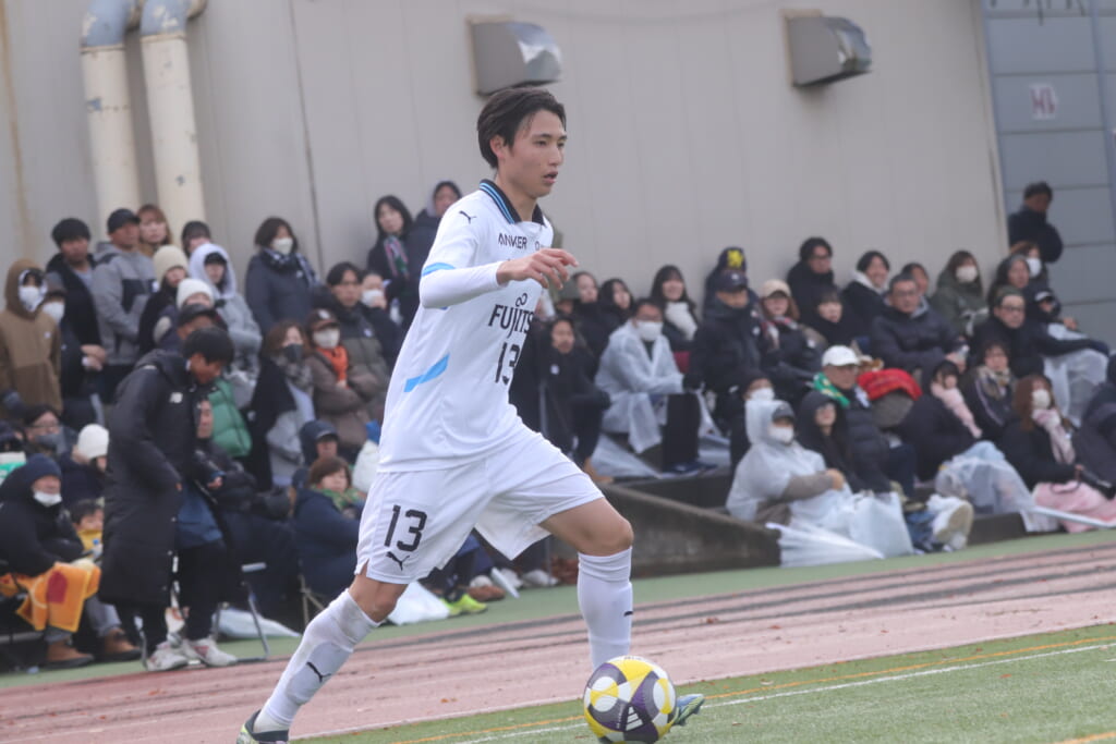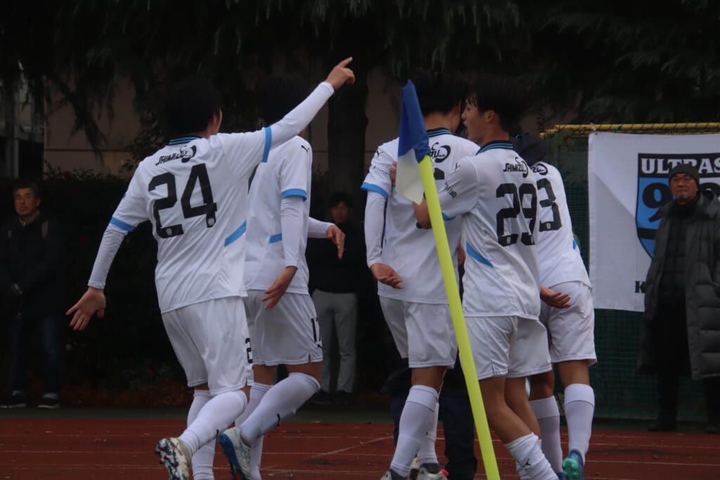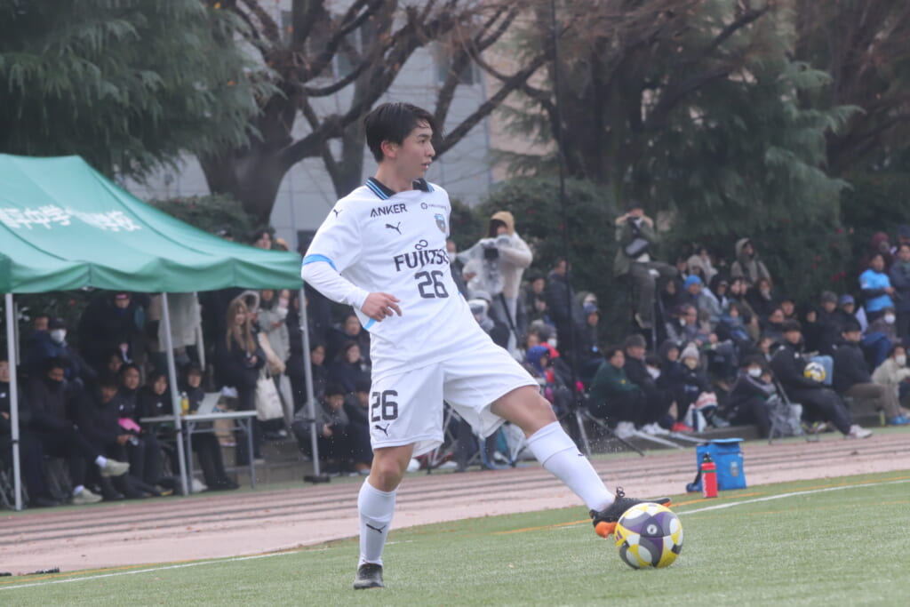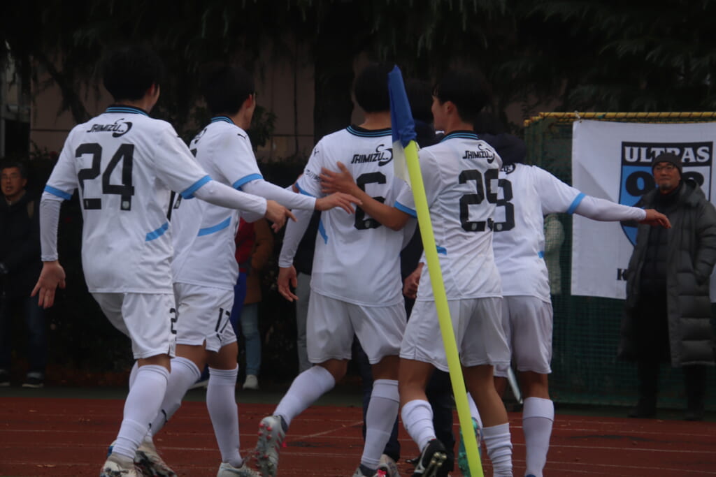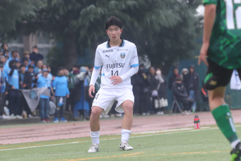 同点のゴールを狙い、前に出てくる昌平高校に対し、関が対応。前に行かせず、再び自分たちのボールにしていくフロンターレ。