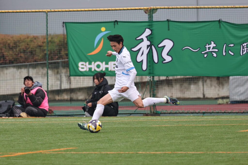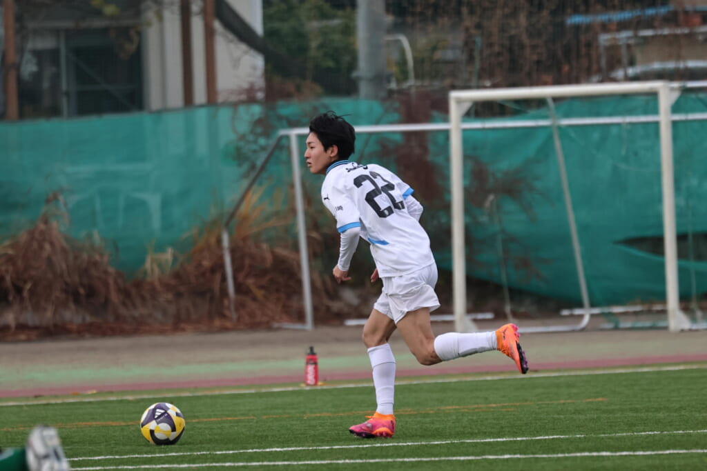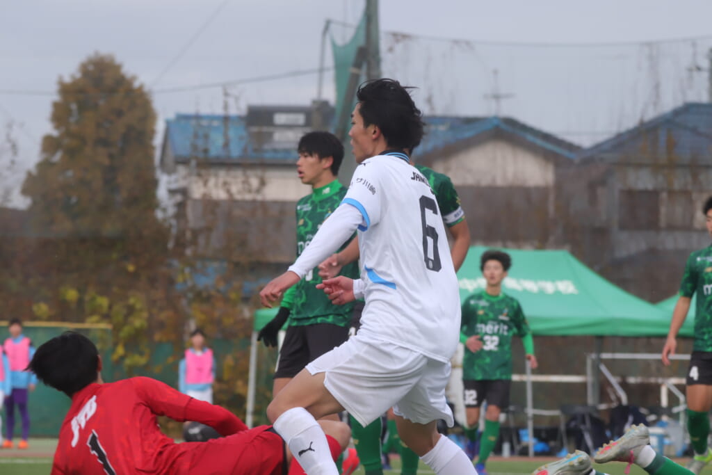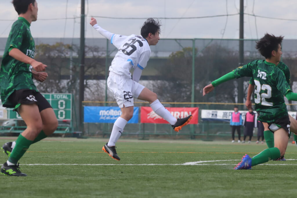 受けた藤井から左サイド、関へ。中央へ持ち込んだ関から受けた小川尋斗は、エリア外正面右でシュート。しかし土渕がセーブ。