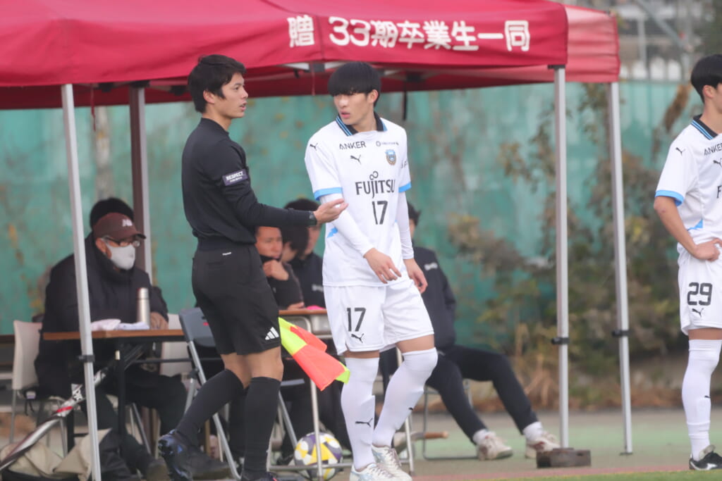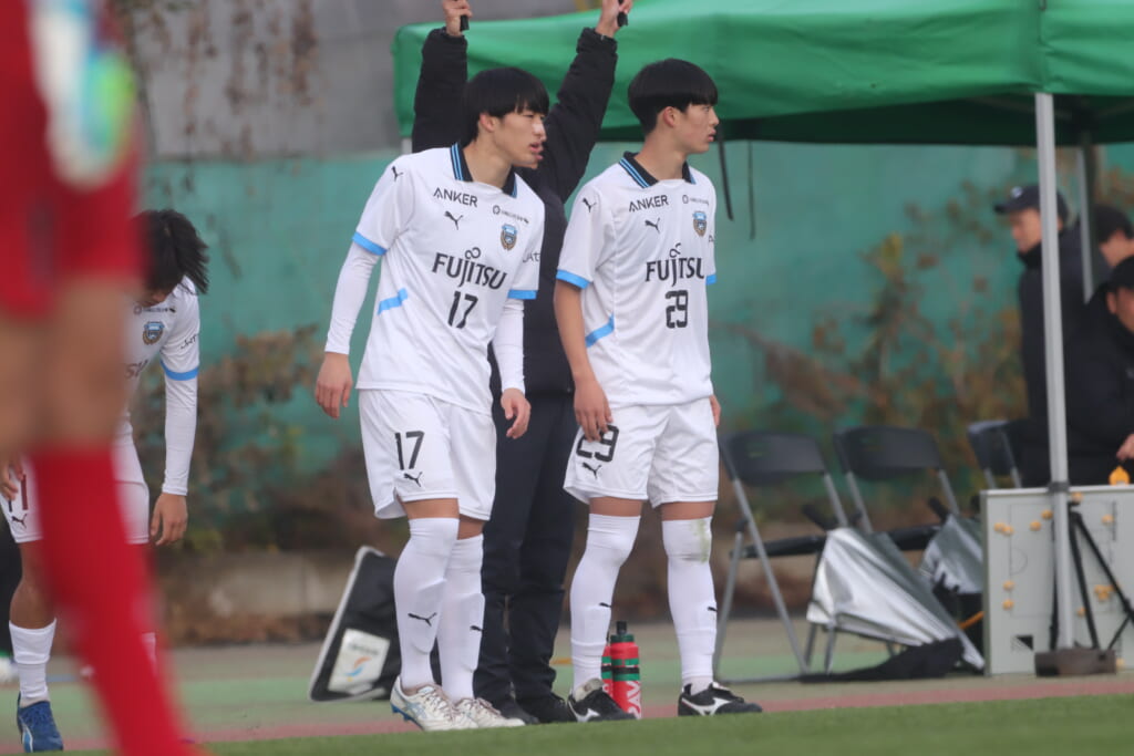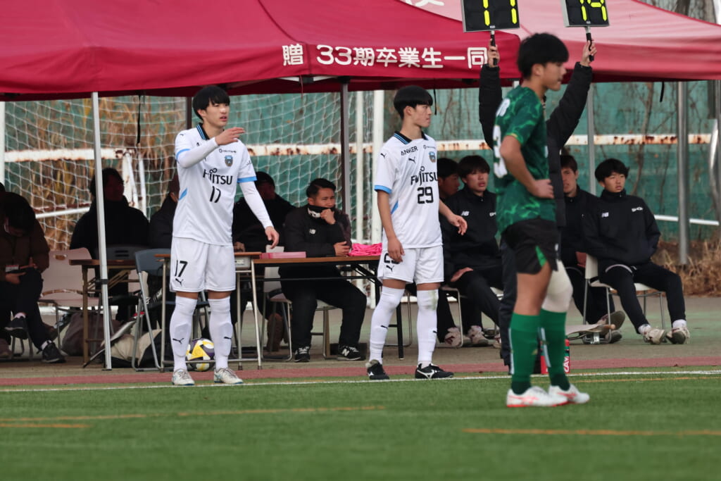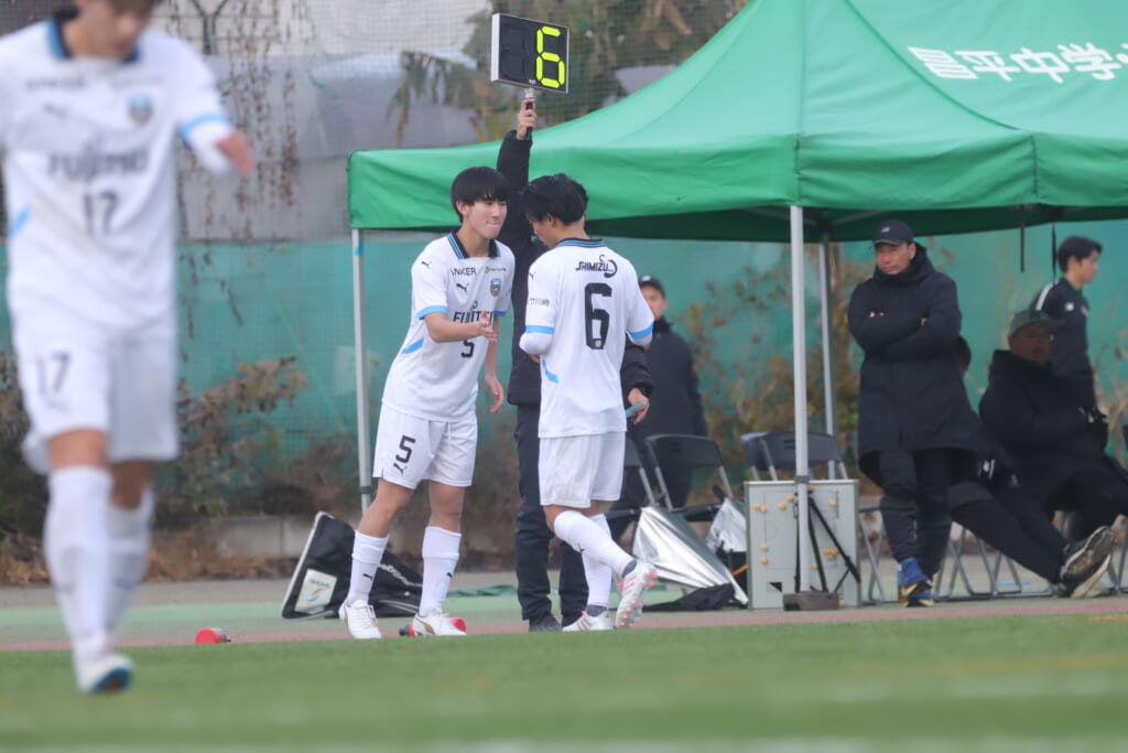 フロンターレは、16分ステンパーに代わり17廣瀬寧生。小川尋斗に代わり29今廣遥碧。恩田が左MF、廣瀬が前線へ。