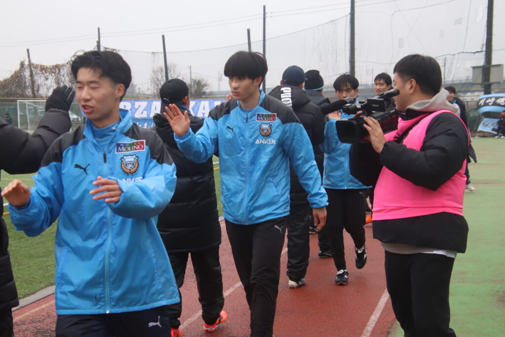 陸上トラックをはさんだ観戦者向けのスペースには、両チームの選手の家族らはもちろんのこと、多くのフロンターレサポーター、昌平高校のメンバー外の選手らの姿も。