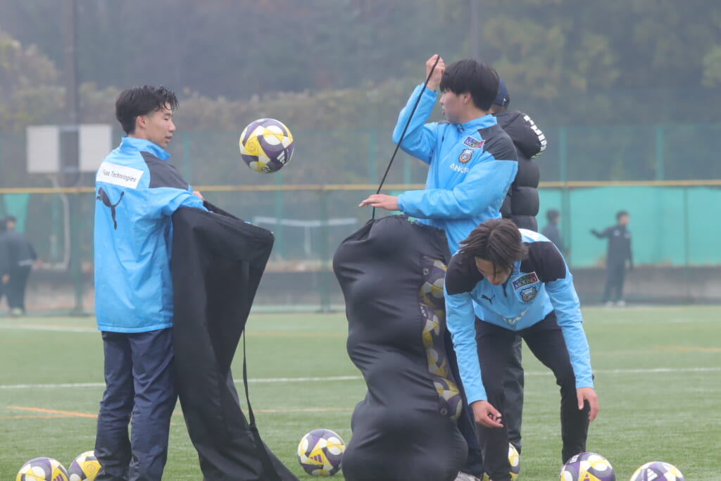 昌平高校のカバーに遭いましたが、フロンターレのスローインにして、再び自分たちでつないでいきます。
