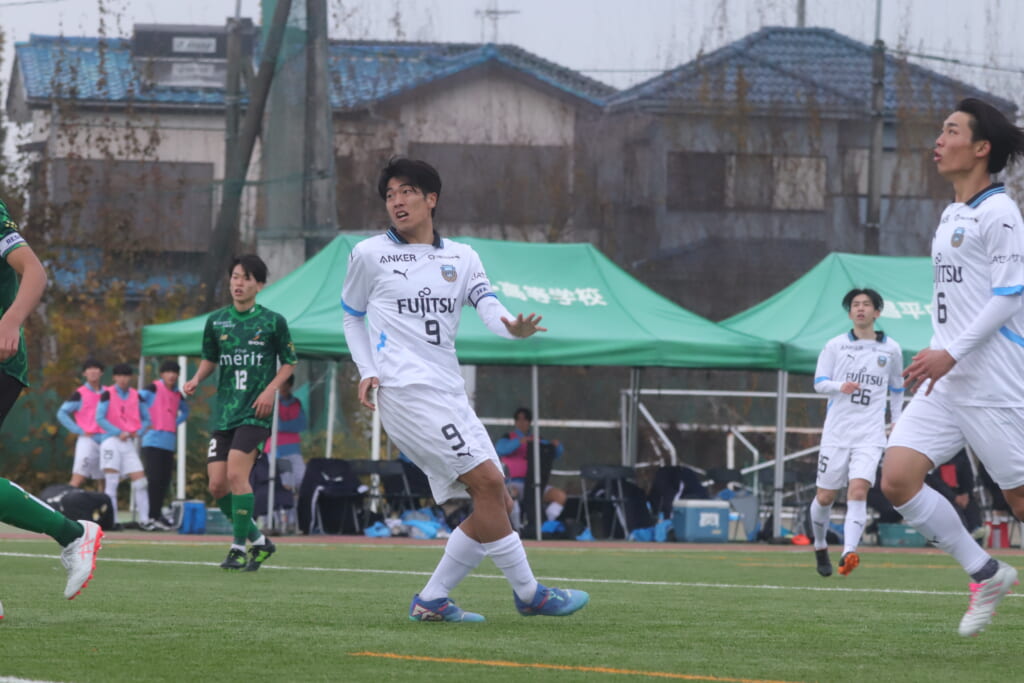 昌平高校のブロックに遭うも、こぼれ球を拾ったフロンターレは、柏村が右クロス。